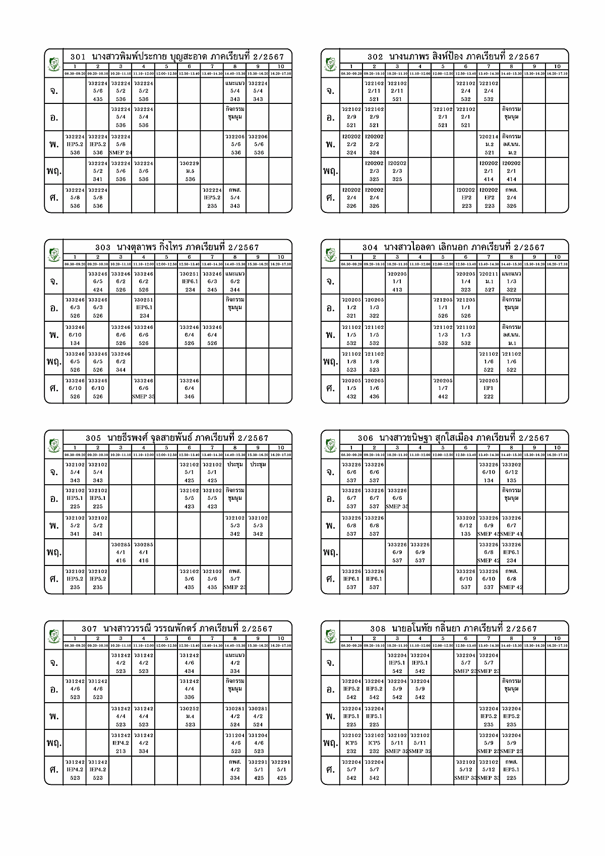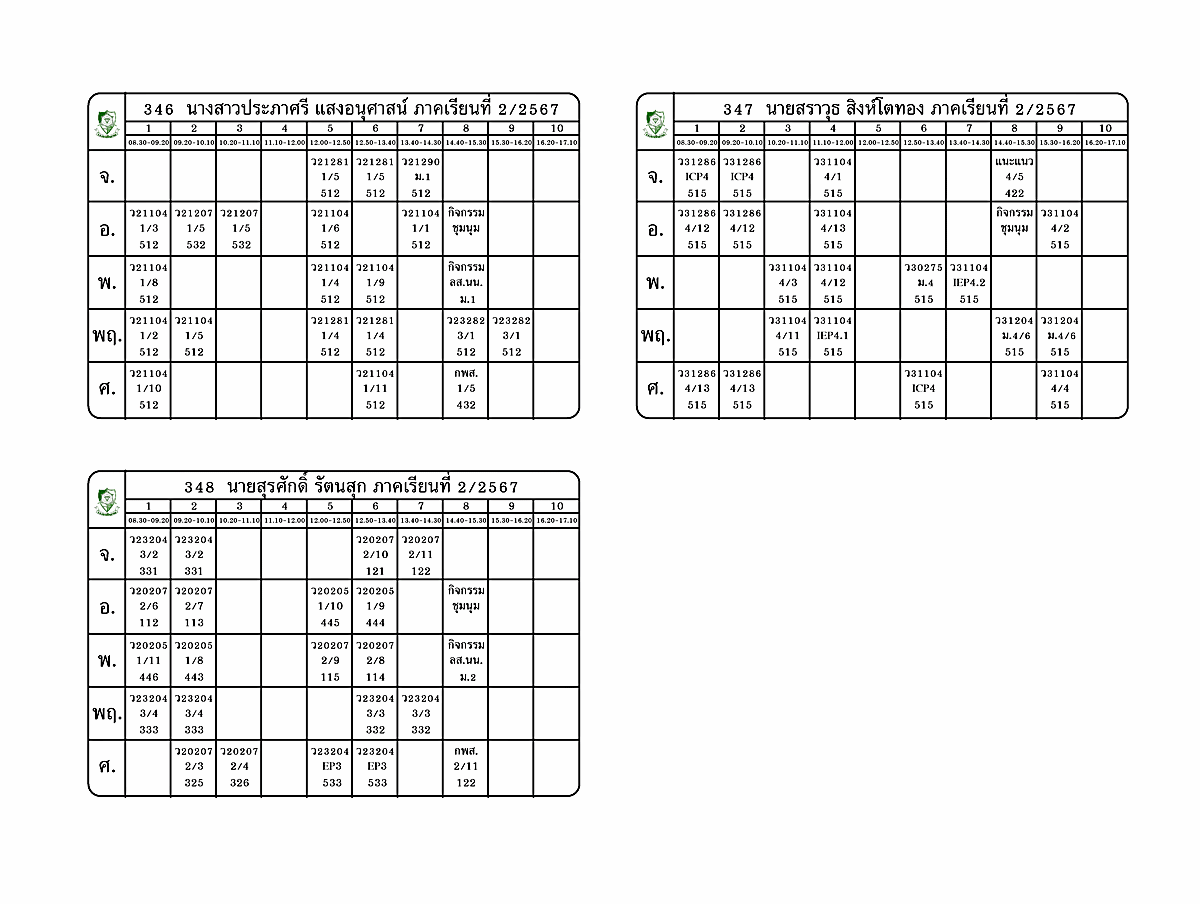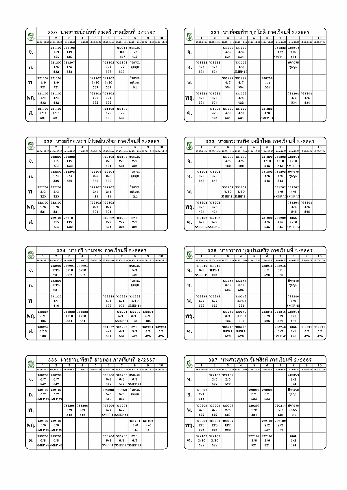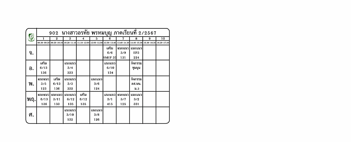 ตารางเรียนสอนครู (ปรับใหม่) เริ่มใช้ 11 พ.ย.2567 เป็นต้นไป