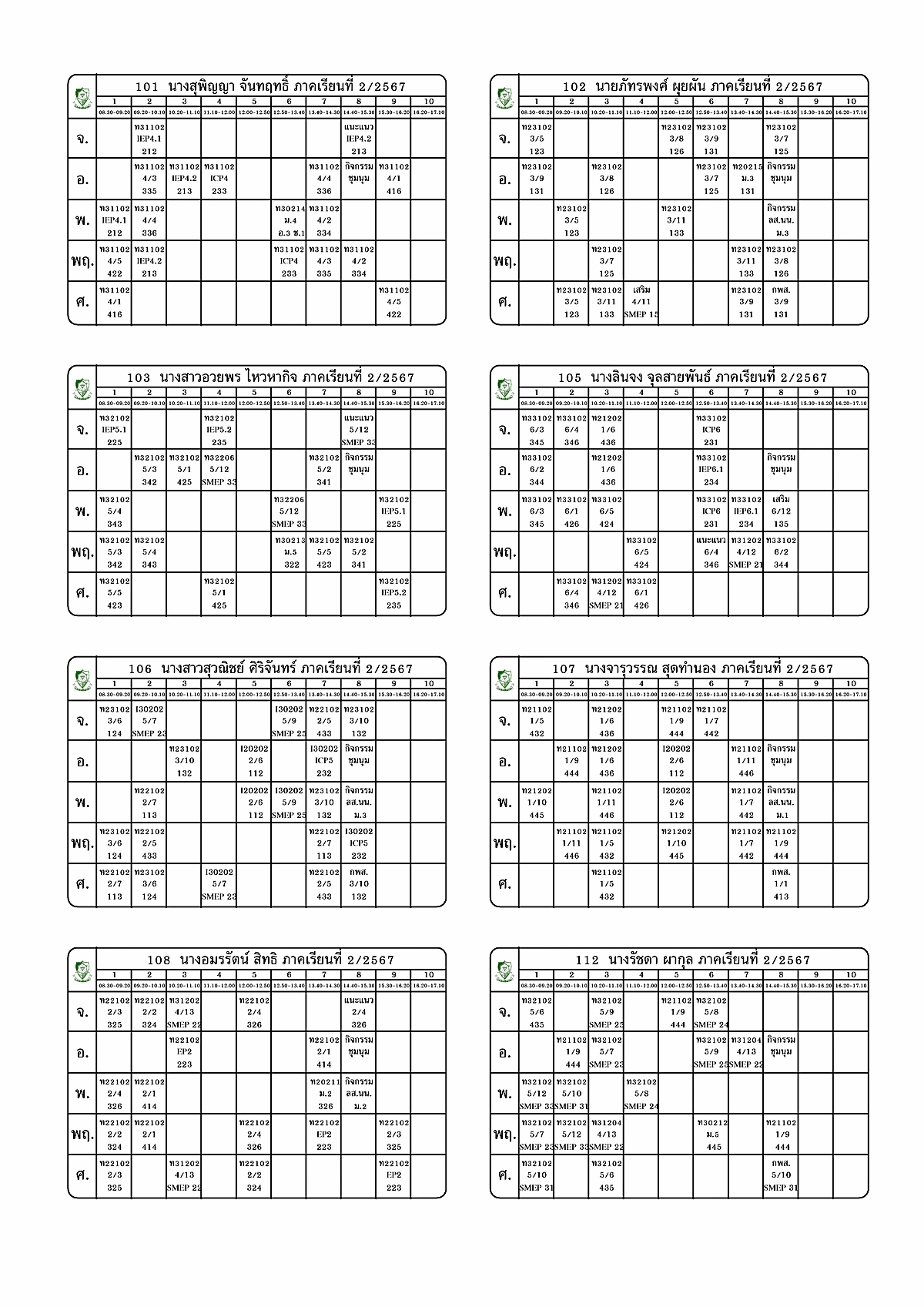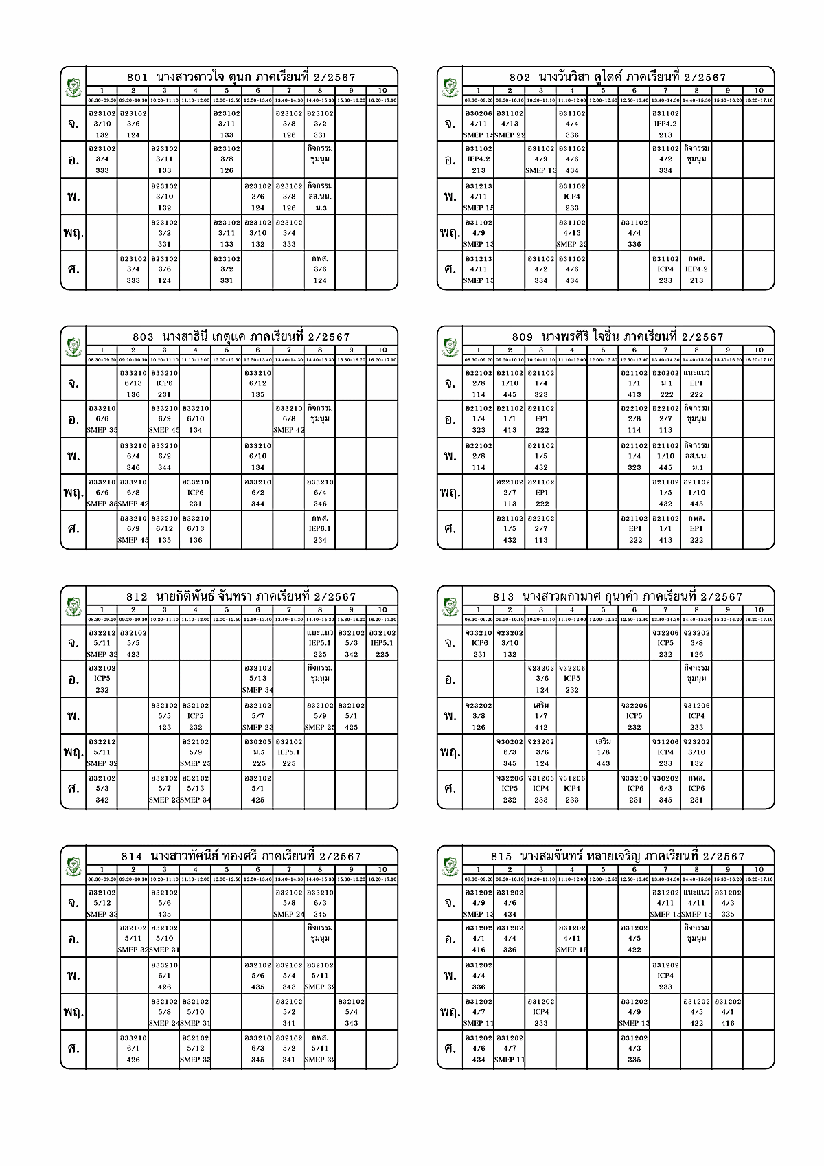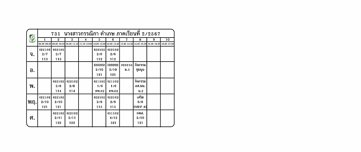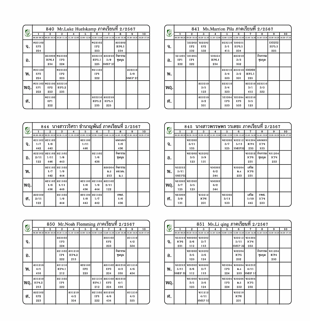ตารางเรียนสอนครู (ปรับใหม่) เริ่มใช้ 11 พ.ย.2567 เป็นต้นไป