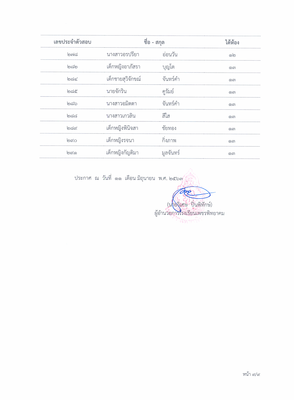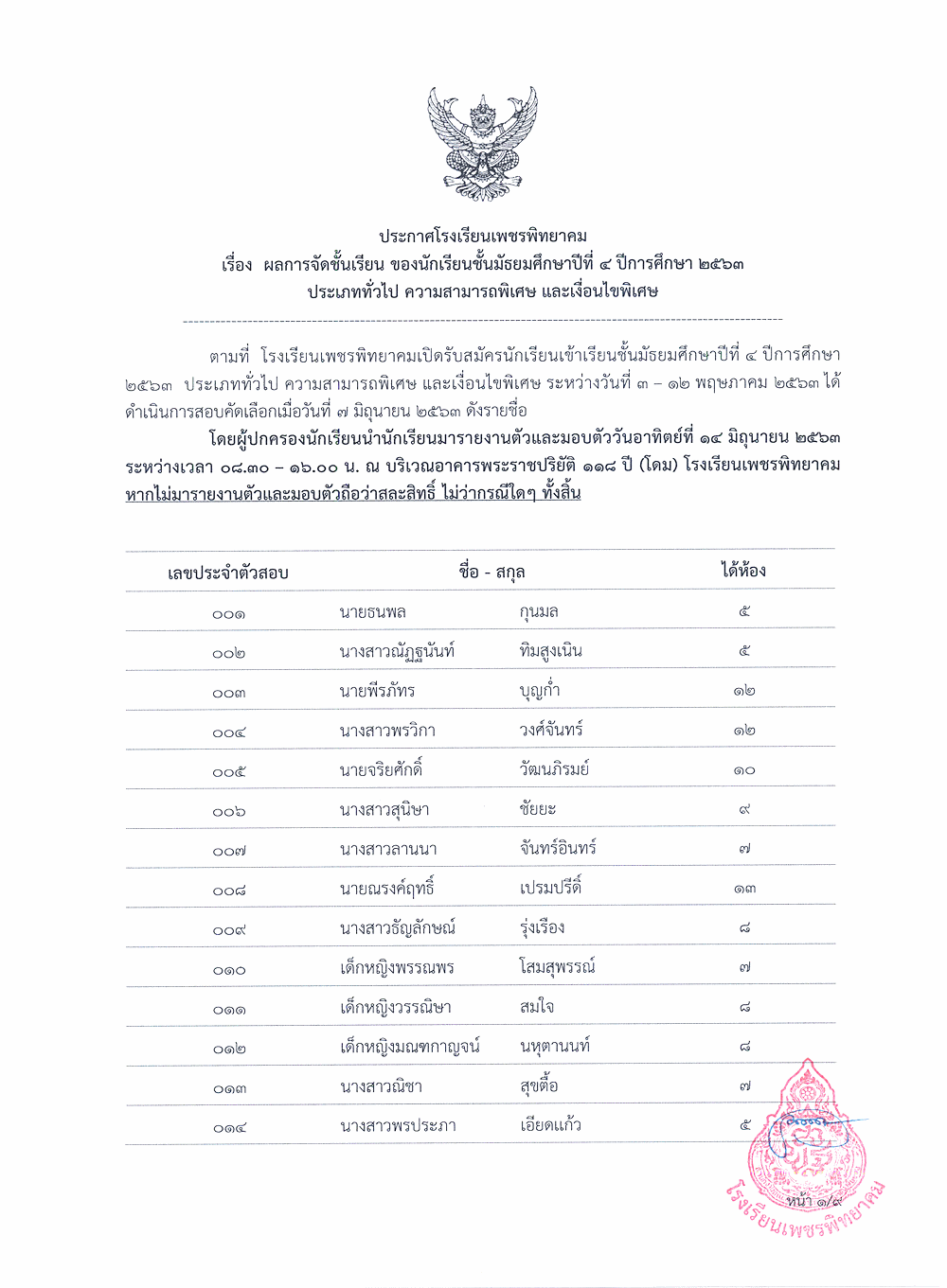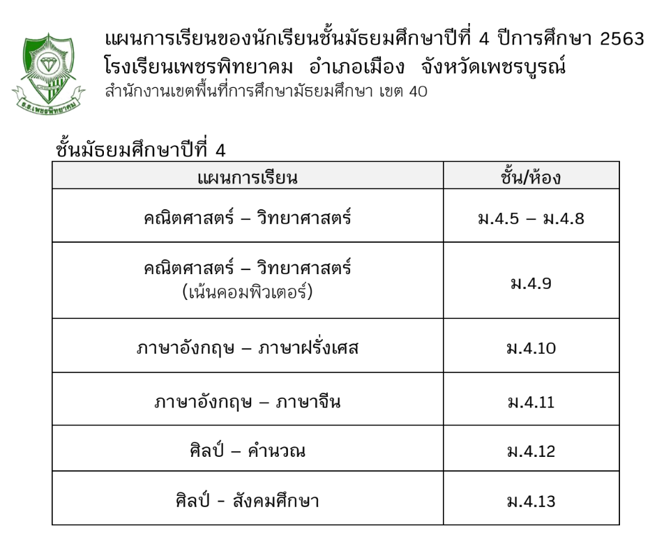 ประกาศผลการจัดชั้นเรียนนักเรียนชั้นมัธยมศึกษาปีที่ 4 ปีการศึกษา 2563