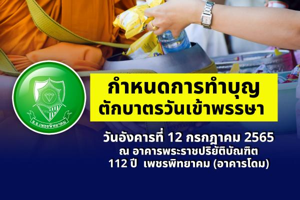 กำหนดการทำบุญตักบาตรวันเข้าพรรษา วันอังคารที่ 12 กรกฎาคม 2565
