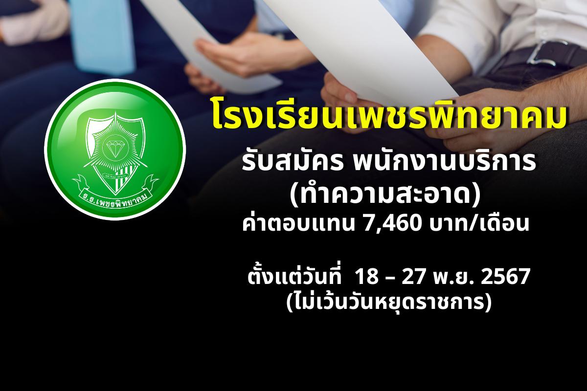โรงเรียนเพชรพิทยาคม รับสมัคร พนักงานบริการ (ทำความสะอาด) ตั้งแต่วันที่ 18 – 27 พฤศจิกายน พ.ศ. 2567 (ไม่เว้นวันหยุดราชการ)