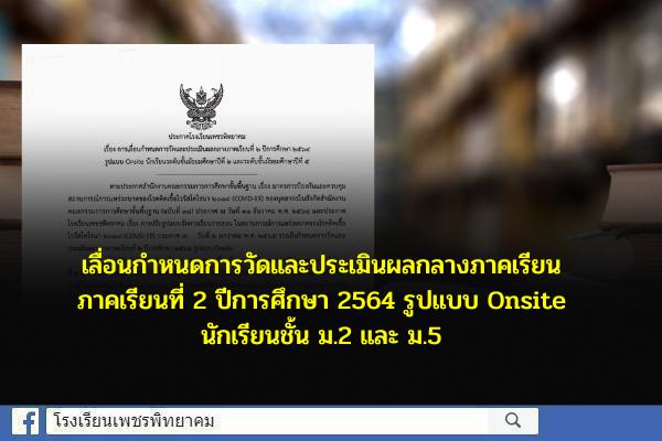 ประกาศโรงเรียนเพชรพิทยาคม เรื่อง การเลื่อนกำหนดการวัดและประเมินผลกลางภาคเรียนที่ 2 ปีการศึกษา 2564 รูปแบบ Onsite นักเรียนระดับชั้นมัธยมศึกษาปีที่ 2 และระดับชั้นมัธยมศึกษาปีที่ 5