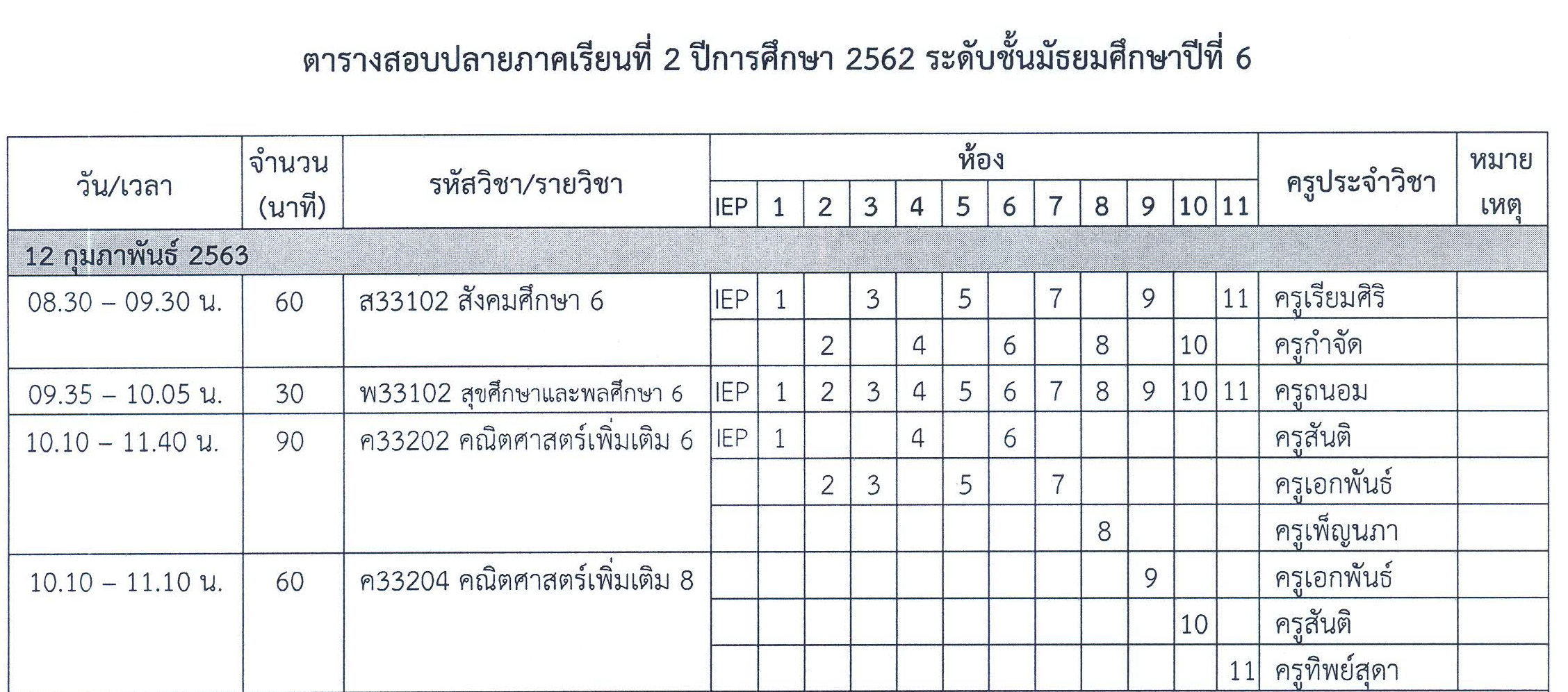 สำหรับตารางสอบปลายภาคเรียน ม.6 ภาคเรียนที่ 2 ปีการศึกษา 2562