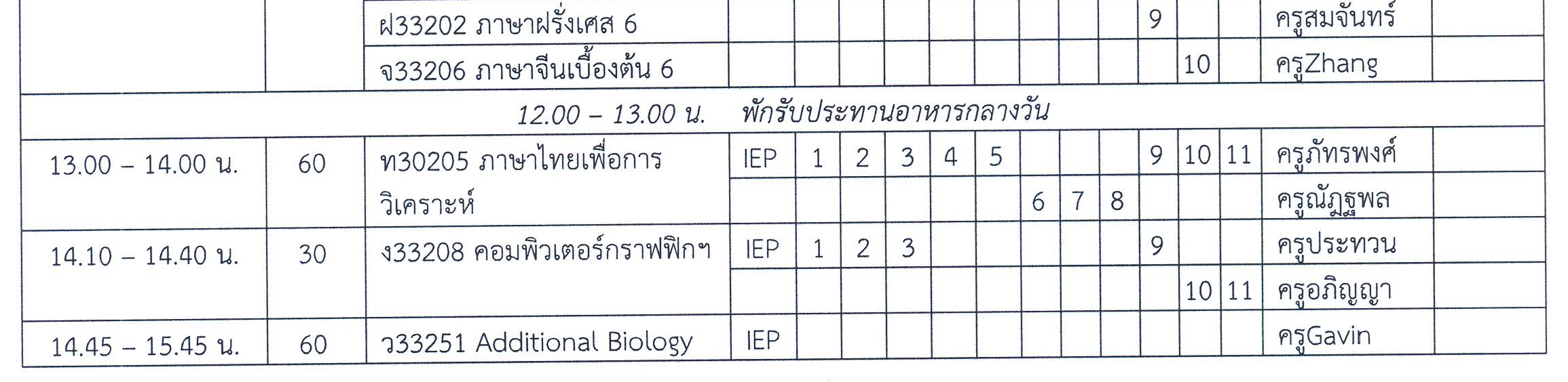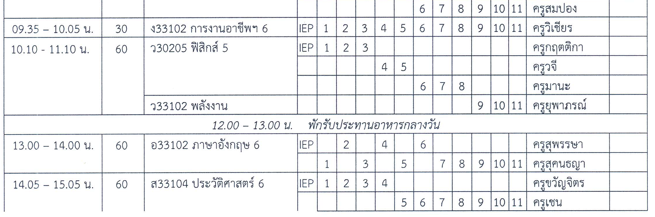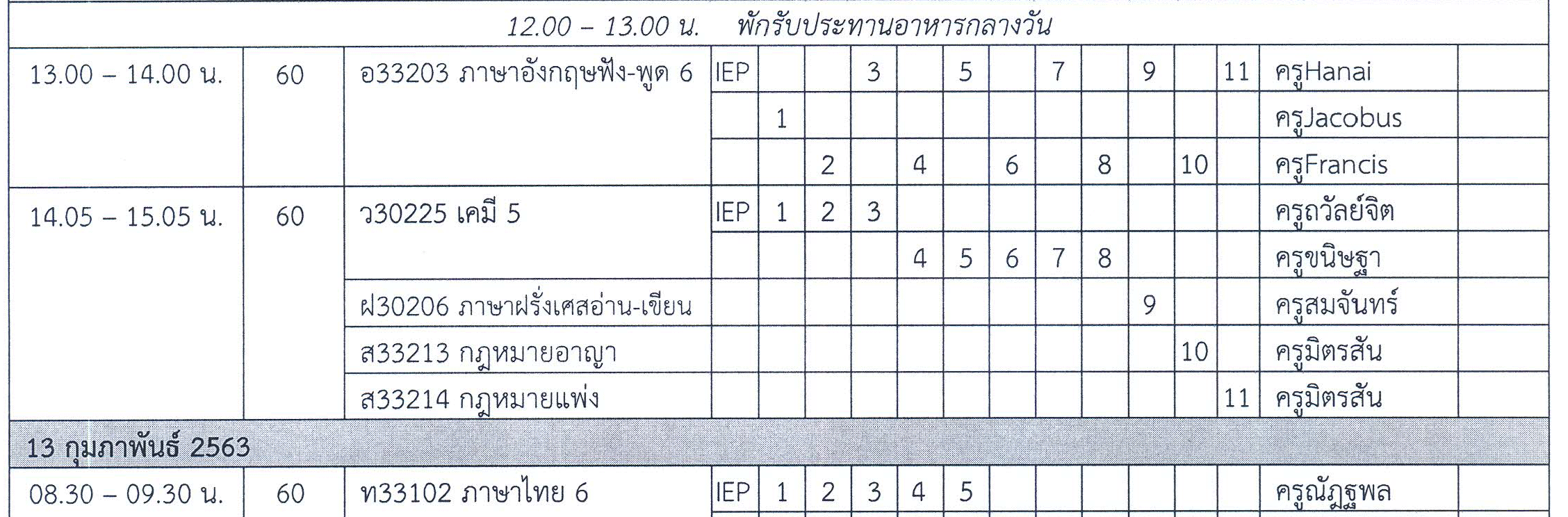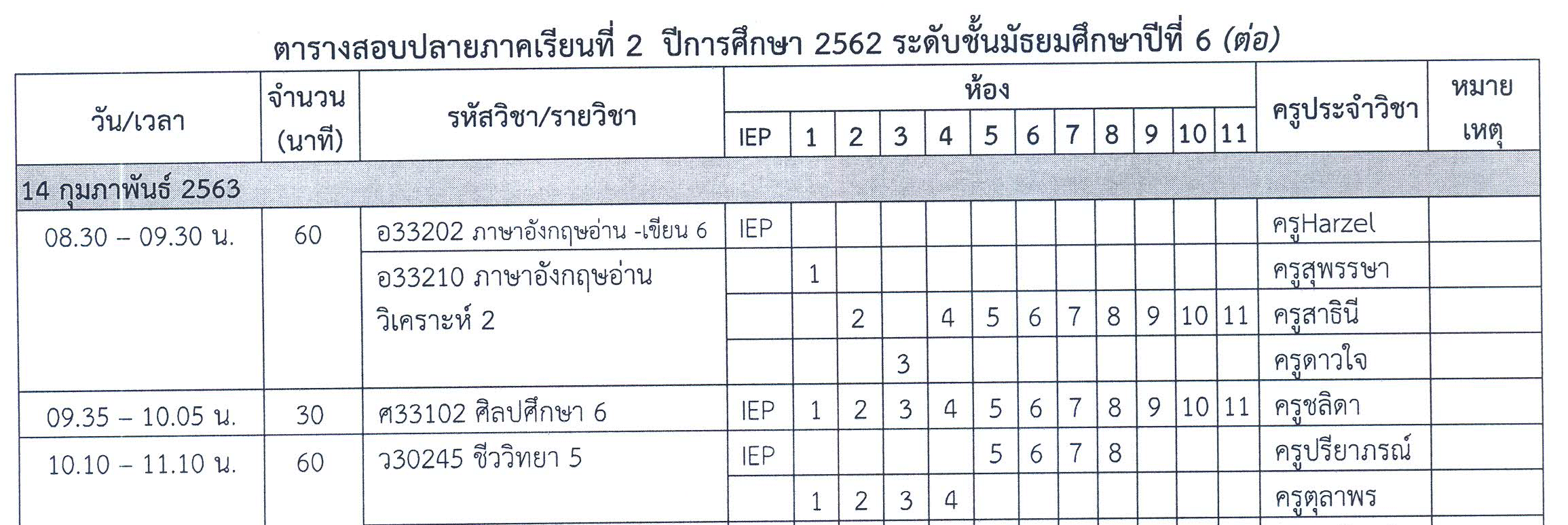 ตารางสอบปลายภาคเรียน ม.6 ภาคเรียนที่ 2 ปีการศึกษา 2562