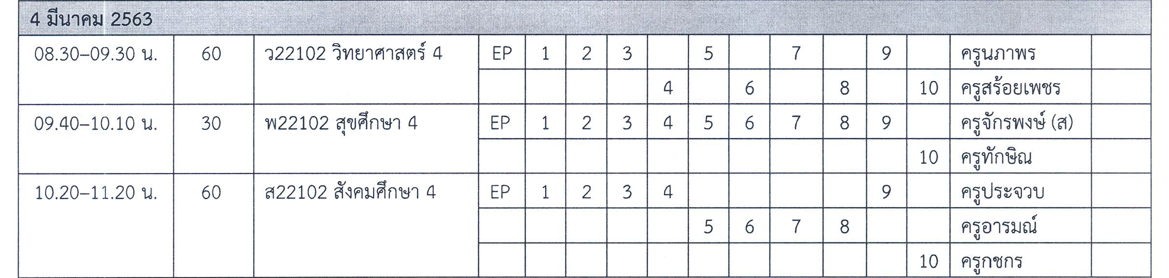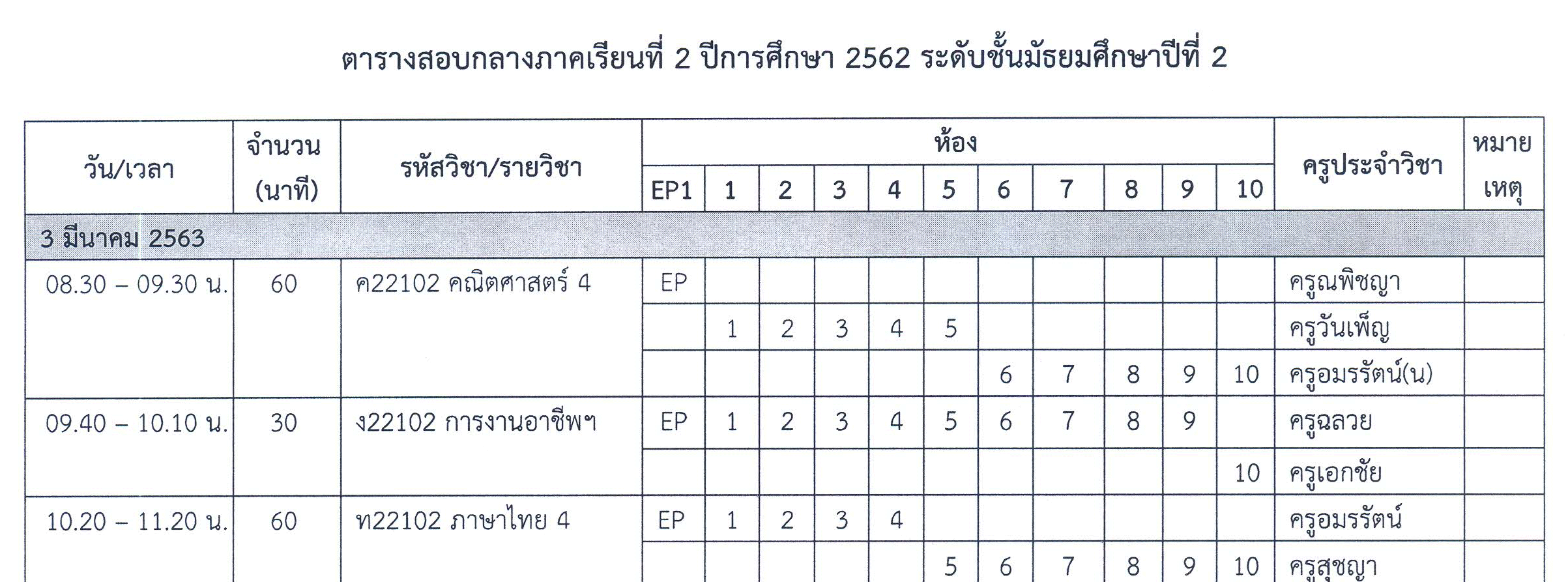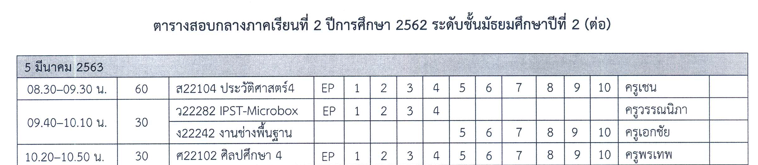 สำหรับตารางสอบปลายภาคเรียน ม.2 ภาคเรียนที่ 2 ปีการศึกษา 2562