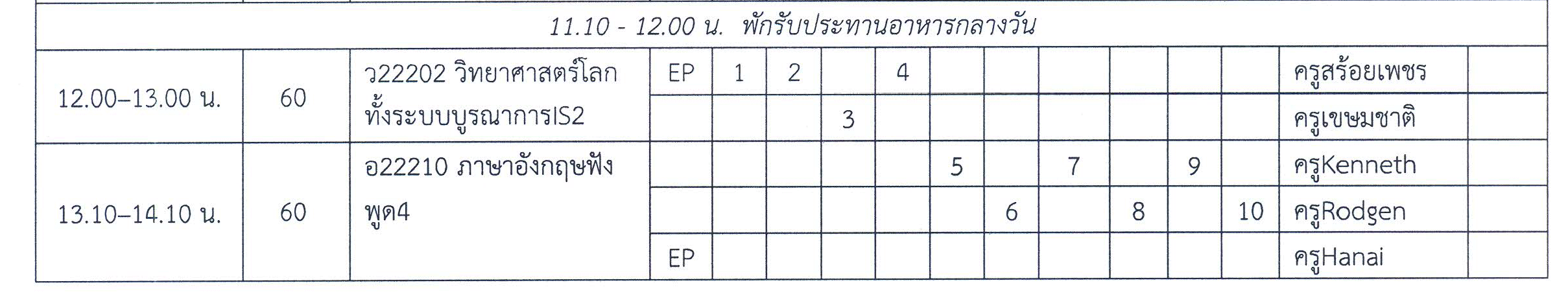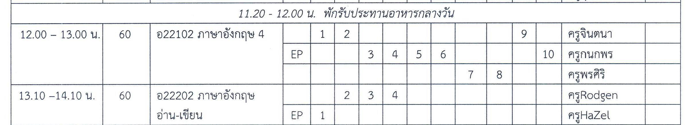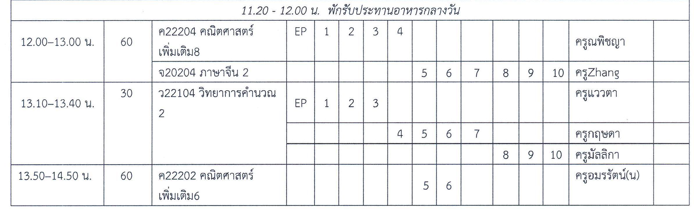 สำหรับตารางสอบปลายภาคเรียน ม.2 ภาคเรียนที่ 2 ปีการศึกษา 2562