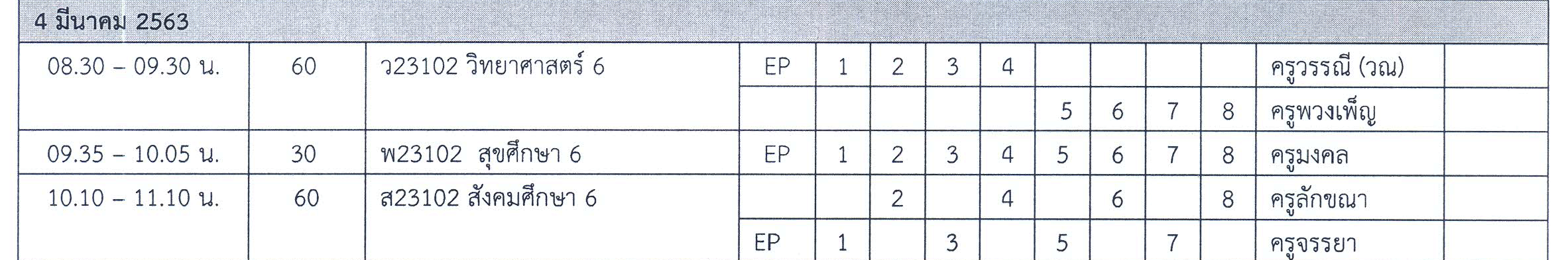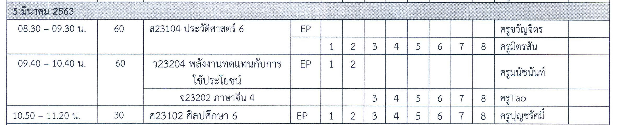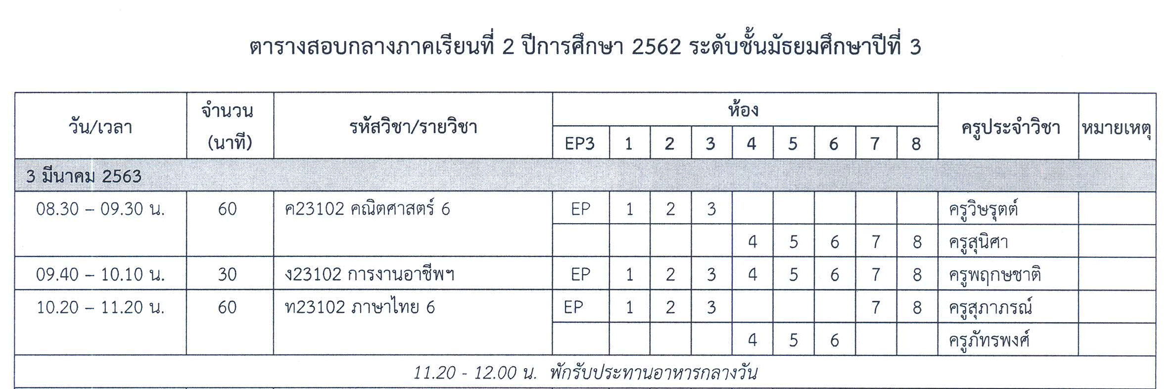 สำหรับตารางสอบปลายภาคเรียน ม.3 ภาคเรียนที่ 2 ปีการศึกษา 2562