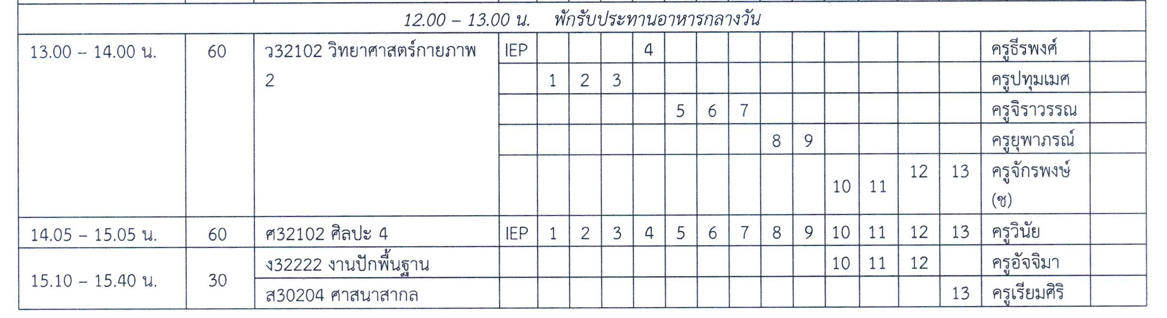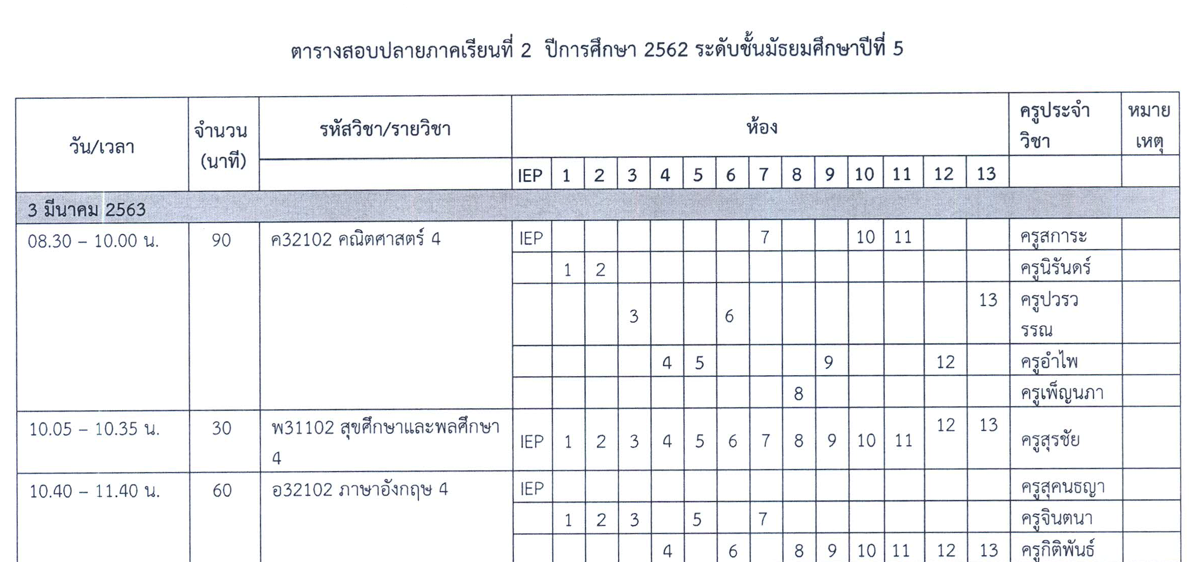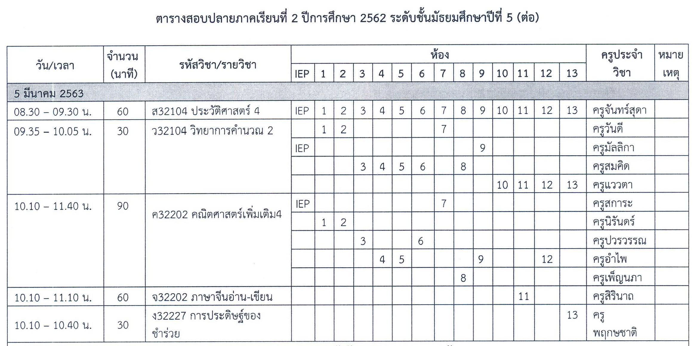 สำหรับตารางสอบปลายภาคเรียน ม.5 ภาคเรียนที่ 2 ปีการศึกษา 2562