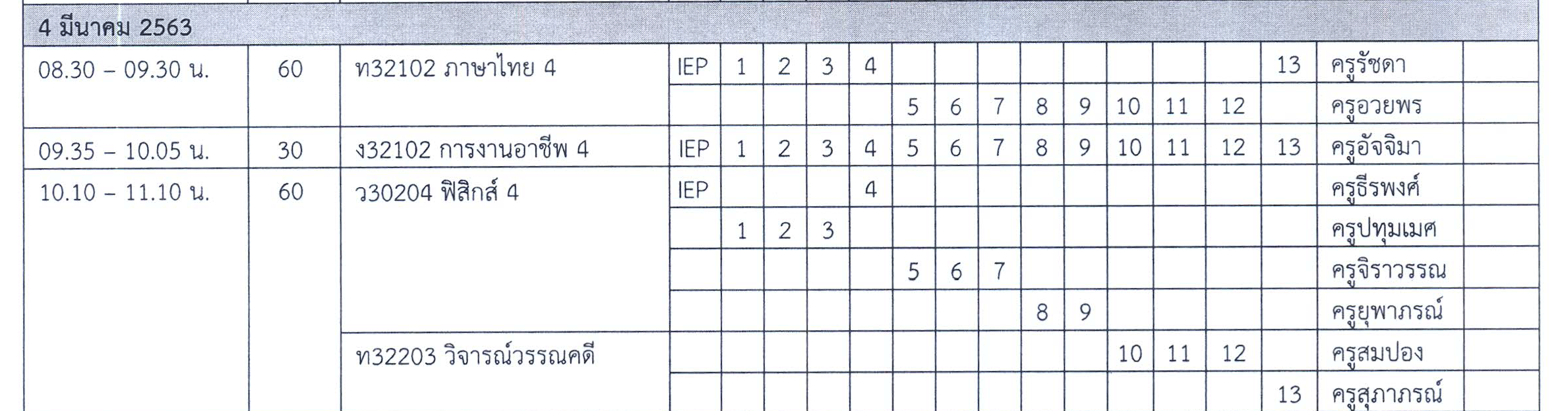 ระดับชั้นมัธยมศึกษาปีที่ 1-5 วันที่ 3-5 มีนาคม 2563