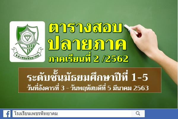 โรงเรียนเพชรพิทยาคม กำหนดให้มีการสอบวัดผลปลายภาคเรียน ประจำภาคเรียนที่ 2 ปีการศึกษา 2562