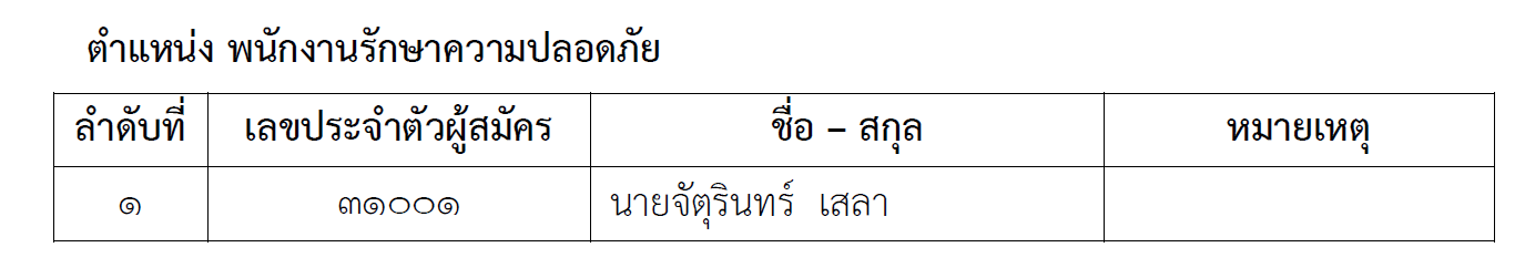 ประกาศผลการสอบคัดเลือกบุคคลเป็นลูกจ้างชั่วคราว ตำแหน่งพนักงานรักษาความปลอดภัย