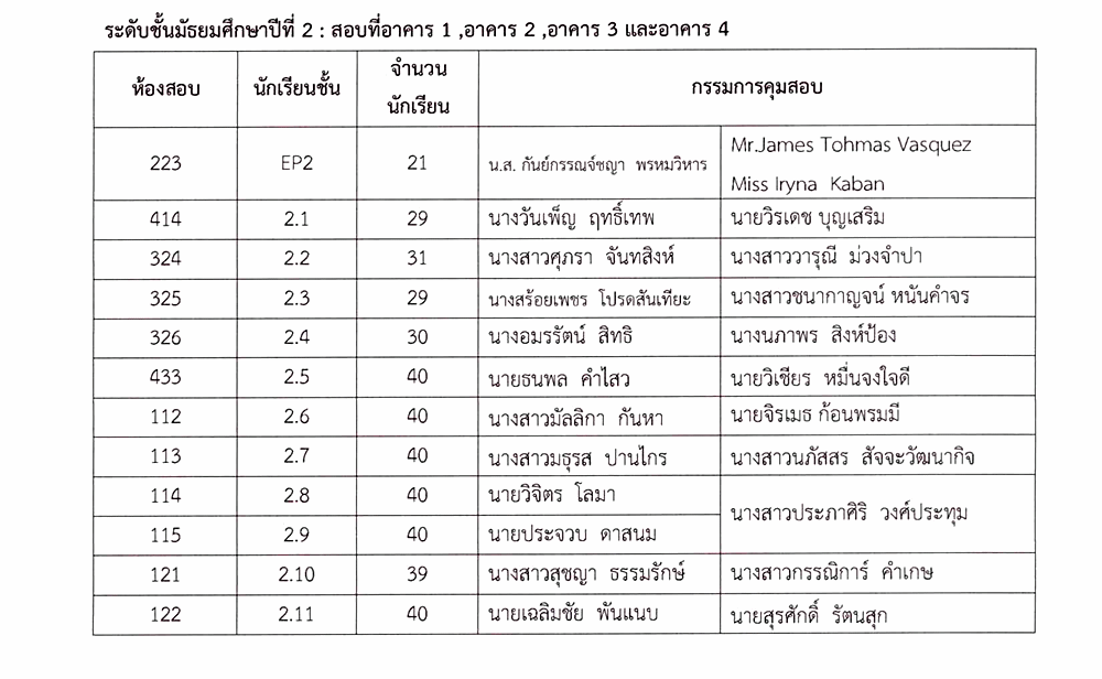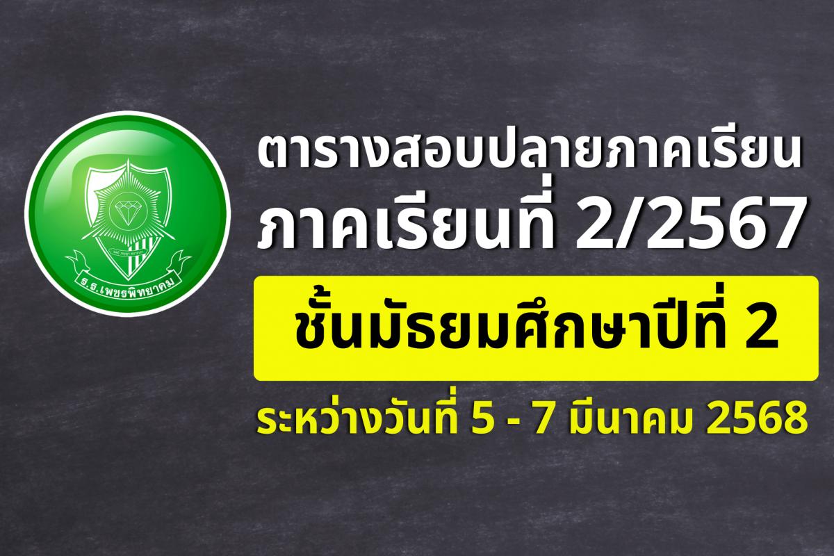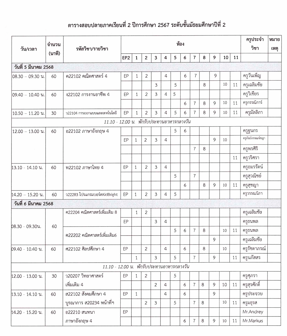 ตารางสอบปลายภาคเรียน ชั้นมัธยมศึกษาปีที่ 2 ภาคเรียนที่ 2 ปีการศึกษา 2567