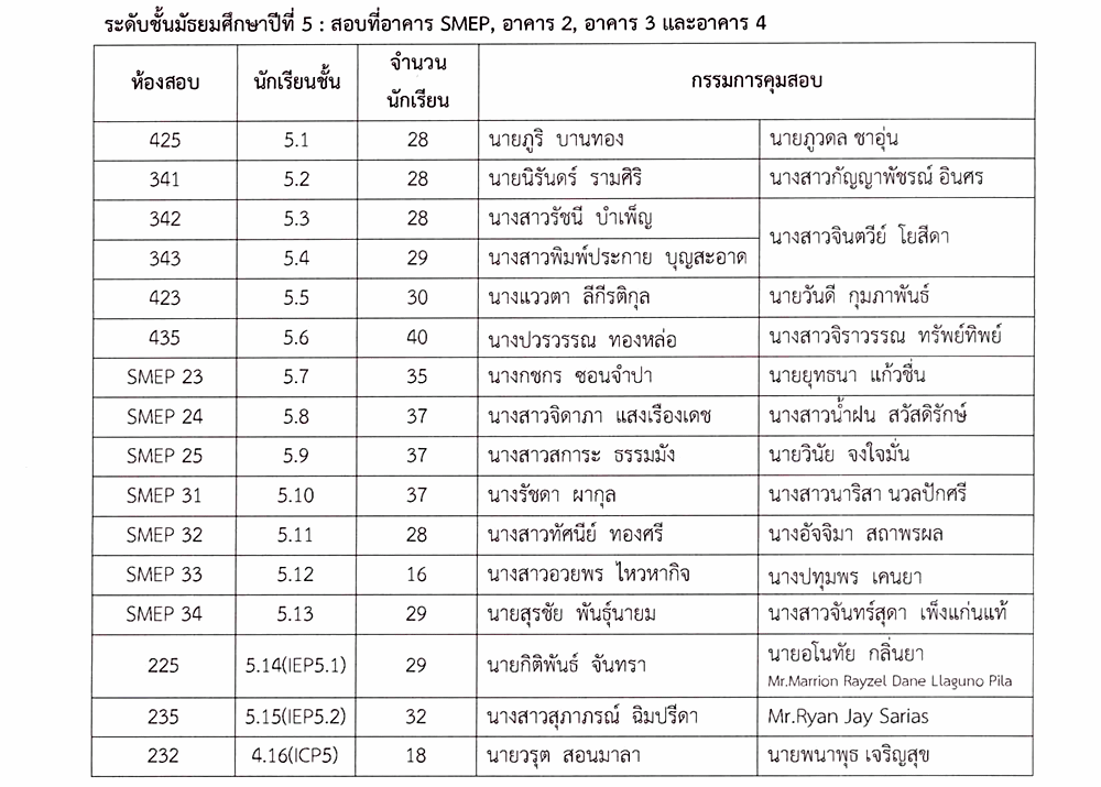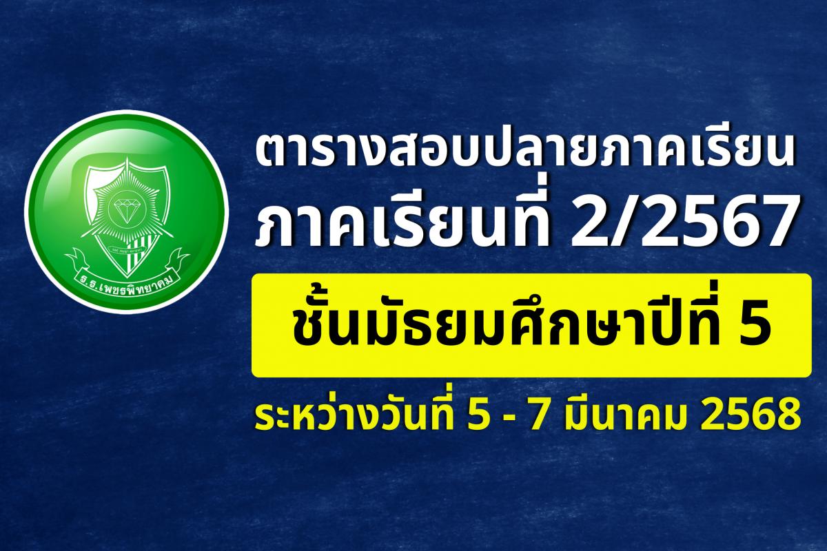 ตารางสอบปลายภาคเรียน ชั้นมัธยมศึกษาปีที่ 5 ภาคเรียนที่ 2 ปีการศึกษา 2567
