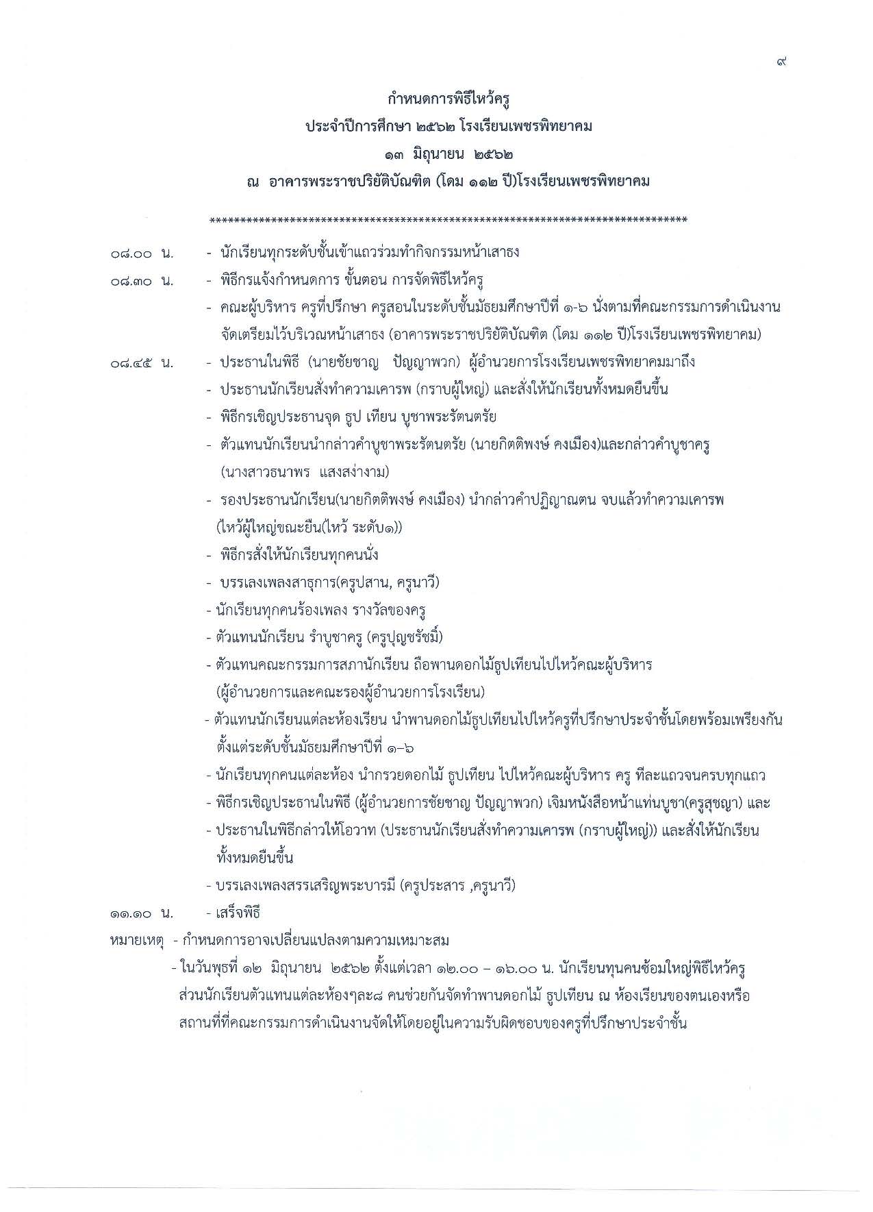 กำหนดการพิธีไหว้ครู ประจำปีการศึกษา 2562