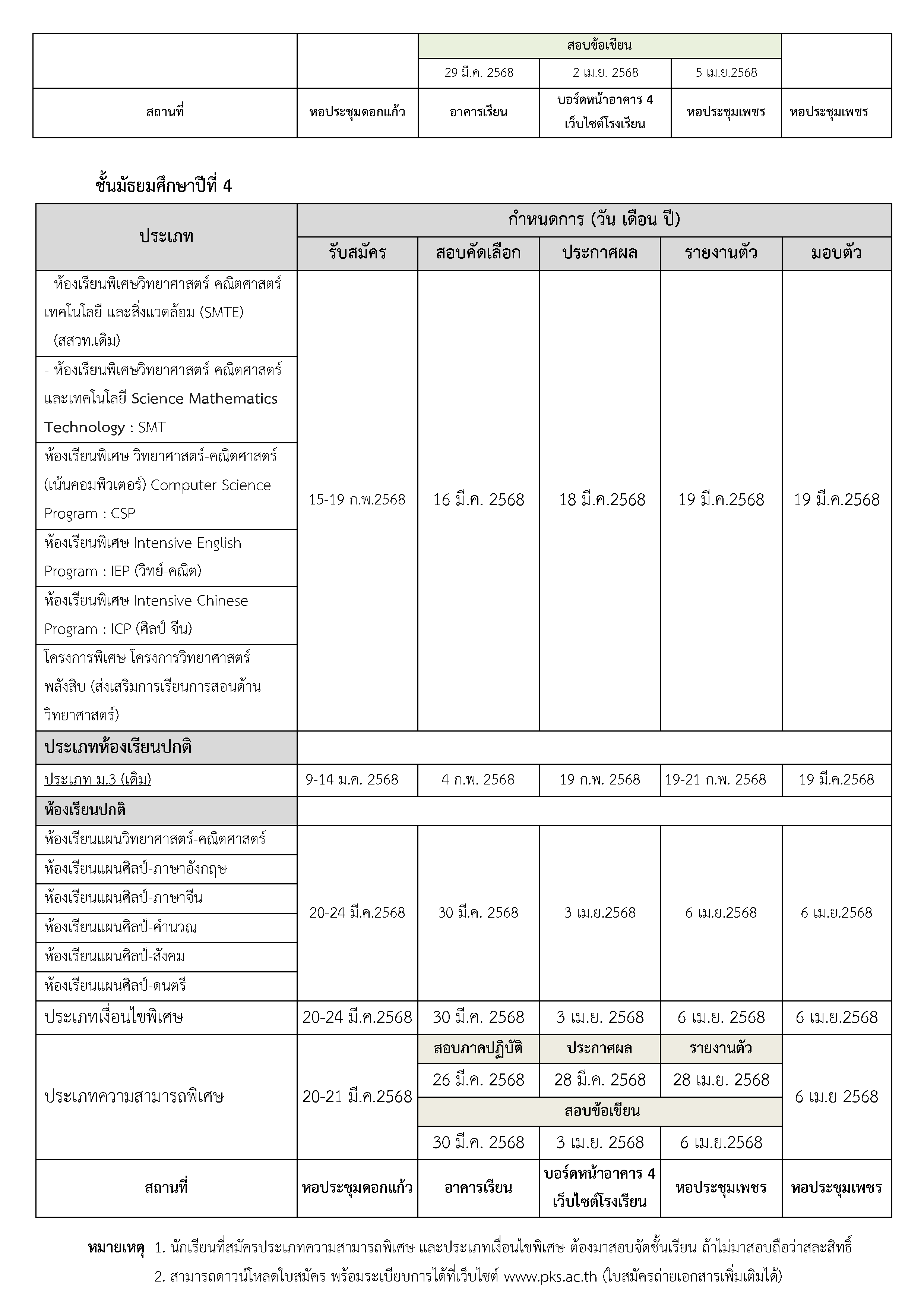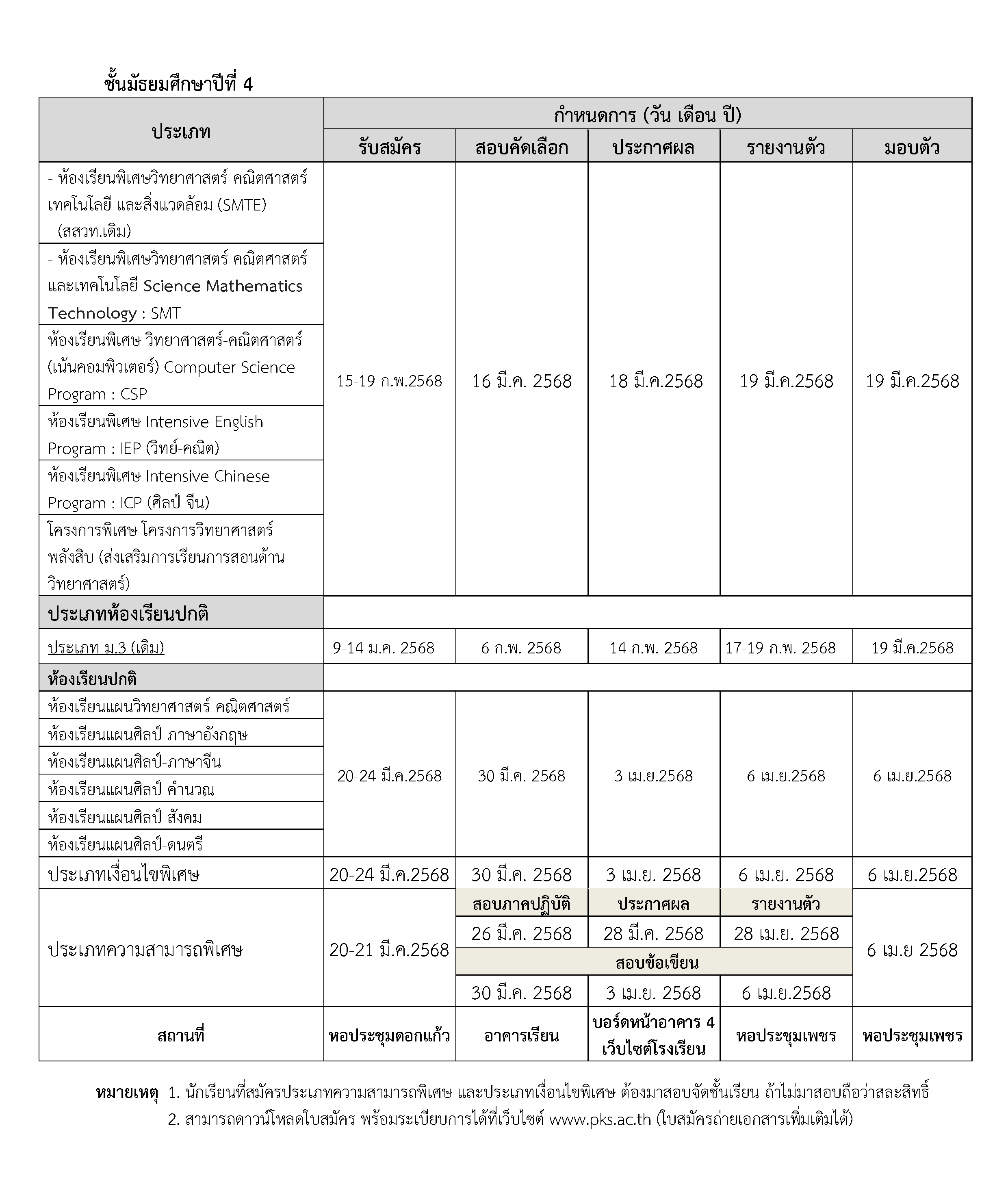 - ใบสมัคร ม.4 ปีการศึกษา 2568 ห้องเรียนพิเศษ
