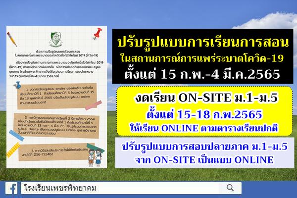 1. งดการเรียนรูปแบบ onsite ของนักเรียนระดับชั้นมัธยมศึกษาปีที่ 1 ถึงมัธยมศึกษาปีที่ 5 ในระหว่างวันที่ 15 ถึง 18 กุมภาพันธ์ 2565 ปรับเป็นเรียนรูปแบบ online ตามตารางเรียนปกติ