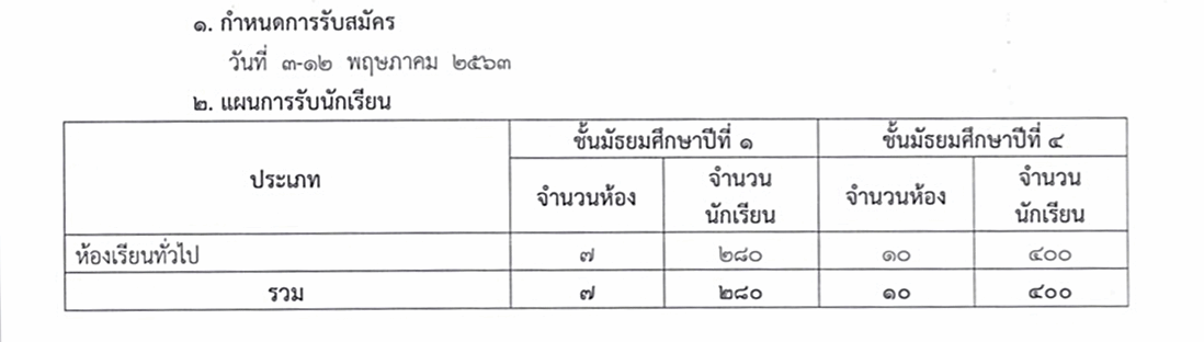 ตามมติคณะรัฐมนตรี มาตรการเร่งด่วนในการป้องกันวิกฤตการณ์จากโรคติดเชื้อไวรัสโคโรนา 2019 (COVID 19) อันส่งผลกระทบต่อกระบวนการรับสมัคร การคัดเลือกหรือสอบคัดเลือก การจับฉลาก การประกาศผล การรายงานงานตัวและการมอบตัวที่ได้กำหนดในปฏิทินการรับนักเรียน ปีการศึกษา 2563 สังกัด สำนักงานคณะกรรมการการศึกษาขั้นพื้นฐาน ซึ่งกำหนดการดำเนินการระหว่างเดือนมีนาคมถึงพฤษภาคม 2563 กอปรกับกระทรวงศึกษาธิการได้มีประกาศเรื่อง การเปิดเรียนของสถานศึกษาในสังกัดและในกำกับของกระทรวงศึกษาธิการ ณ วันที่ 9 เมษายน 2563 ให้สถานศึกษาทุกแห่งของรัฐและเอกชนทั้งในระบบและนอกระบบ เปิดเรียนในวันที่ 1 กรกฎาคม 2563 หนังสือสำนักงานคณะกรรมการการศึกษาขั้นพื้นฐาน ที่ศธ 04006/ว1548 ลงวันที่ 17 เมษายน 2563 เรื่องแนวทางการรับนักเรียน ปีการศึกษา 2563 และหนังสือสำนักงานคณะกรรมการการศึกษาขั้นพื้นฐาน ที่ศธ 04006/ว1666 ลงวันที่ 30 เมษายน 2563 เรื่องแนวทางการรับนักเรียน ปีการศึกษา 2563
