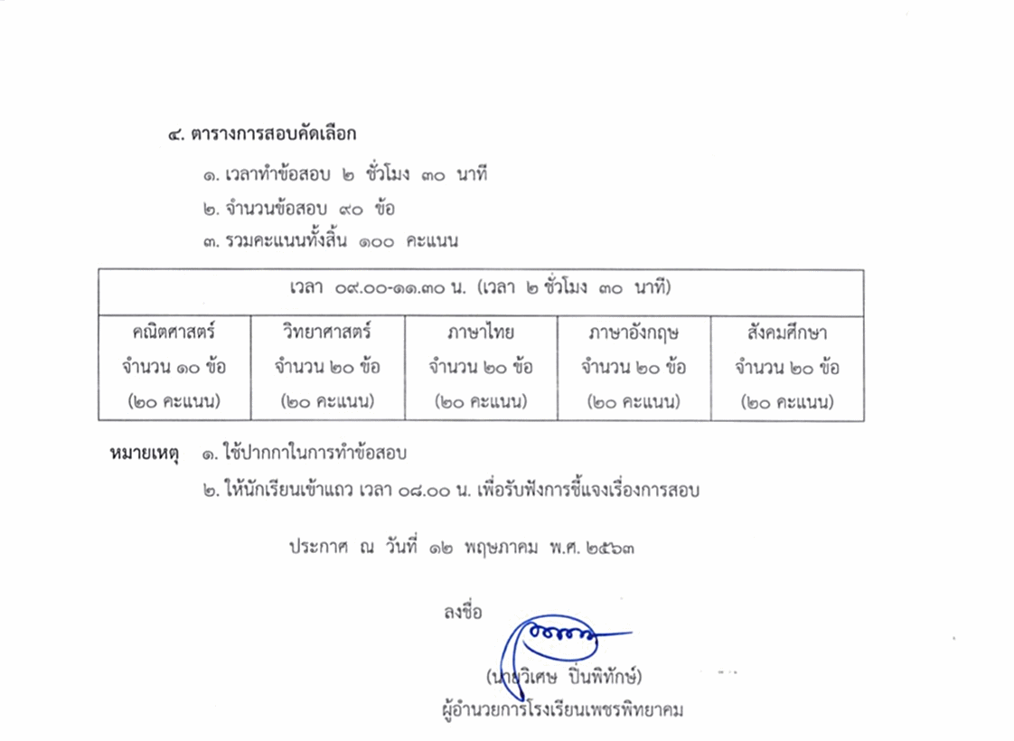 เรื่อง เปลี่ยนแปลงปฏิทินการสอบคัดเลือกและการมอบตัวนักเรียนชั้นมัธยมศึกษาปีที่ 1 และชั้นมัธยมศึกษาปีที่ 4