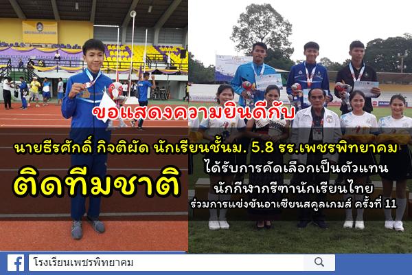 ขอแสดงความยินดีกับ นายธีรศักดิ์ กิจติผัด นักเรียนชั้นมัธยมศึกษาปีที่ 5.8 ติดทีมชาติ ได้รับการคัดเลือกเป็นตัวแทนนักกีฬากรีฑานักเรียนไทย