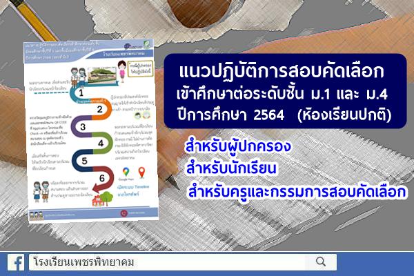 แนวปฏิบัติการสอบคัดเลือกเข้าศึกษาต่อระดับชั้นมัธยมศึกษาปีที่ 1 และ 4 ปีการศึกษา 2564 (ห้องเรียนปกติ)