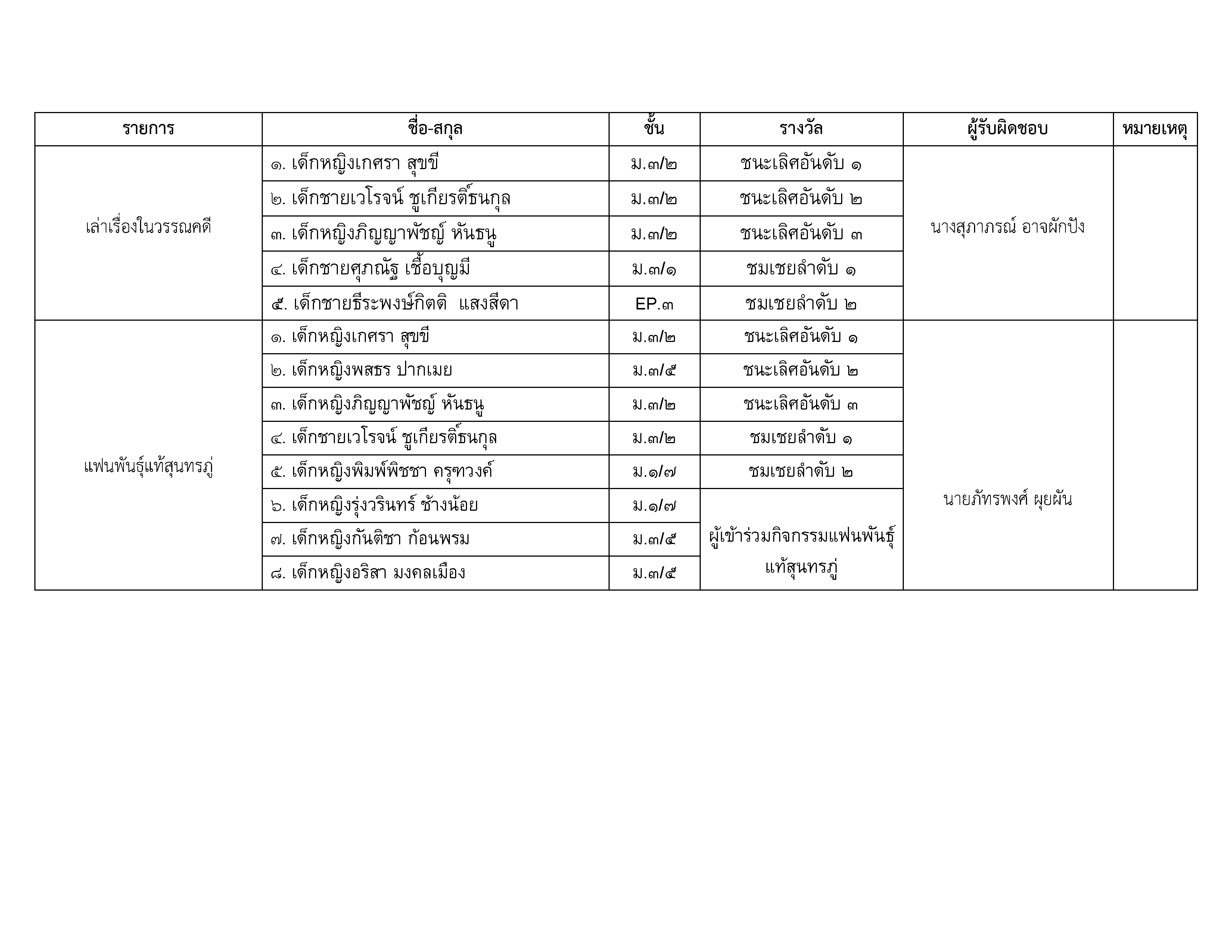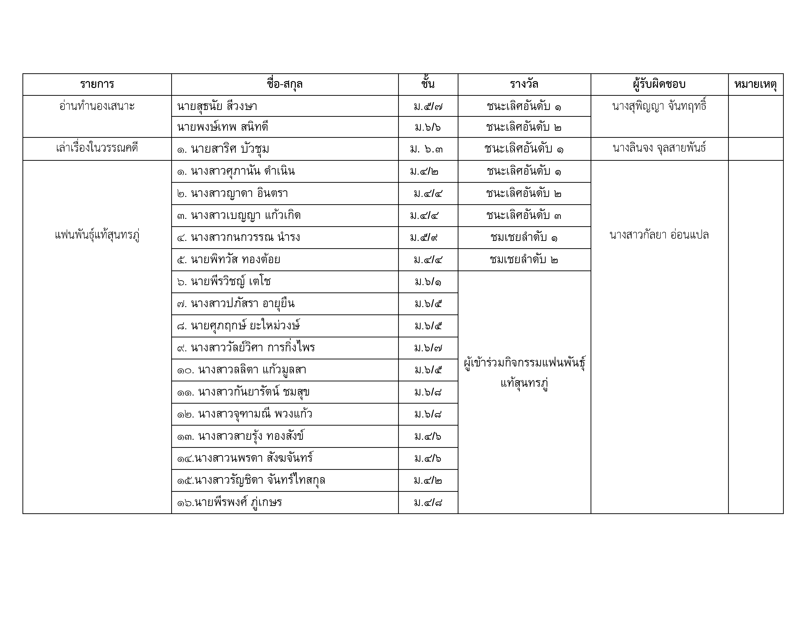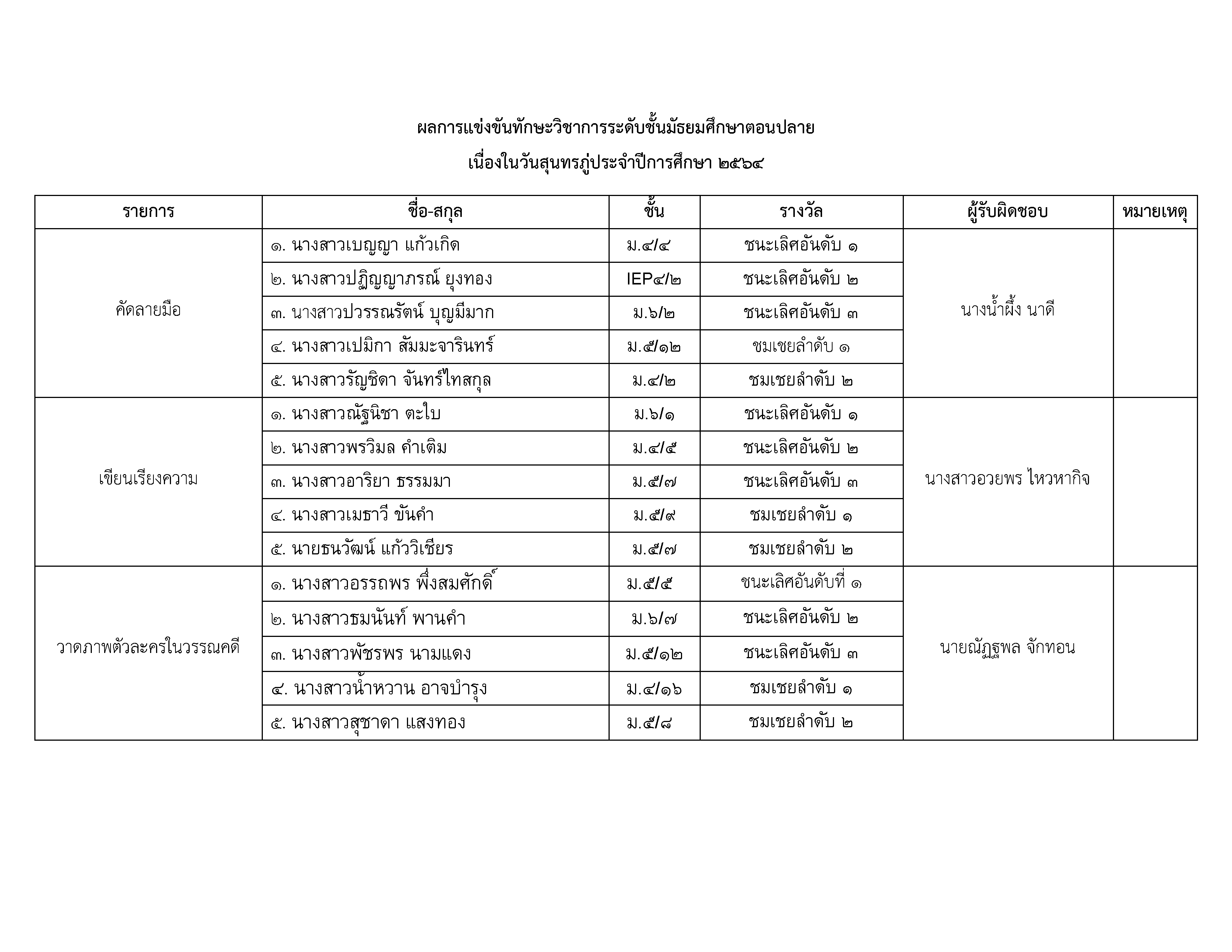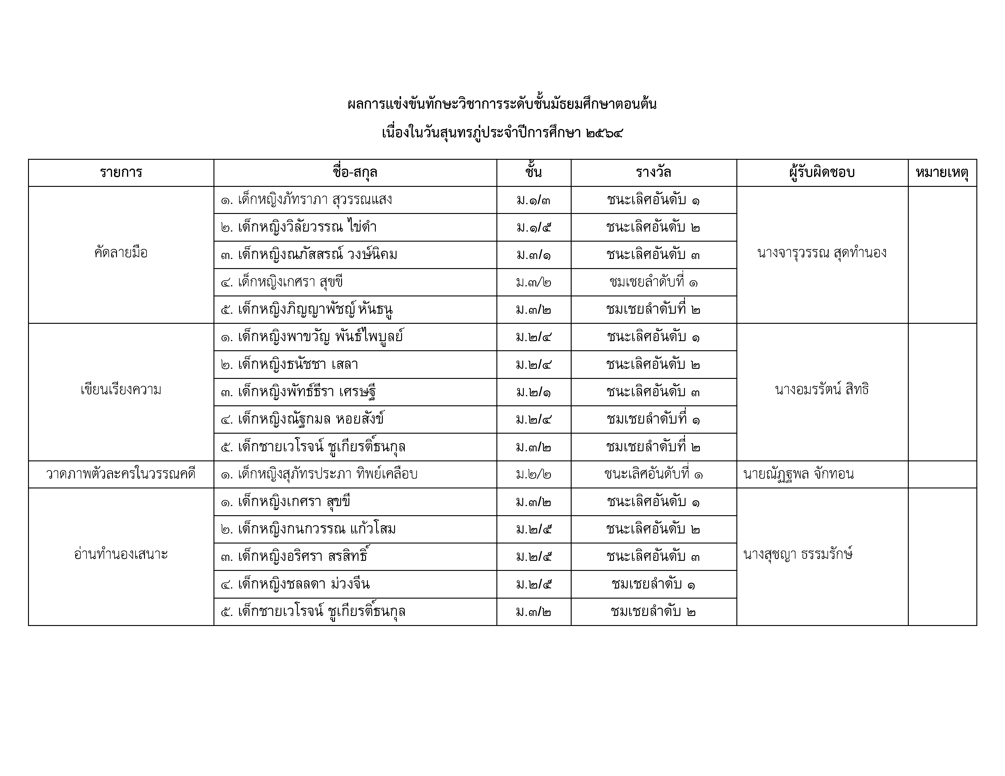 ผลการแข่งขันทักษะวิชาการ เนื่องในวันสุนทรภู่ประจำปีการศึกษา 2564
