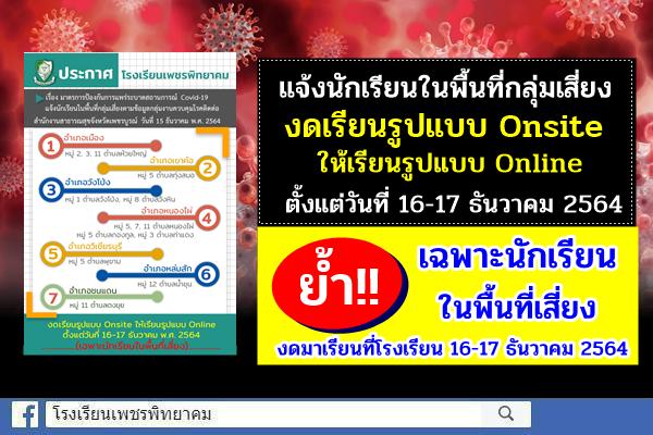 ประกาศโรงเรียนเพชรพิทยาคม เรื่อง มาตรการป้องกันการแพร่ระบาดสถานการณ์ Covid-19 แจ้งนักเรียนในพื้นที่กลุ่มเสี่ยงตามข้อมูลกลุ่มงานควบคุมโรคติดต่อ สำนักงานสาธารณสุขจังหวัดเพชรบูรณ์ วันที่ 15 ธันวาคม พ.ศ. 2564