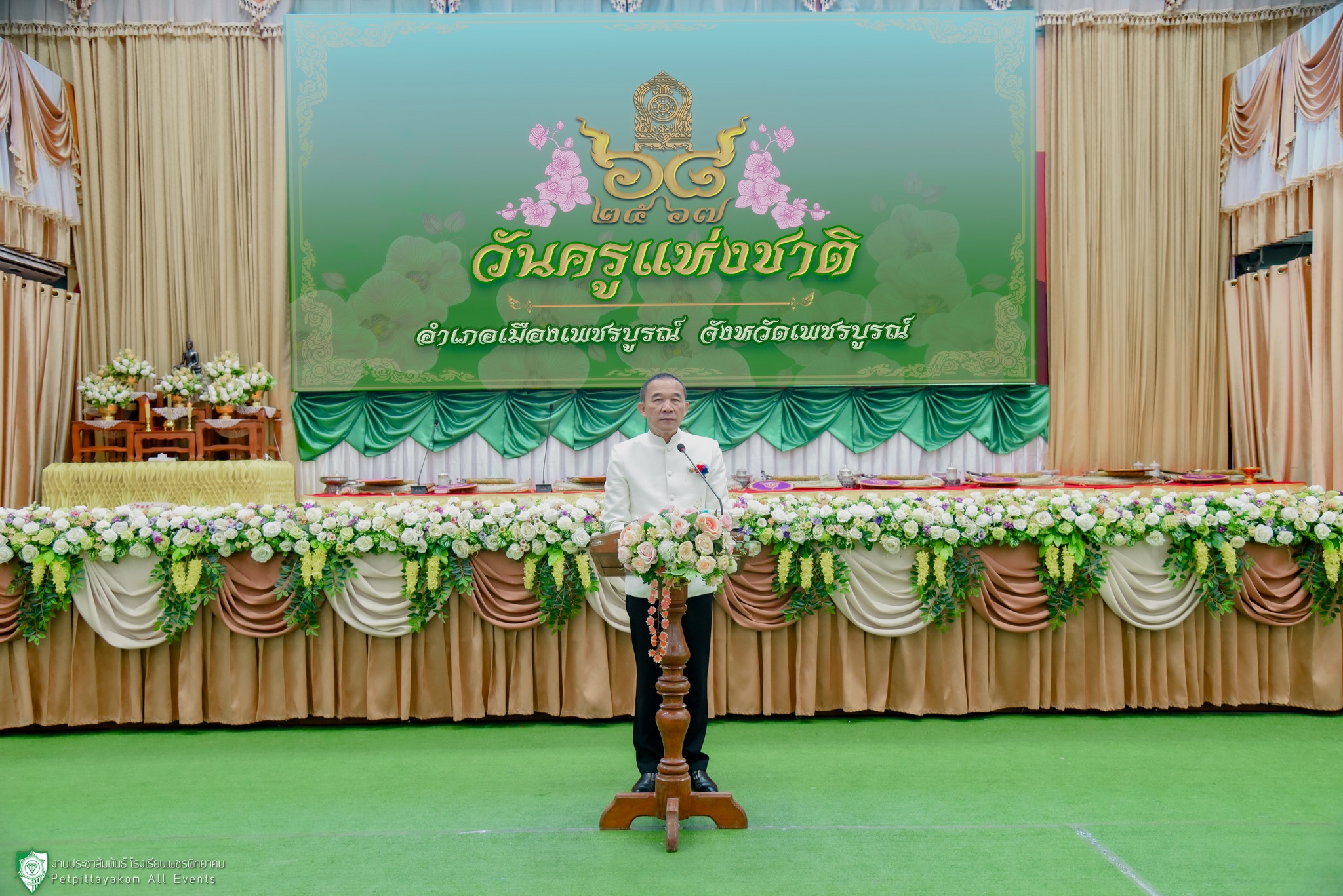 นายวิเศษ ปิ่นพิทักษ์ ผู้อำนวยการโรงเรียนเพชรพิทยาคม พร้อมด้วยรองผู้อำนวยการ และคณะครูร่วมพิธีงานวันครู ครั้งที่ 68 พ.ศ.2567 จังหวัดเพชรบูรณ์ ในหัวข้อ "ครูดีสอนดี ศิษย์ดีเรียนดี มีความสุข"” โดยมี นายกฤษณ์ คงเมือง ผู้ว่าราชการจังหวัดเพชรบูรณ์ เป็นประธานในพิธี พระเดชพระคุณ พระราชพัชรธรรมเมธี เจ้าคณะจังหวัดเพชรบูรณ์ (ม) เป็นประธานฝ่ายสงฆ์ พร้อมด้วย นางสาวสุภาพันธุ์ ทองพยงค์ ศึกษาธิการจังหวัดเพชรบูรณ์ นายอดุลย์ ภูปลื้ม ผู้อำนวยการสำนักงานเขตพื้นที่การศึกษามัธยมศึกษาเพชรบูรณ์ หัวหน้าส่วนราชการ ข้าราชการครูและบุคลากรทางการศึกษา ทั้งภาครัฐและเอกชนในจังหวัดเพชรบูรณ์ เข้าร่วมงานเมื่อวันที่ 16 มกราคม 2567 ณ หอประชุมเพชร โรงเรียนเพชรพิทยาคม อำเภอเมืองเพชรบูรณ์ จังหวัดเพชรบูรณ์
