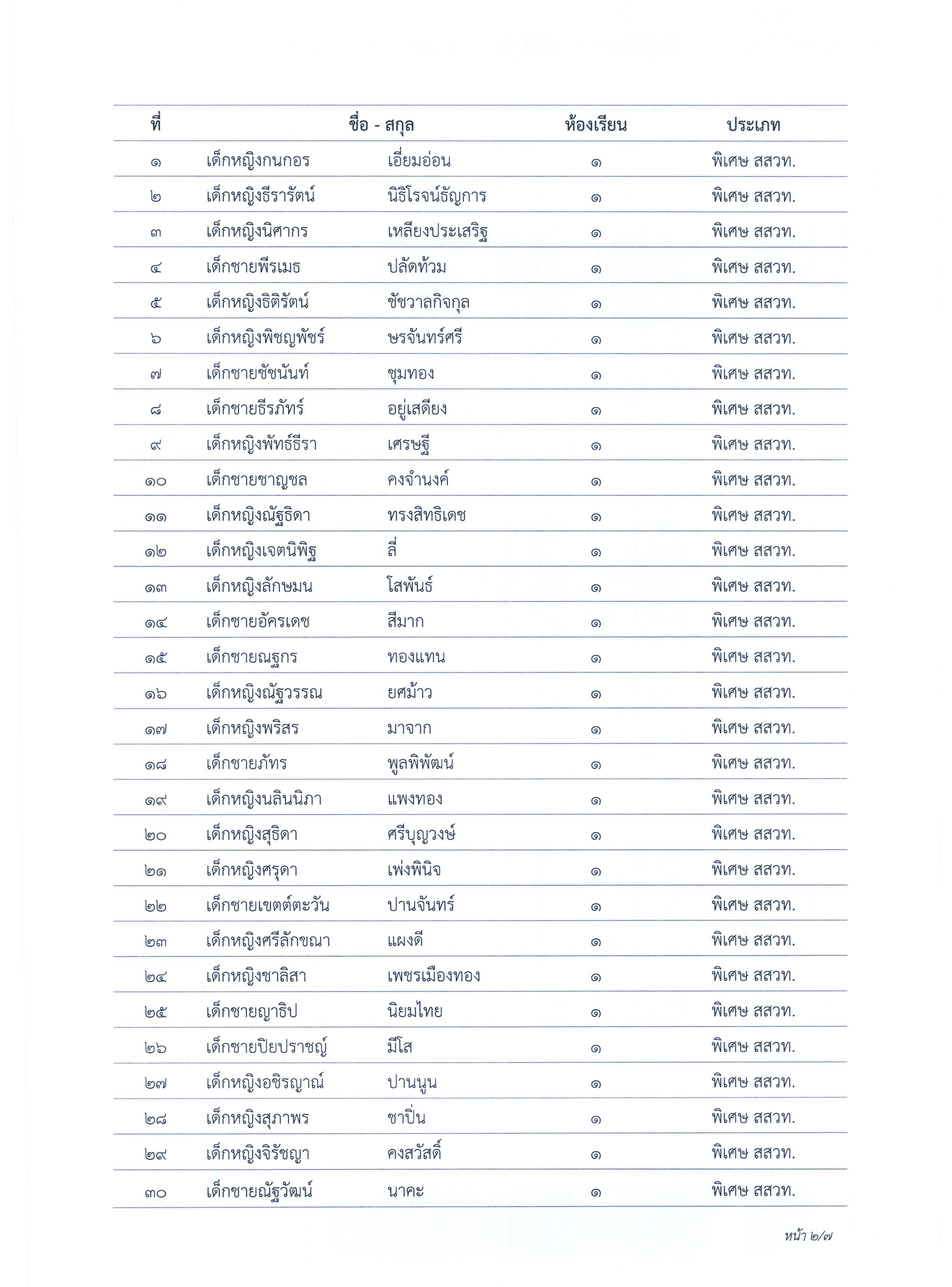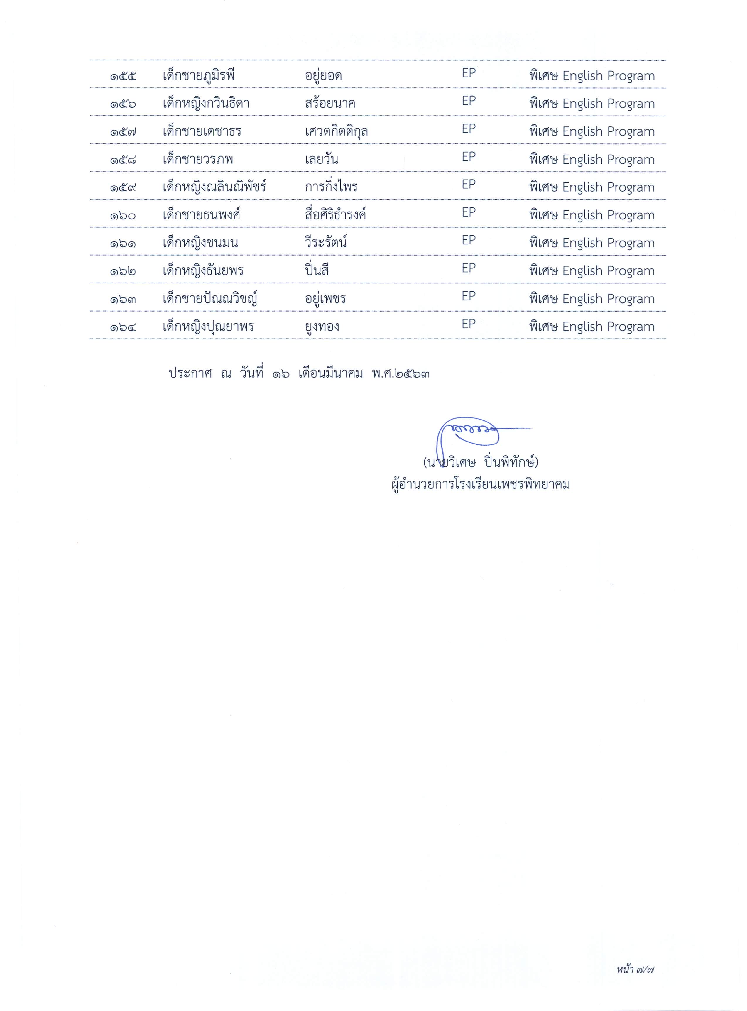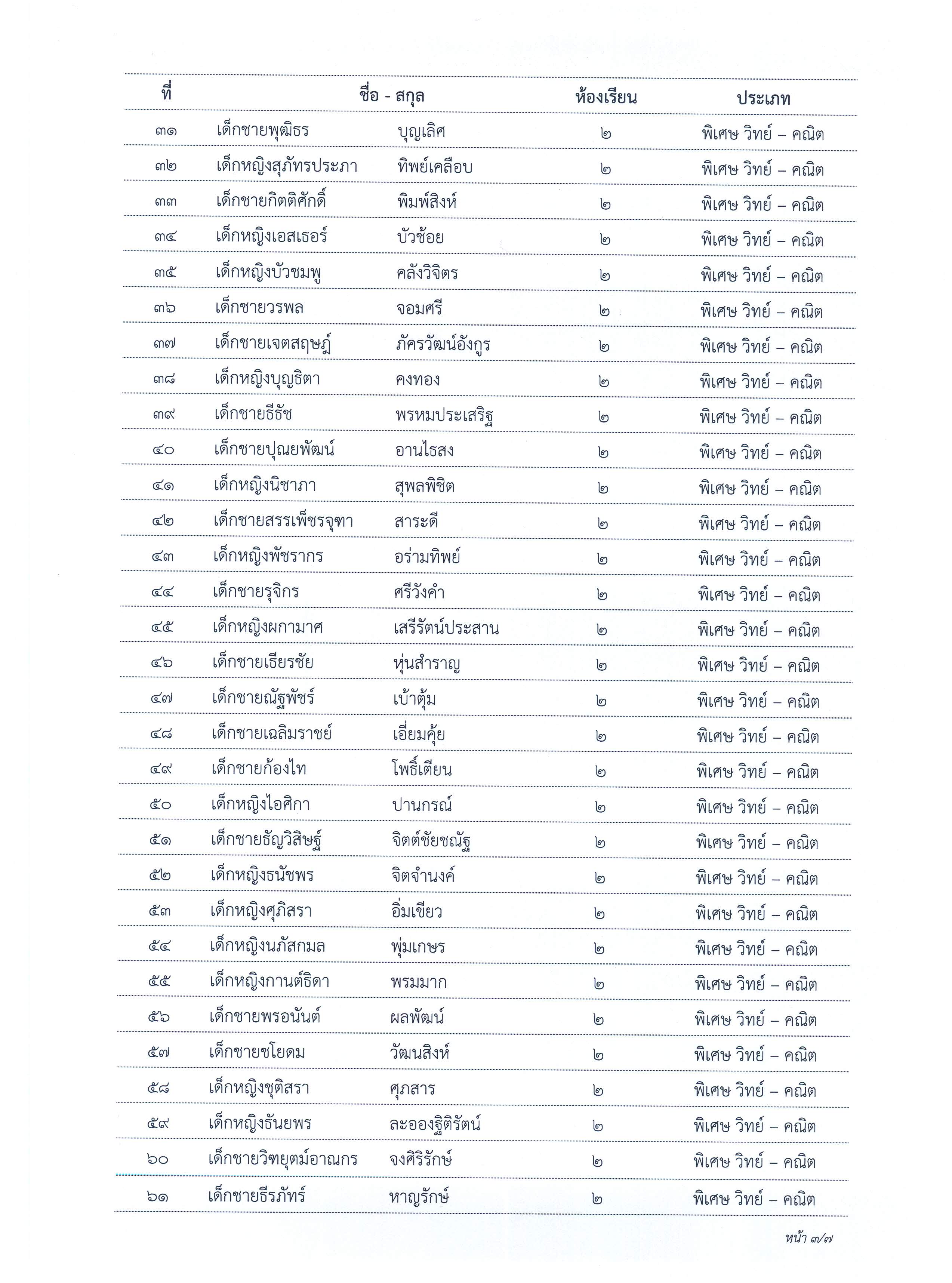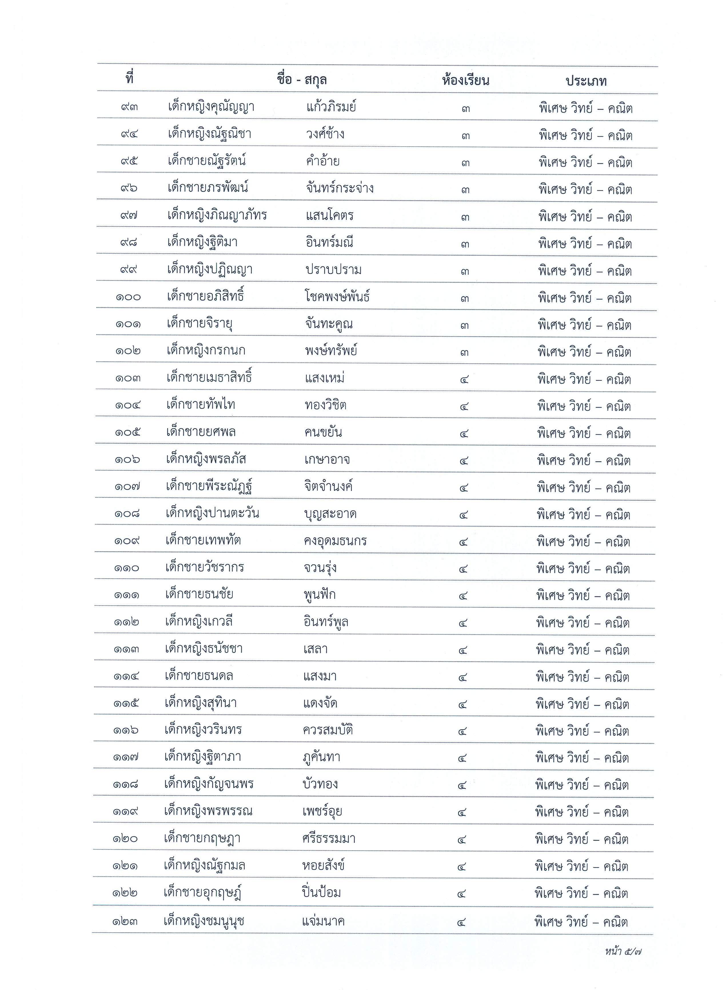 ประกาศผลการจัดชั้นเรียนนักเรียนชั้นมัธยมศึกษาปีที่ 1 ปีการศึกษา 2563 ประเภทห้องเรียนพิเศษ วิทย์-คณิต (สสวท.), วิทย์-คณิต และห้องเรียนพิเศษ English Progam (EP)