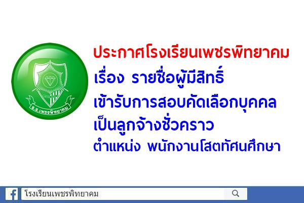 ประกาศโรงเรียนเพชรพิทยาคม เรื่อง รายชื่อผู้มีสิทธิ์เข้ารับการสอบคัดเลือกบุคคลเป็นลูกจ้างชั่วคราว ตำแหน่ง พนักงานโสตทัศนศึกษา