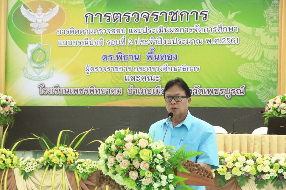 โรงเรียนเพชรพิทยาคม ต้อนรับ ดร.พิธาน พื้นทอง ผู้ตรวจราชการ กระทรวงศึกษาธิการและคณะ ในการตรวจราชการ การติดตามตรวจสอบ และประมินผลการจัดการศึกษา แบบกรณีปกติ รอบที่ 2 ประจำปีงบประมาณ พ.ศ.2561