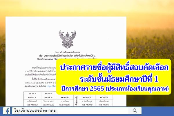 ประกาศโรงเรียนเพชรพิทยาคม เรื่อง ประกาศรายชื่อผู้มีสิทธิ์สอบคัดเลือก ระดับชั้นมัธยมศึกษาปีที่ 1 ปีการศึกษา 2565 (ประเภทห้องเรียนคุณภาพ) วัน เวลาและสถานที่สอบ