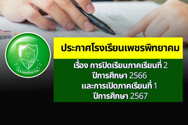 ประกาศโรงเรียนเพชรพิทยาคม เรื่อง การปิดเรียนภาคเรียนที่ 2 ปีการศึกษา 2566 และการเปิดภาคเรียนที่ 1 ปีการศึกษา 2567