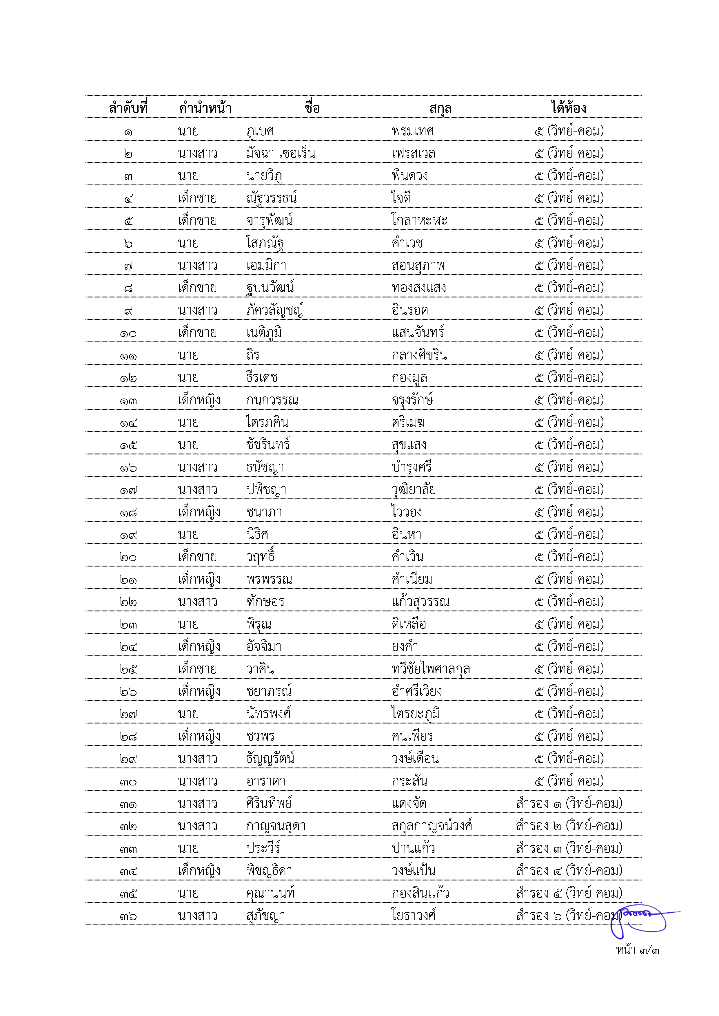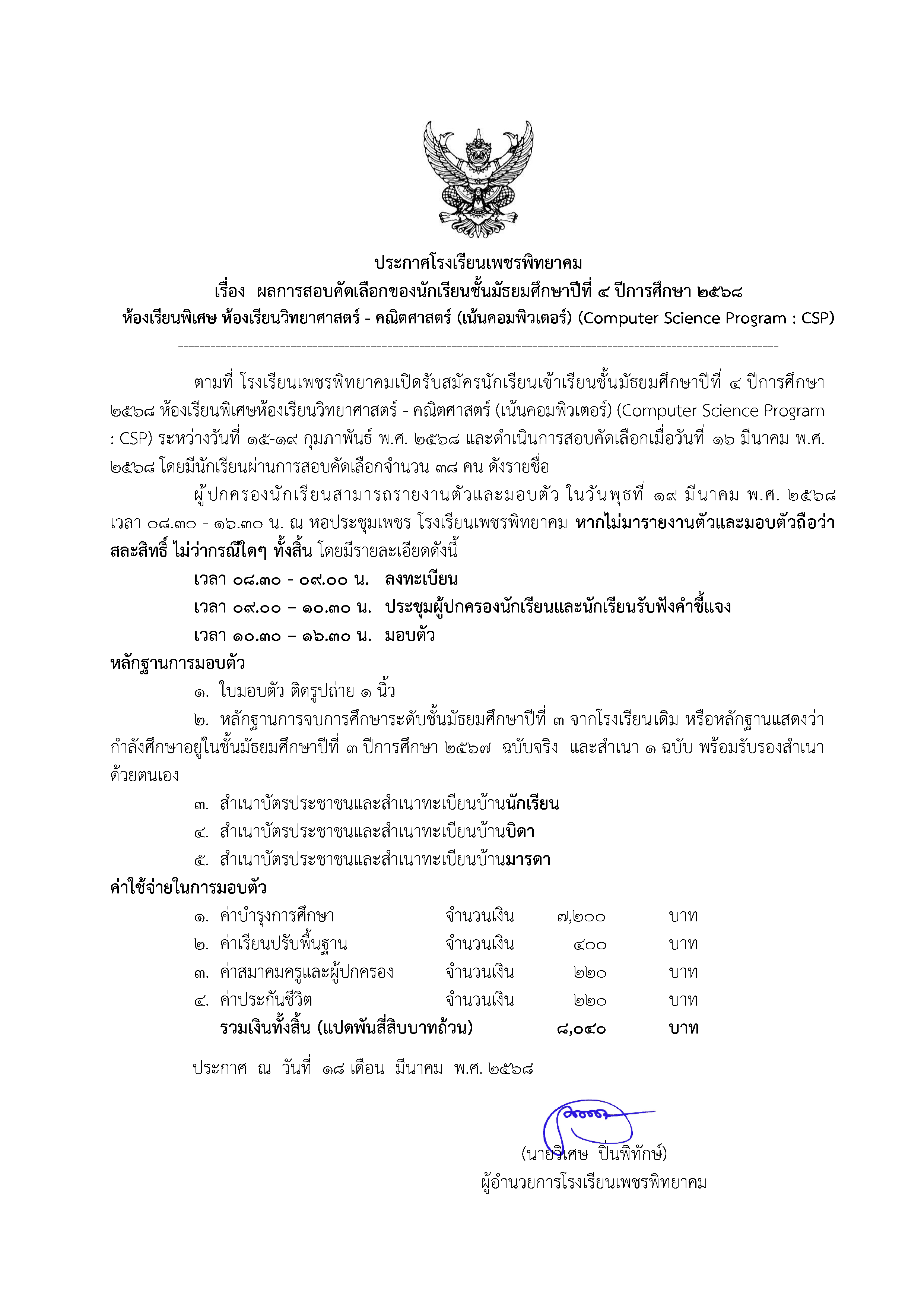 ประกาศผลการสอบคัดเลือกของนักเรียนชั้นมัธยมศึกษาปีที่ 4 ปีการศึกษา 2568 ห้องเรียนพิเศษ ห้องเรียนวิทยาศาสตร์ - คณิตศาสตร์ (เน้นคอมพิวเตอร์) (Computer Science Program : CSP)