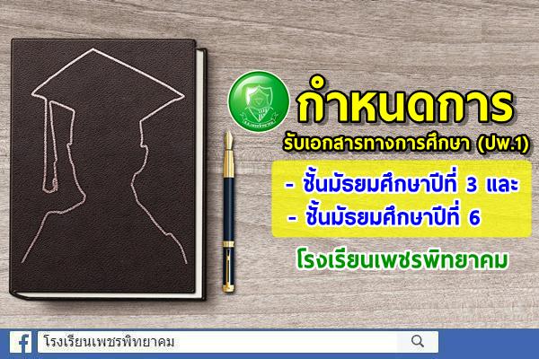 กำหนดการรับเอกสารทางการศึกษา (ปพ.1) ชั้นมัธยมศึกษาปีที่ 3 และ 6 โรงเรียนเพชรพิทยาคม