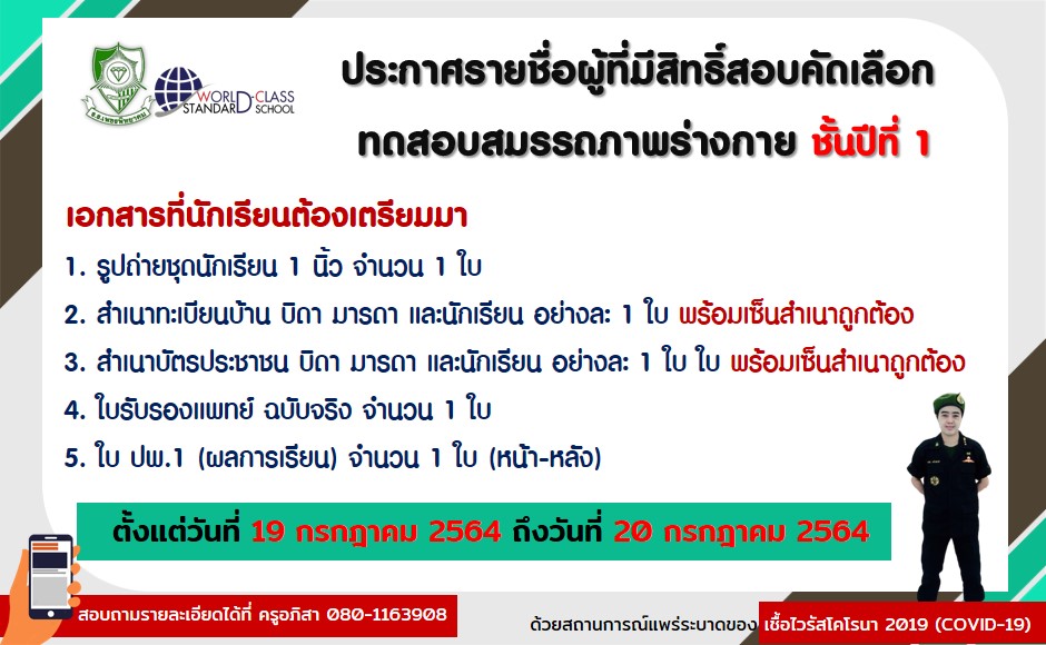 รายชื่อผู้มีสิทธิ์สอบคัดเลือกเข้าเป็นนักศึกษาวิชาทหาร ชั้นปีที่ 1 ปีการศึกษา 2564