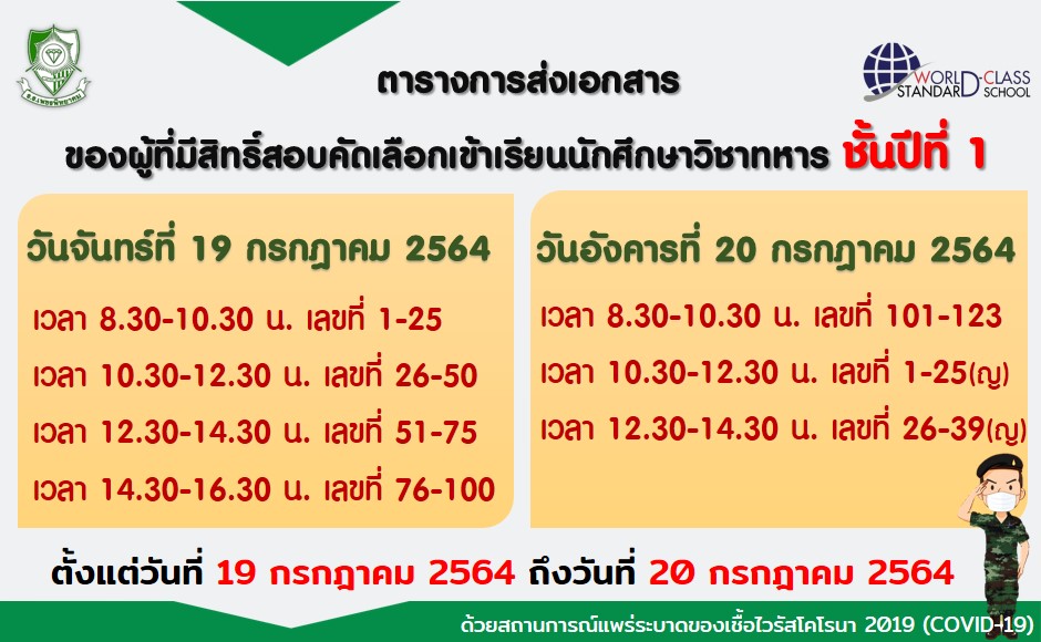 ประชาสัมพันธ์การส่งเอกสารการสมัคร นักศึกษาวิชาทหาร ชั้นปีที่ 1 ปีการศึกษา 2564 ในวันที่ 19-20 กรกฎาคม 2564