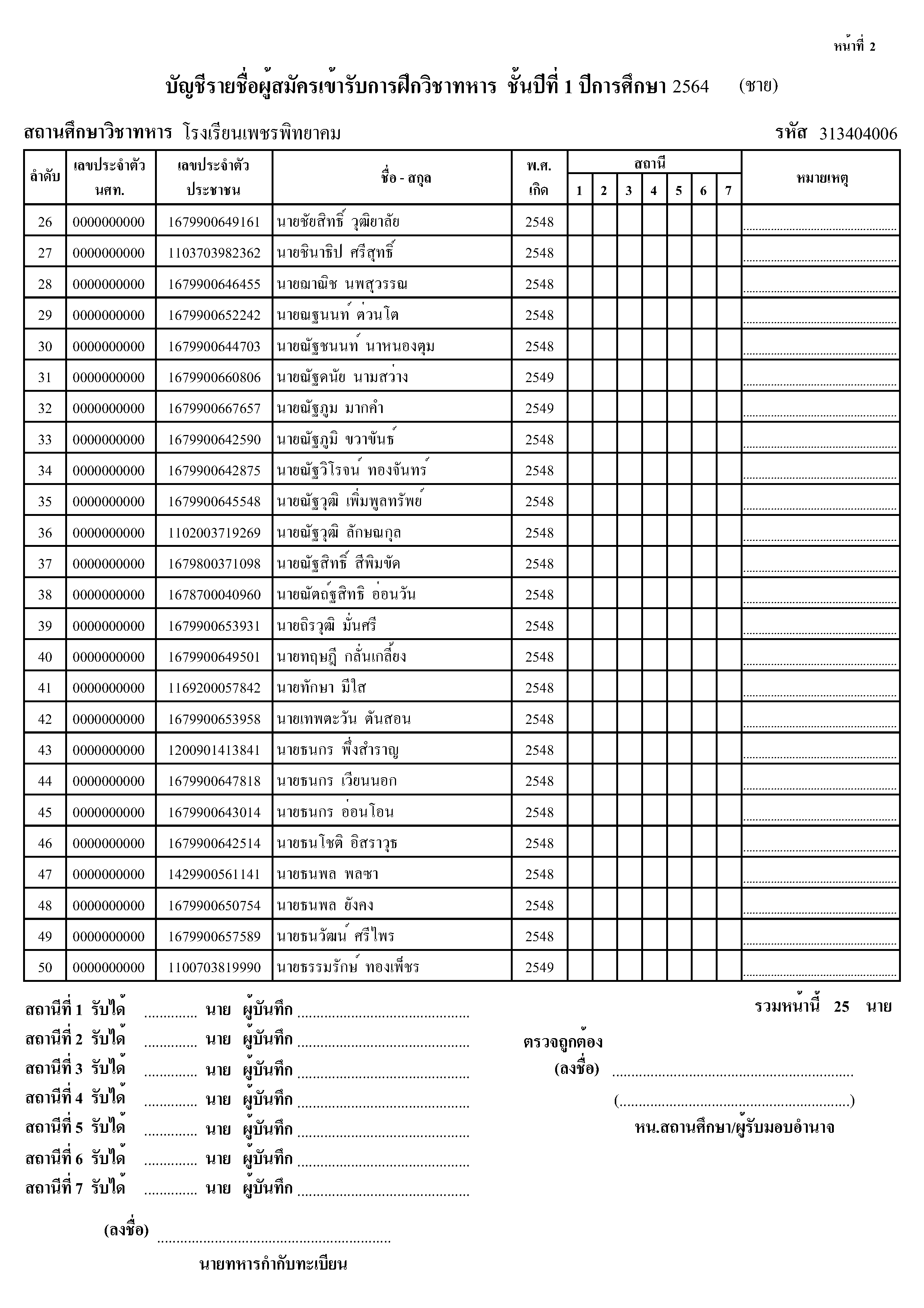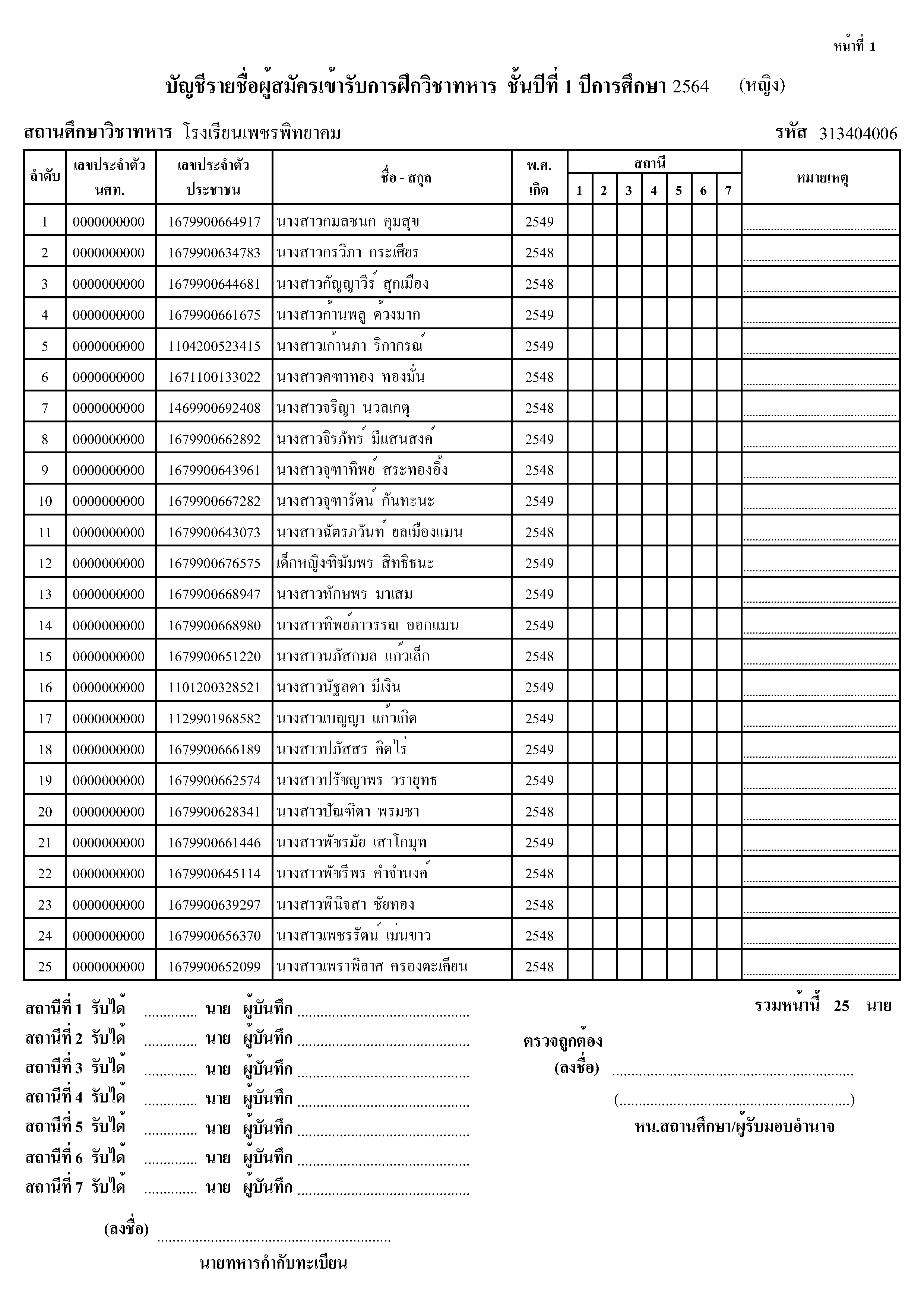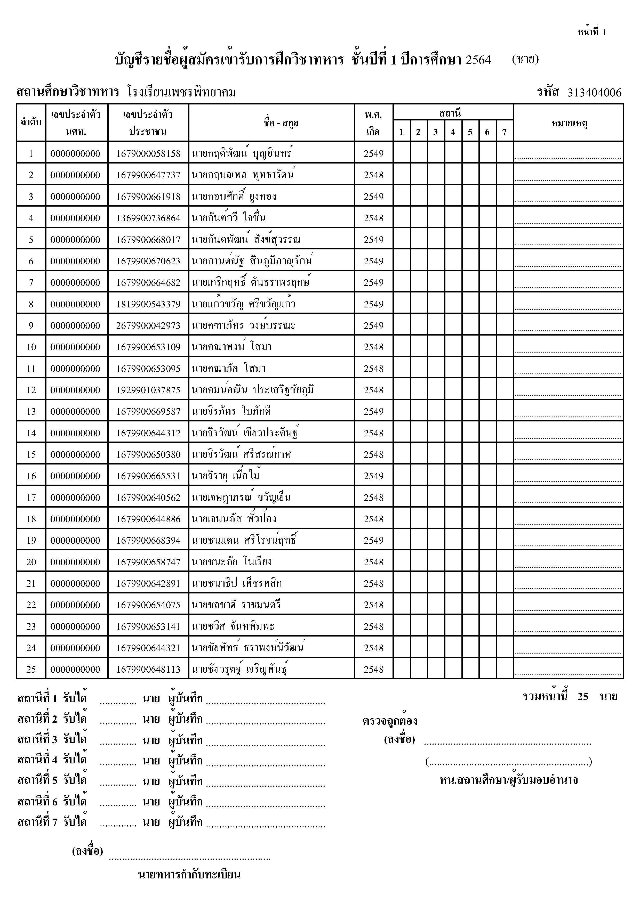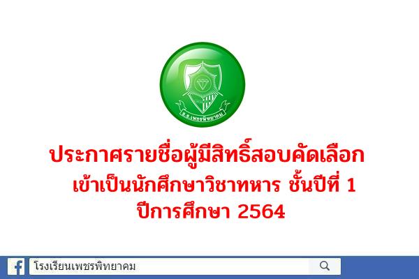ประกาศรายชื่อผู้มีสิทธิ์สอบคัดเลือกเข้าเป็นนักศึกษาวิชาทหาร ชั้นปีที่ 1 ปีการศึกษา 2564