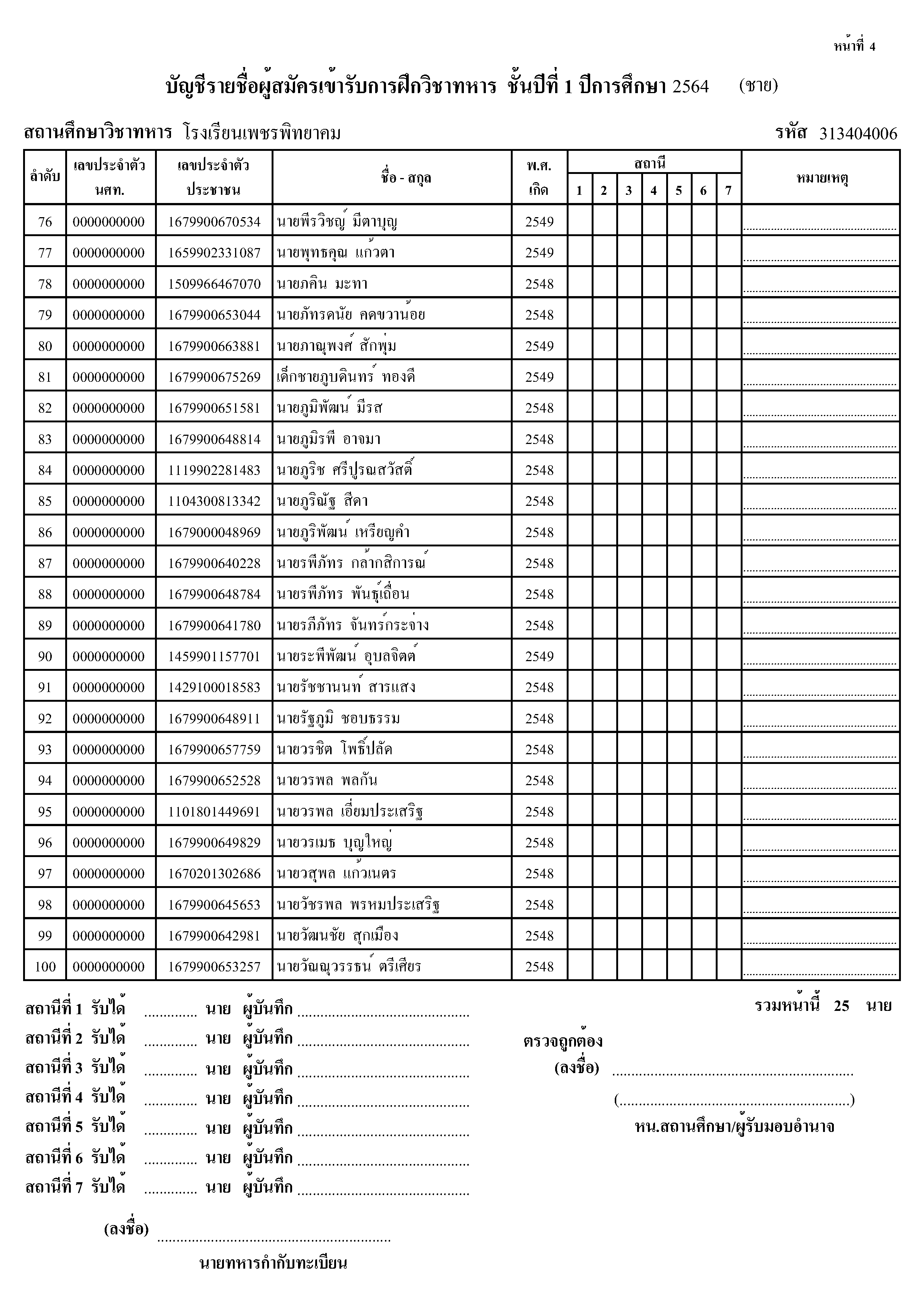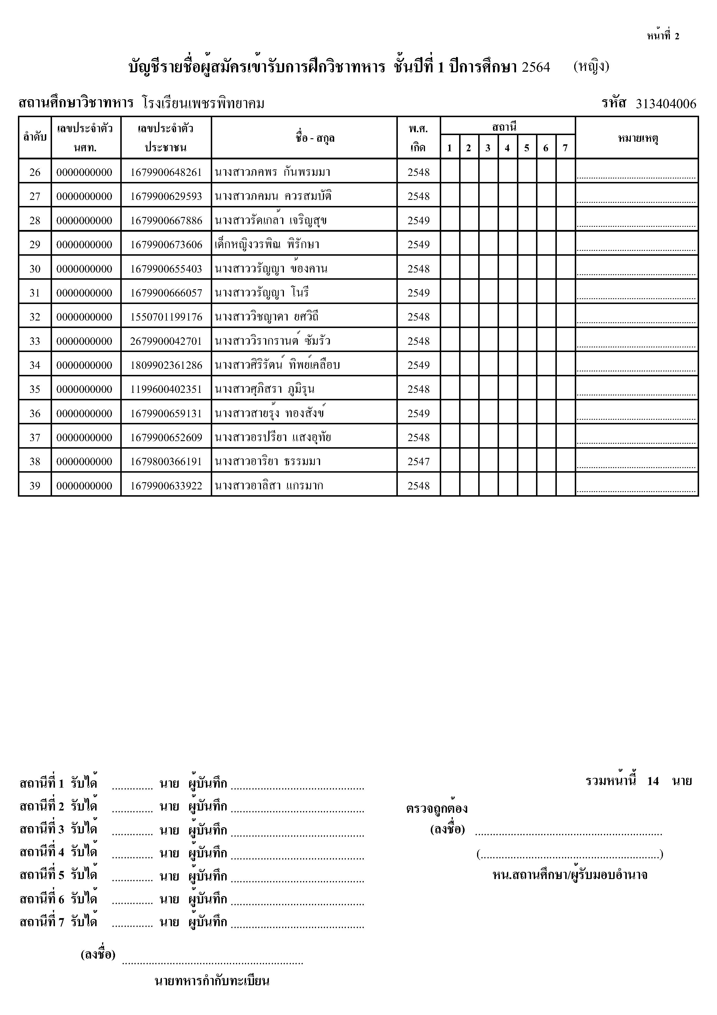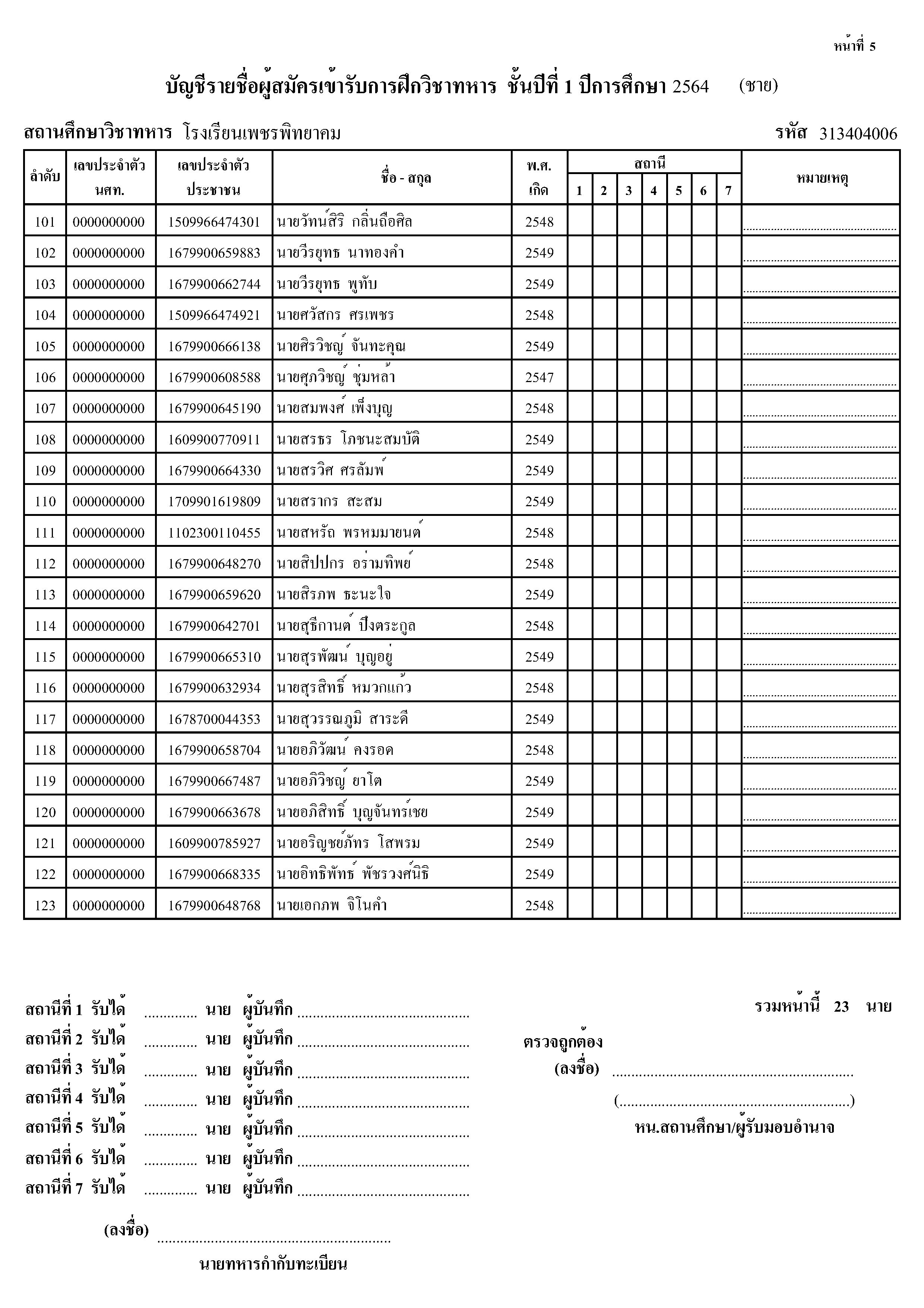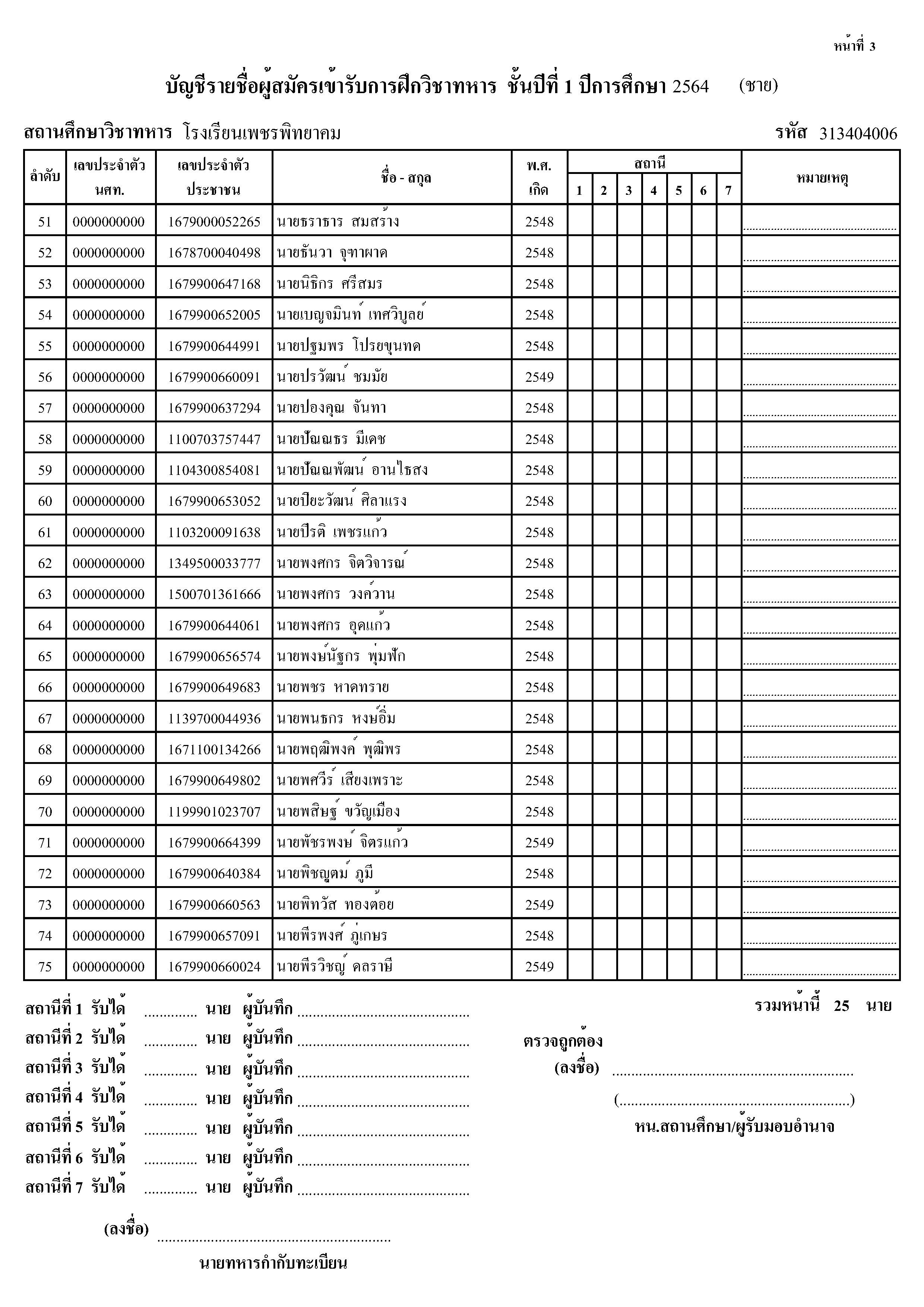 ประกาศรายชื่อผู้มีสิทธิ์สอบคัดเลือกเข้าเป็นนักศึกษาวิชาทหาร ชั้นปีที่ 1 ปีการศึกษา 2564