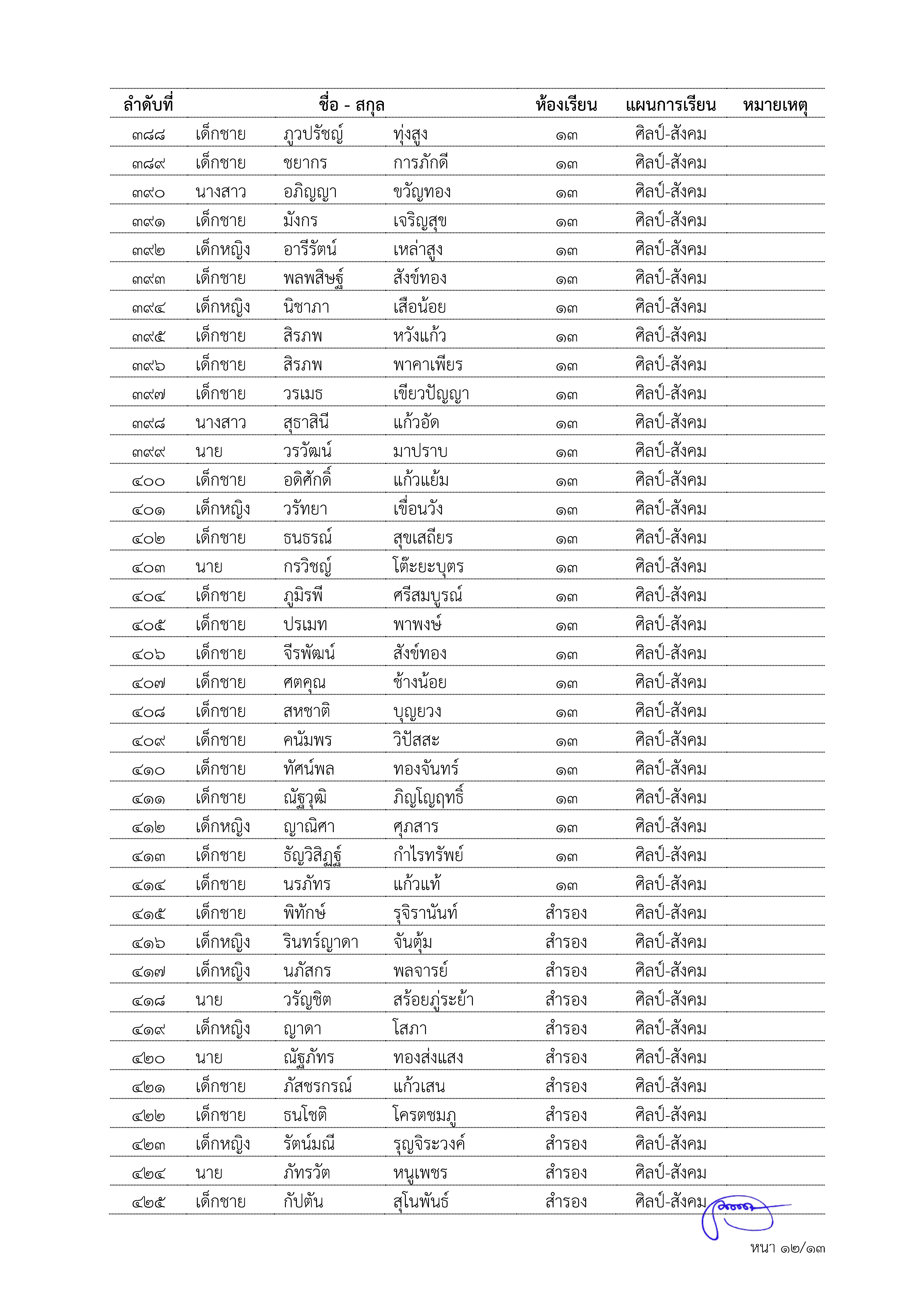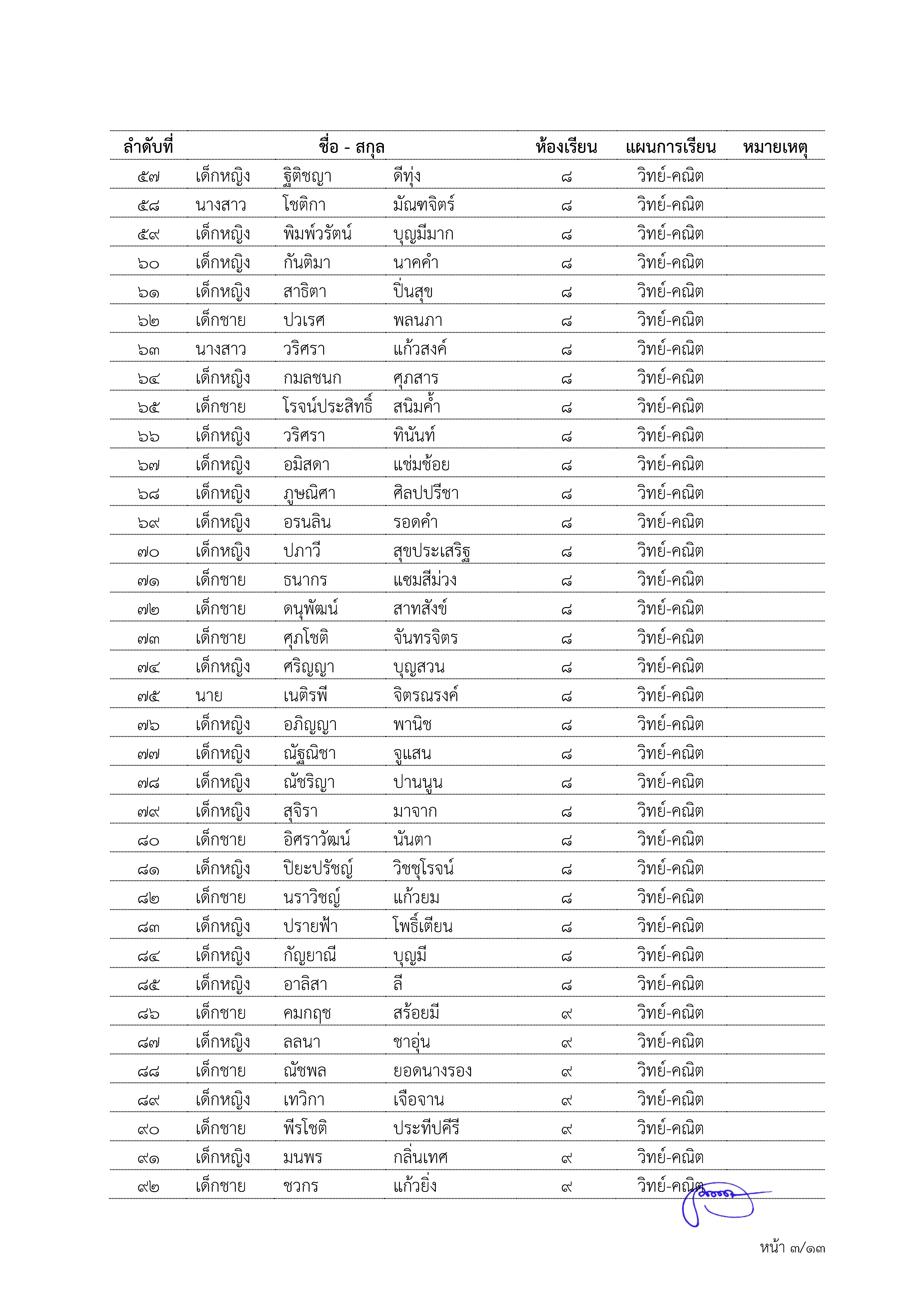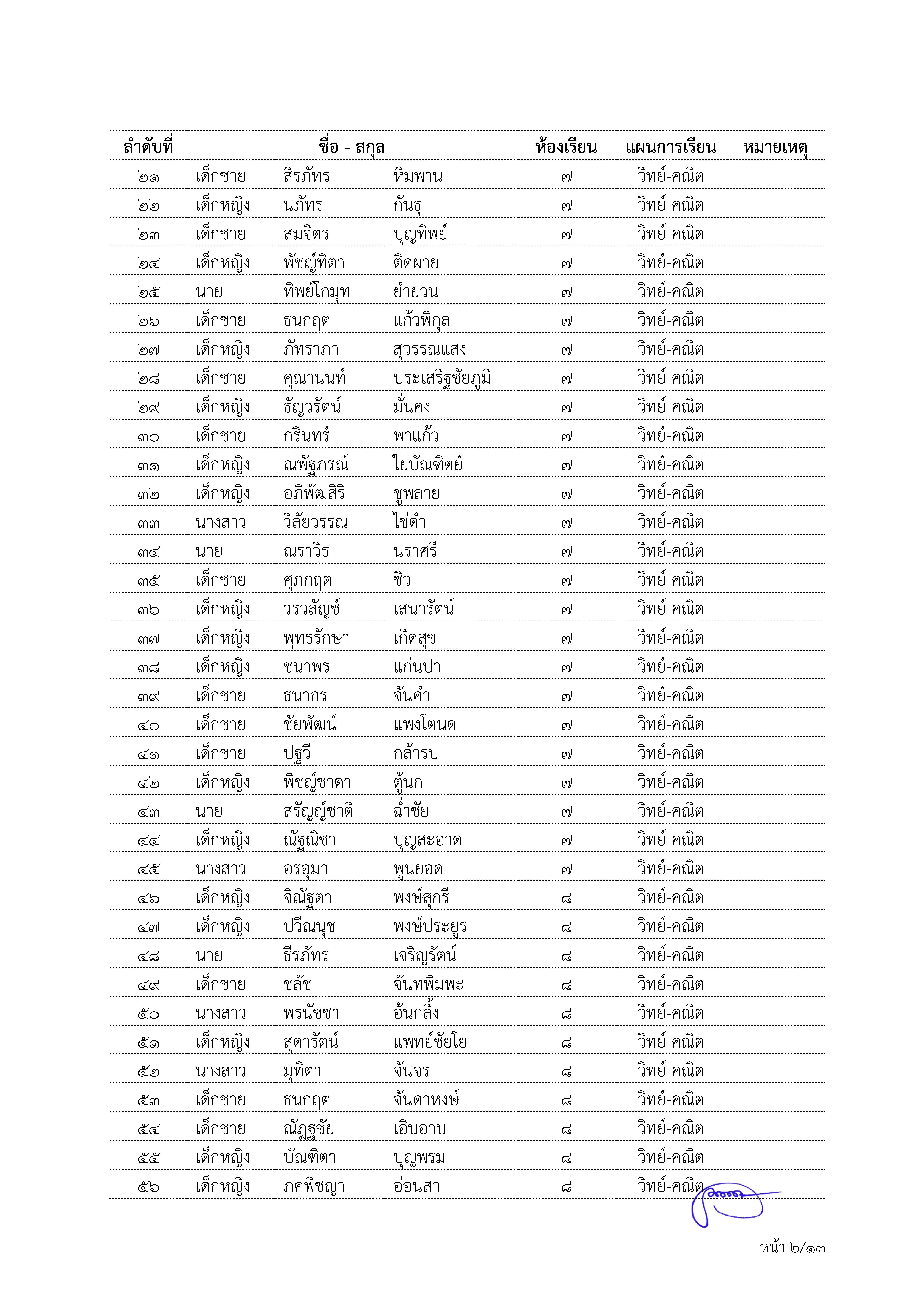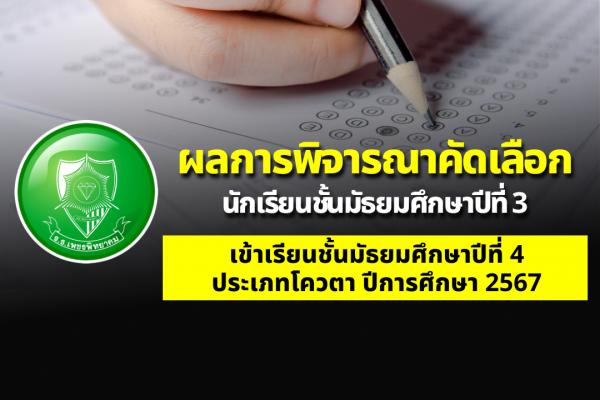 ผลการพิจารณาคัดเลือกนักเรียนชั้นมัธยมศึกษาปีที่ ๓ เข้าเรียนชั้นมัธยมศึกษาปีที่ ๔ ประเภทโควตา ปีการศึกษา ๒๕๖๗