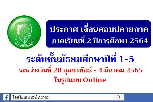 ประกาศ เลื่อนสอบปลายภาค ภาคเรียนที่ 2 ปีการศึกษา 2564 ระดับชั้นมัธยมศึกษาปีที่ 1-5 ระหว่างวันที่ 28 กุมภาพันธ์ - 4 มีนาคม 2565 ในรูปแบบ Online