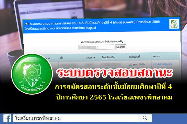 ระบบตรวจสอบสถานะการสมัครสอบ ระดับชั้นมัธยมศึกษาปีที่ 4 ปีการศึกษา 2565 โรงเรียนเพชรพิทยาคม อำเภอเมือง จังหวัดเพชรบูรณ์