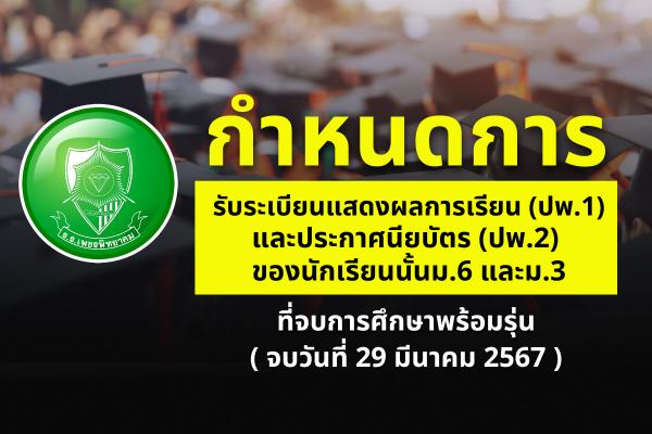 ประกาศแจ้ง กำหนดการรับระเบียนแสดงผลการเรียน(ปพ.1) และประกาศนียบัตร (ปพ.2) ของนักเรียนนั้นม.6 และม.3 ที่จบการศึกษาพร้อมรุ่น (จบวันที่ 29 มีนาคม 2567)