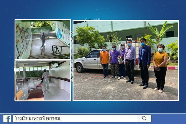 โรงเรียนเพชรพิทยาคม ฉีดพ่นยาฆ่าเชื้อป้องกันการแพร่ระบาดของเชื้อไวรัสโคโรนา 2019 (COVID-19) เพื่อเตรียมความพร้อมการสอบเข้าศึกษาต่อในระดับชั้นมัธยมศึกษาปีที่ 4 ปีการศึกษา 2564