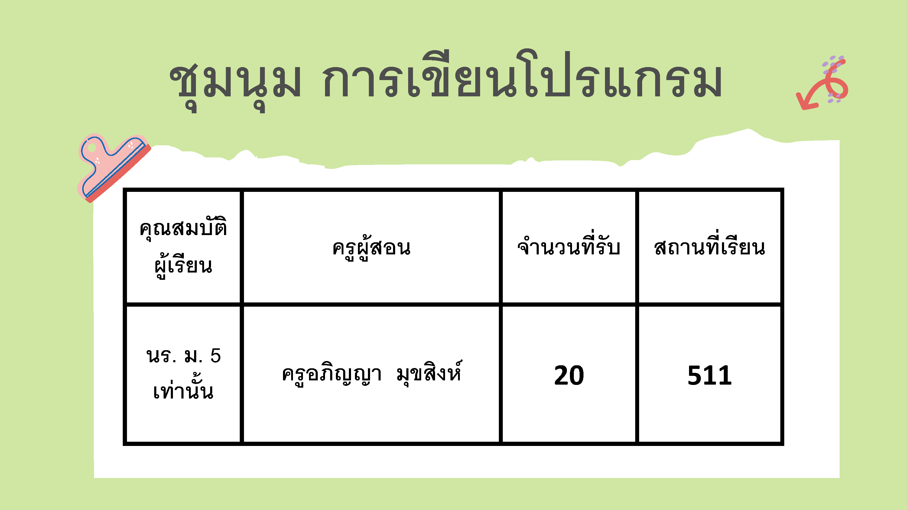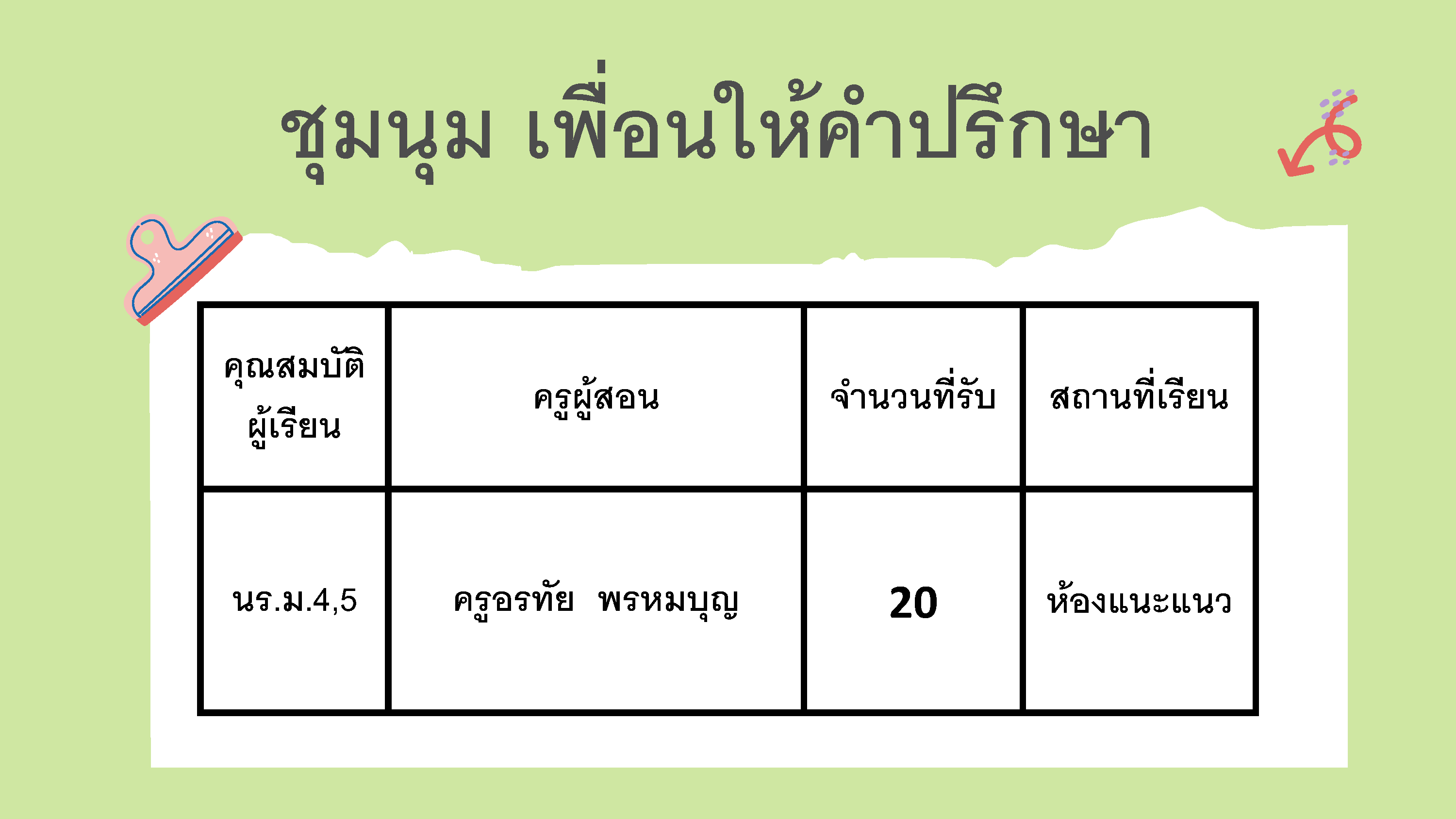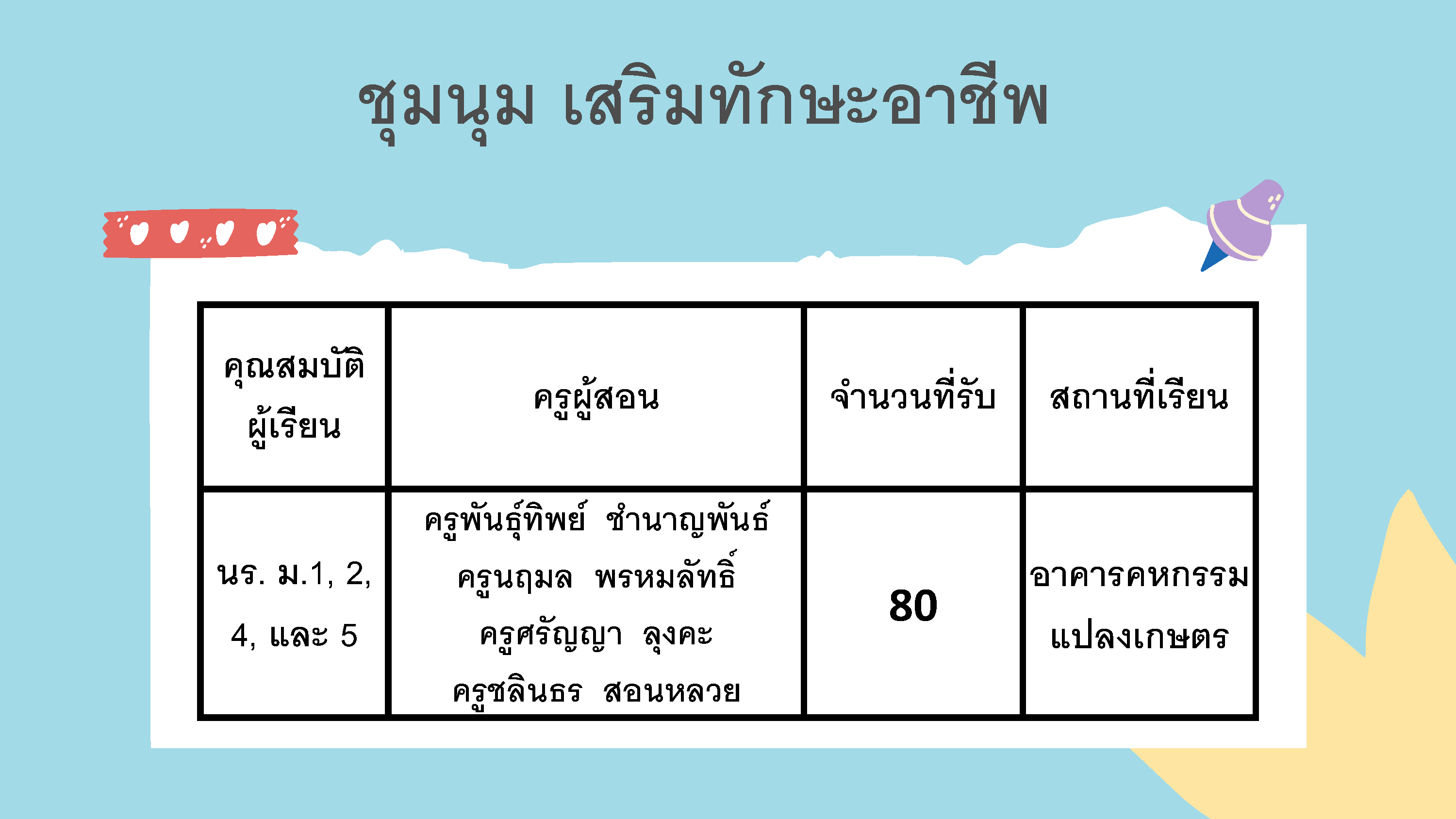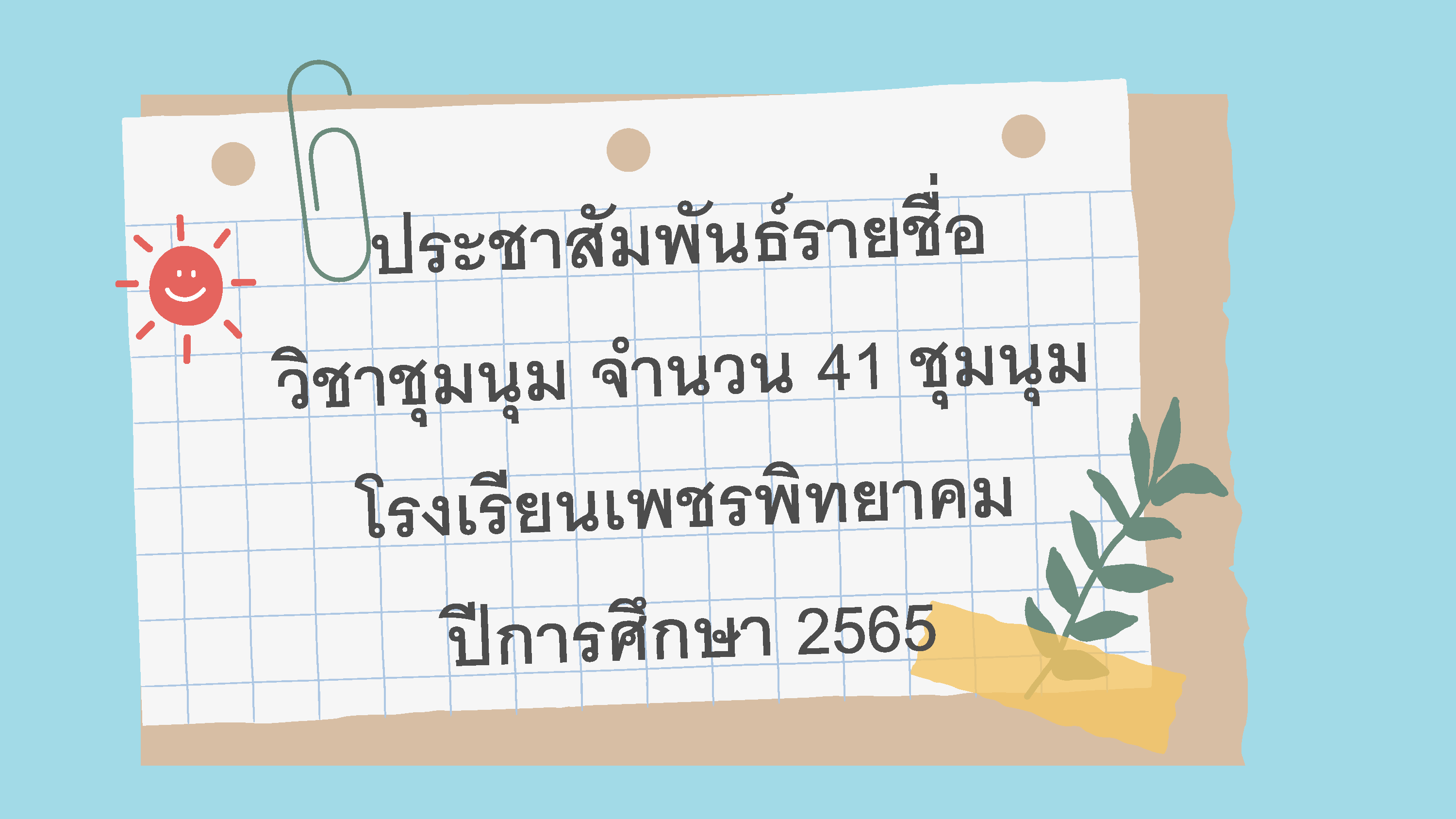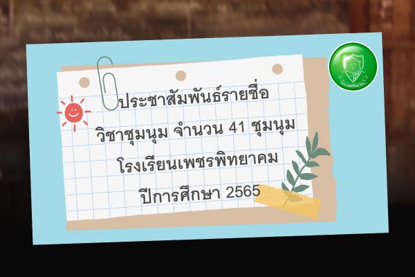 ประชาสัมพันธ์รายชื่อวิชาชุมนุม จำนวน 41 ชุมนุม โรงเรียนเพชรพิทยาคม ปีการศึกษา 2565
