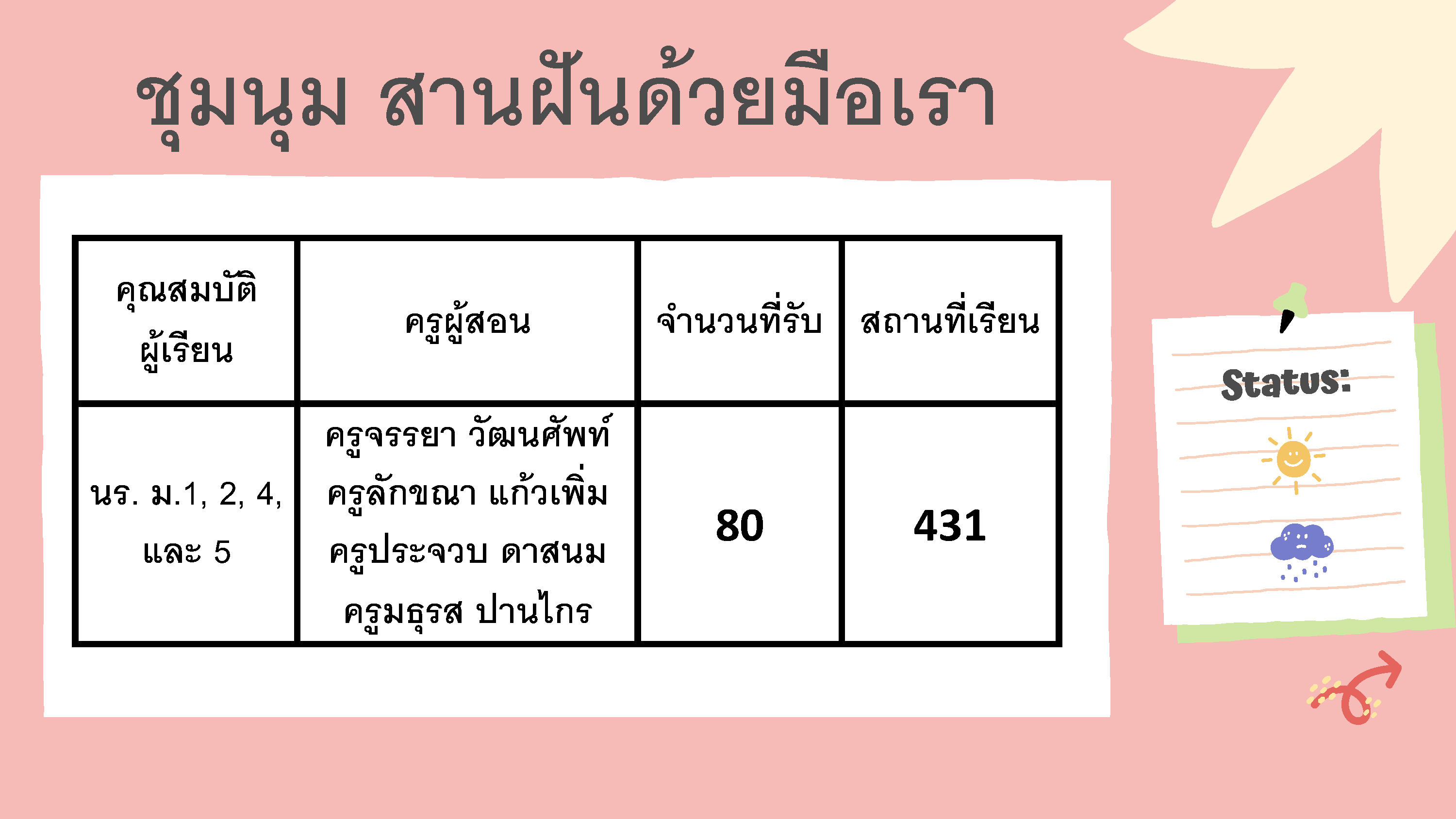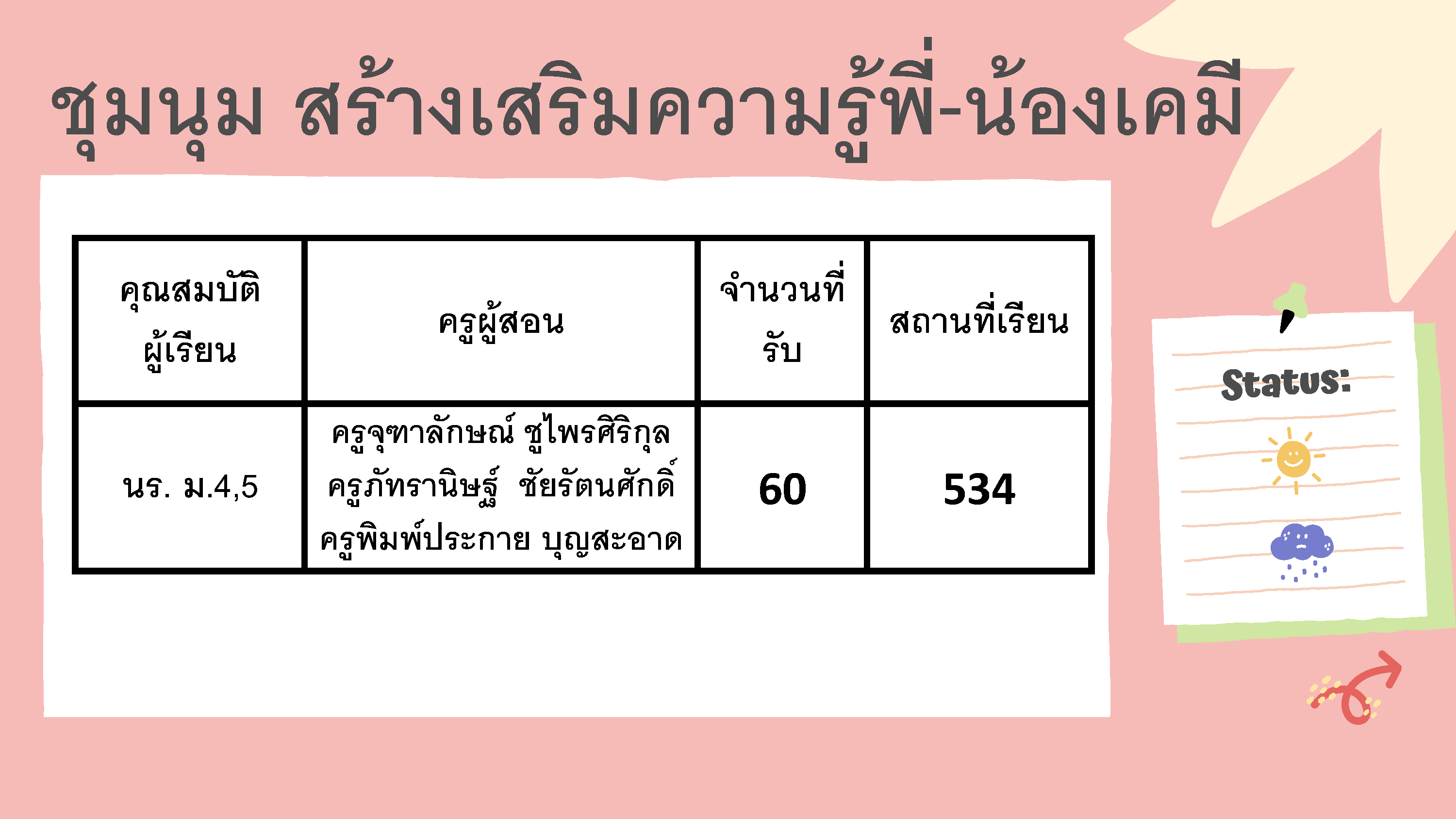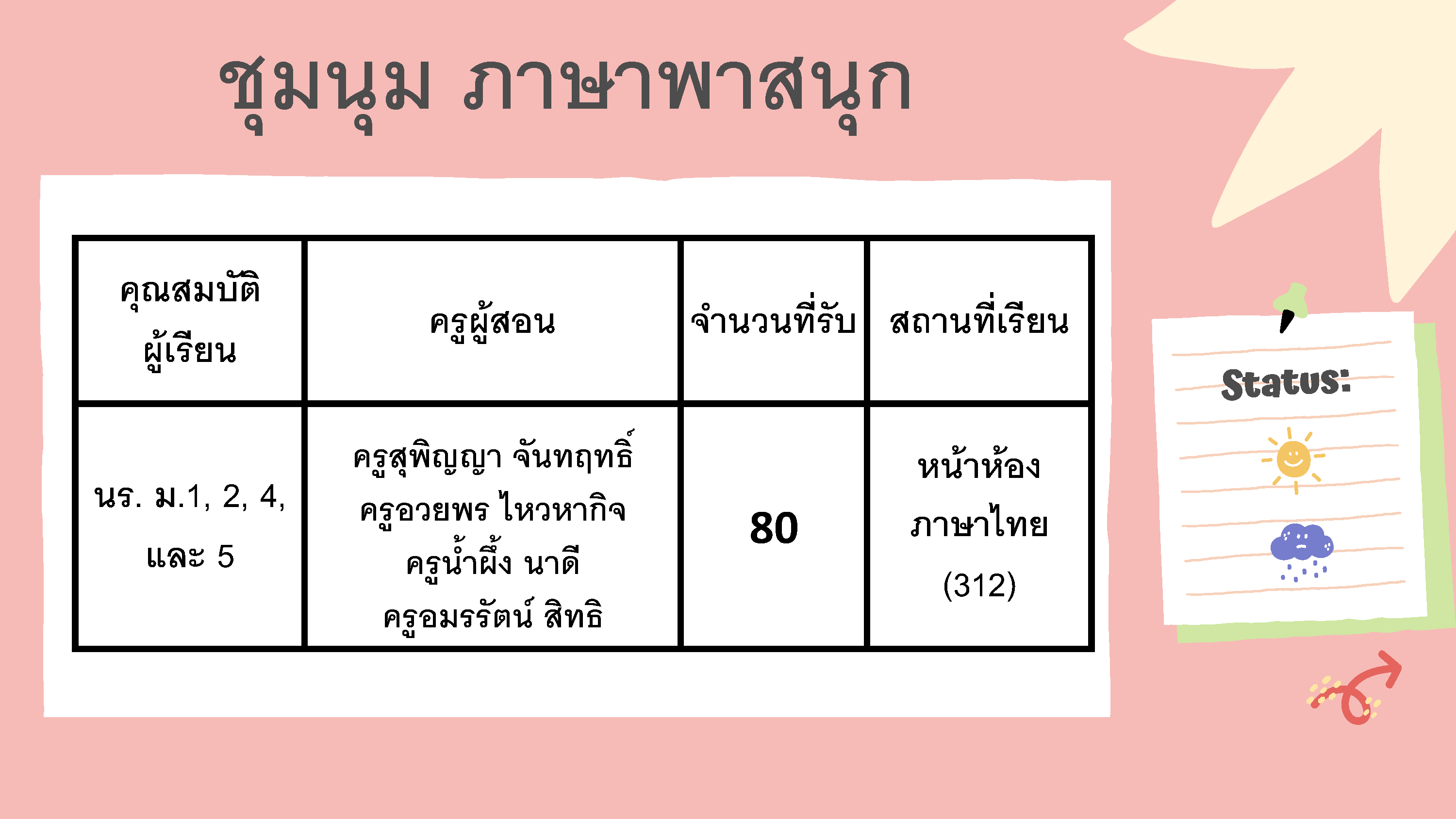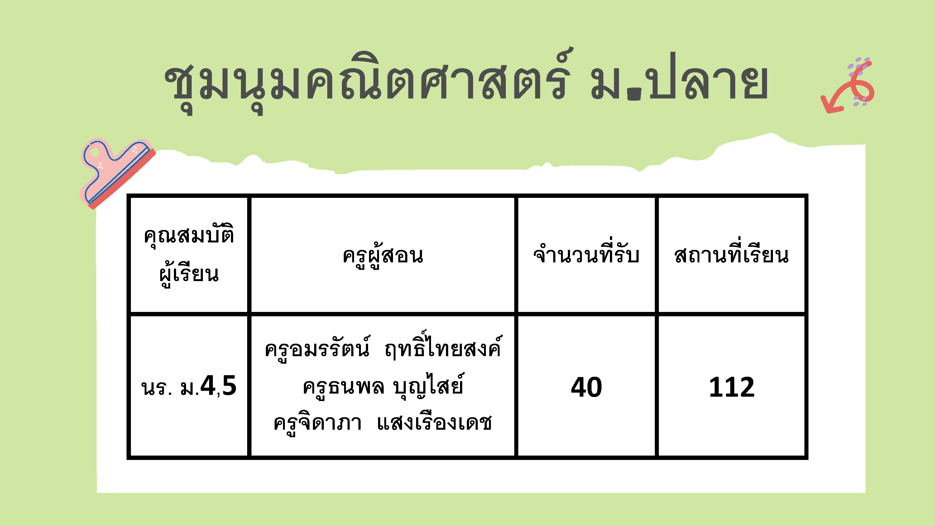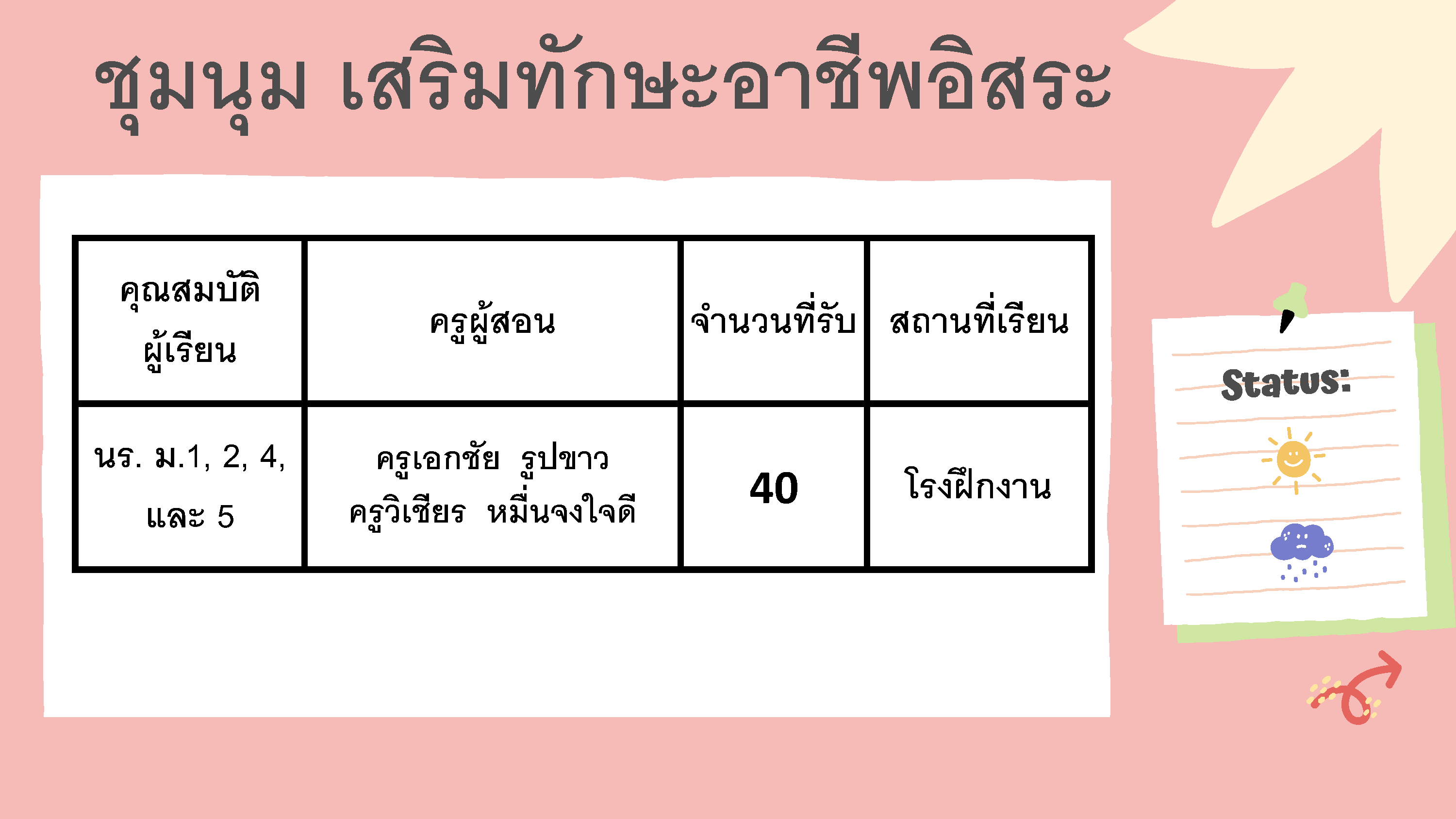 ประชาสัมพันธ์รายชื่อวิชาชุมนุม จำนวน 41 ชุมนุม โรงเรียนเพชรพิทยาคม ปีการศึกษา 2565