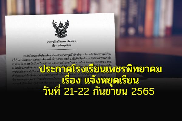 โรงเรียนเพชรพิทยาคม จึงขอประกาศแจ้งหยุดเรียน โดยมีรายละเอียด ดังนี้