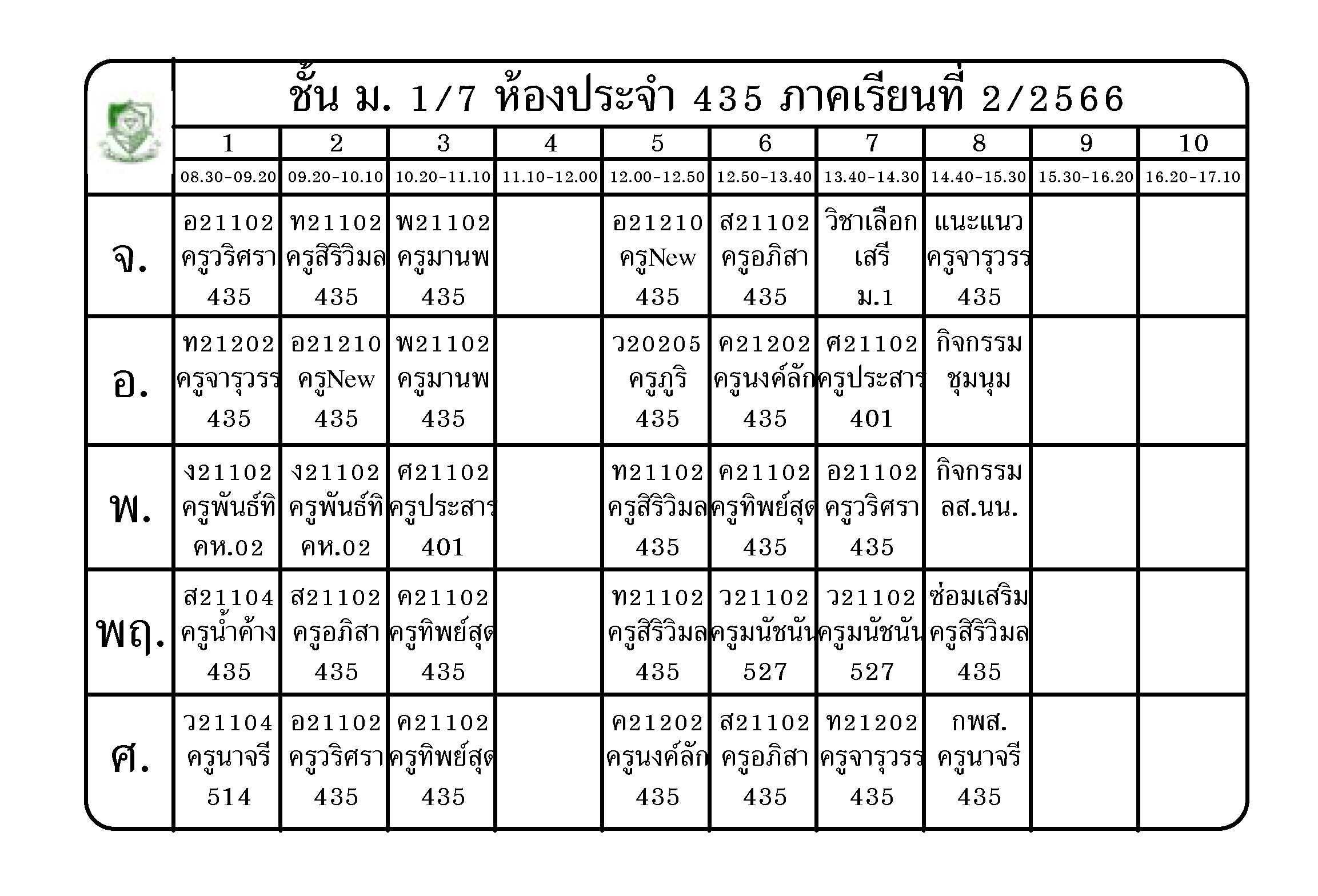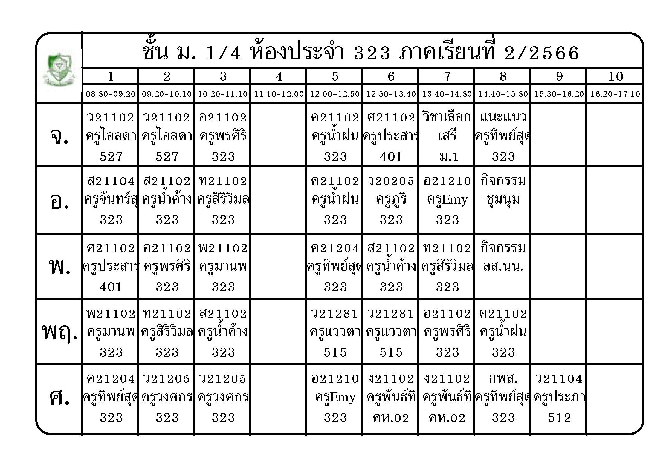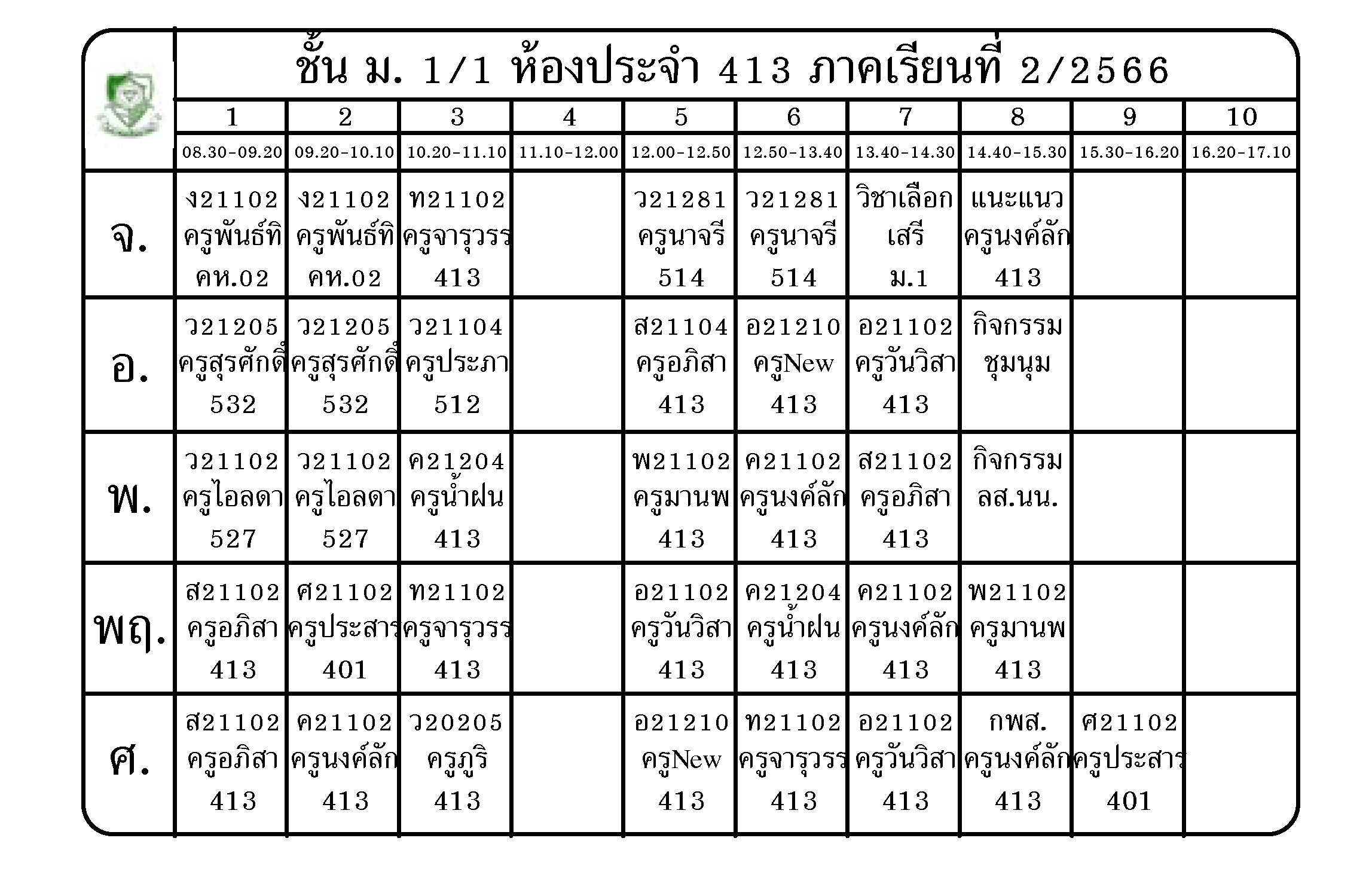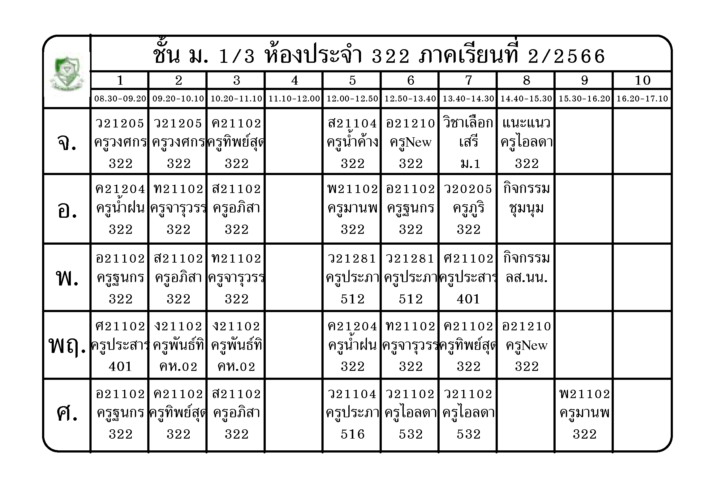 ตารางเรียน นักเรียนชั้น ม.1 ภาคเรียนที่ 2 ปีการศึกษา 2566
