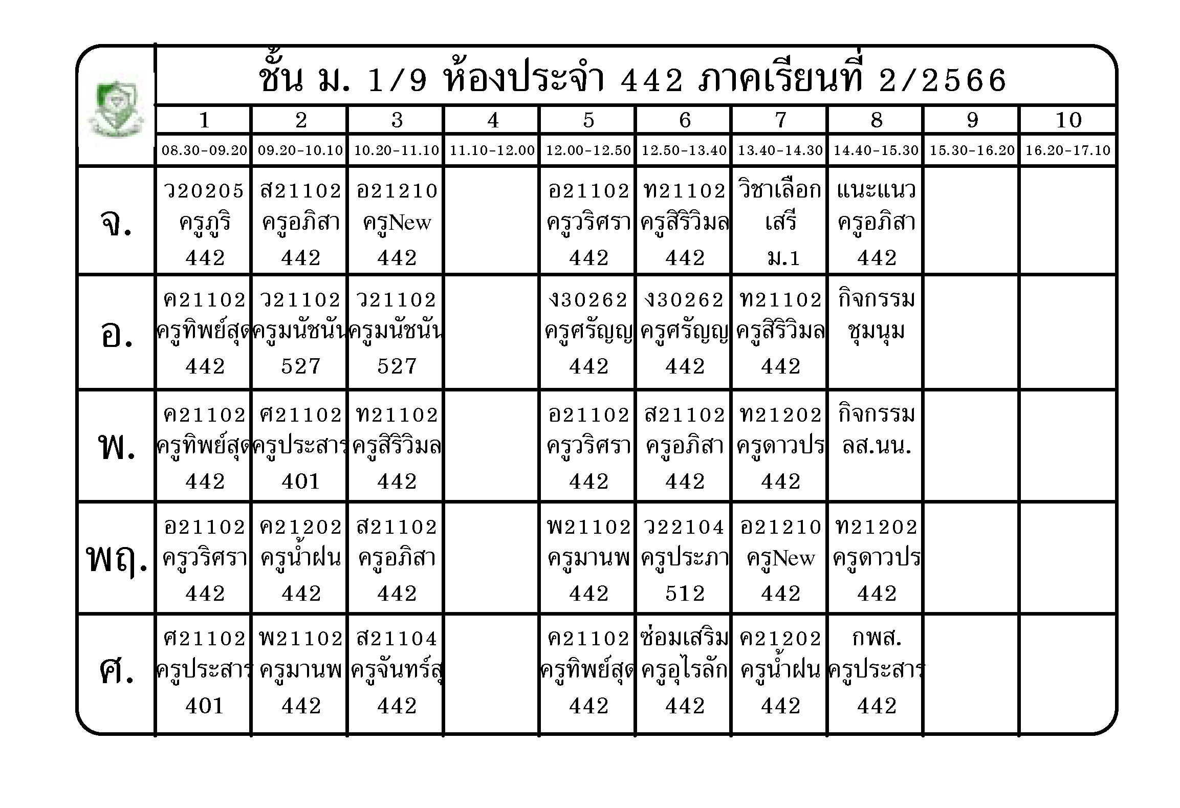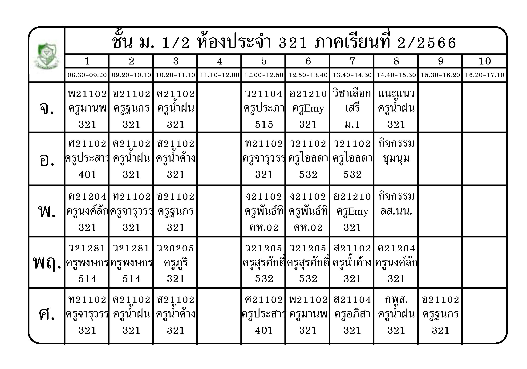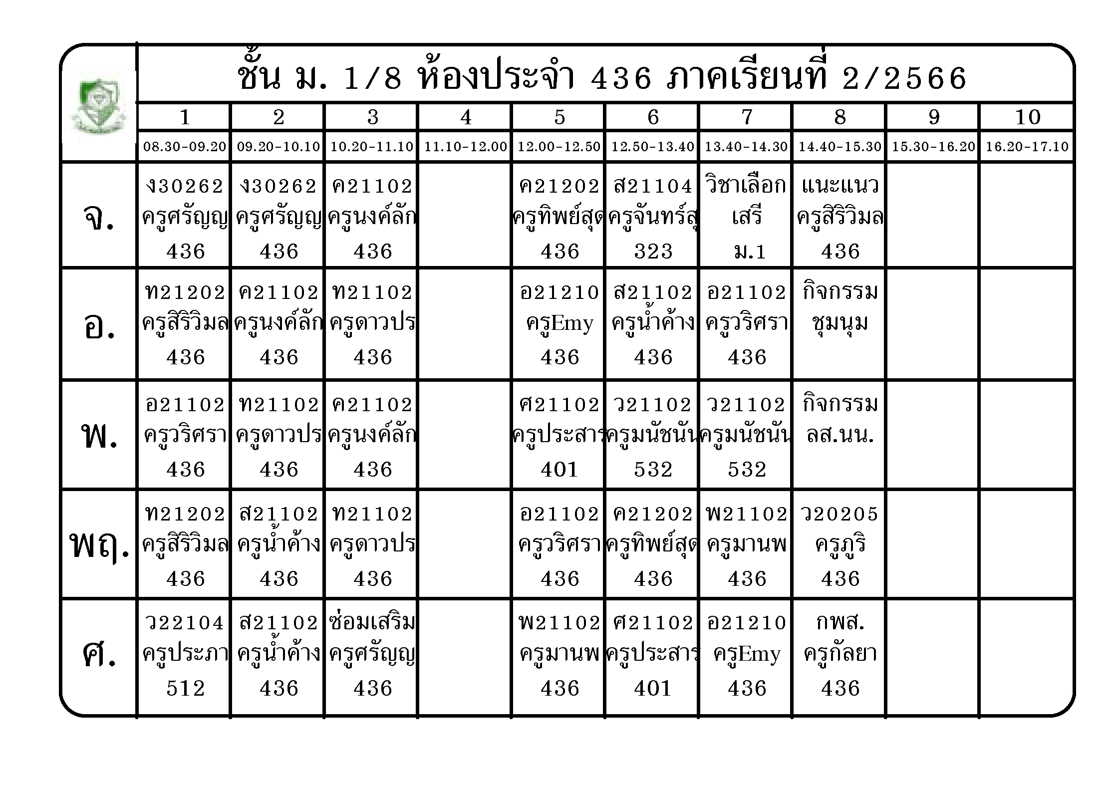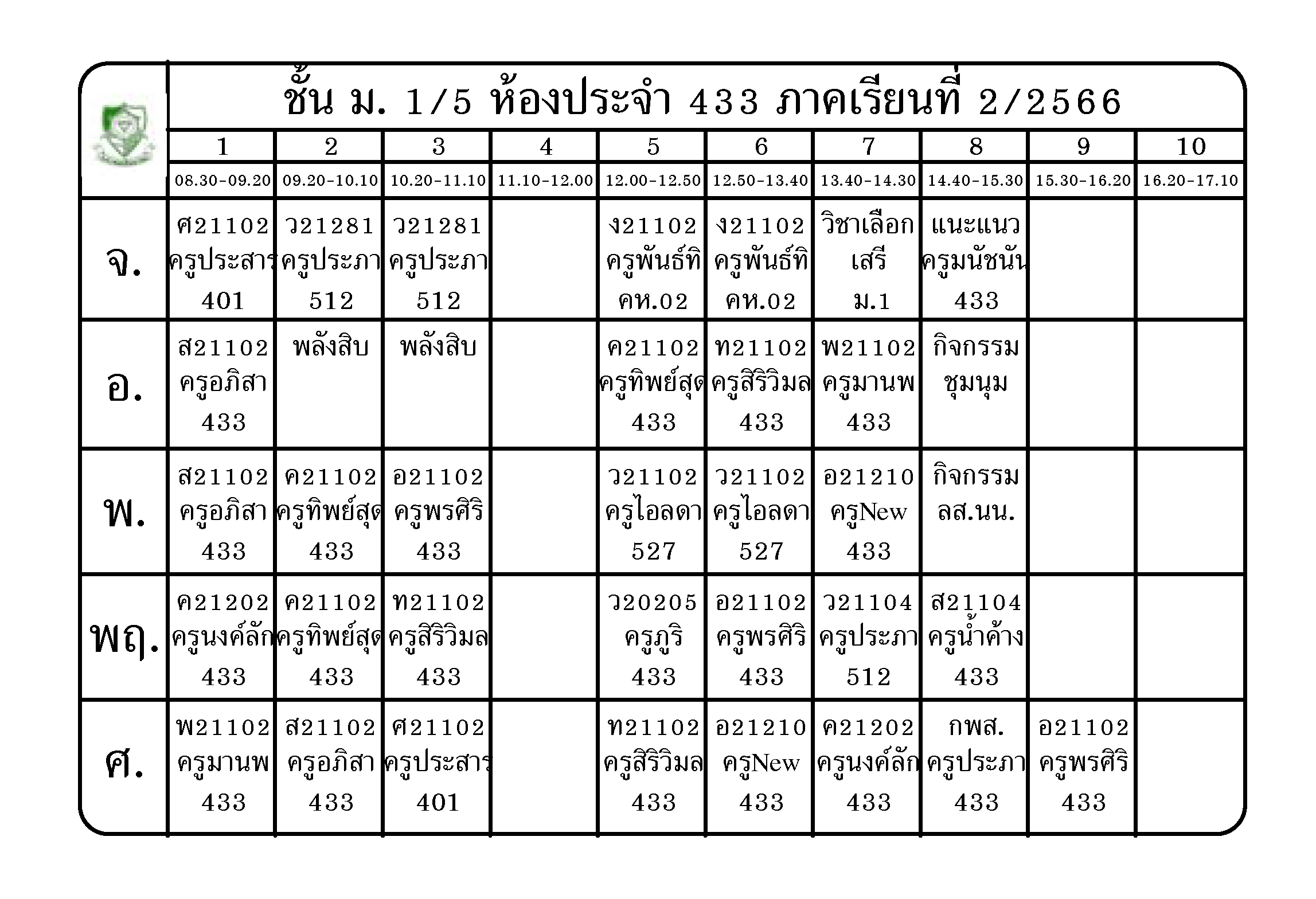 ตารางเรียน นักเรียนชั้น ม.1 ภาคเรียนที่ 2 ปีการศึกษา 2566