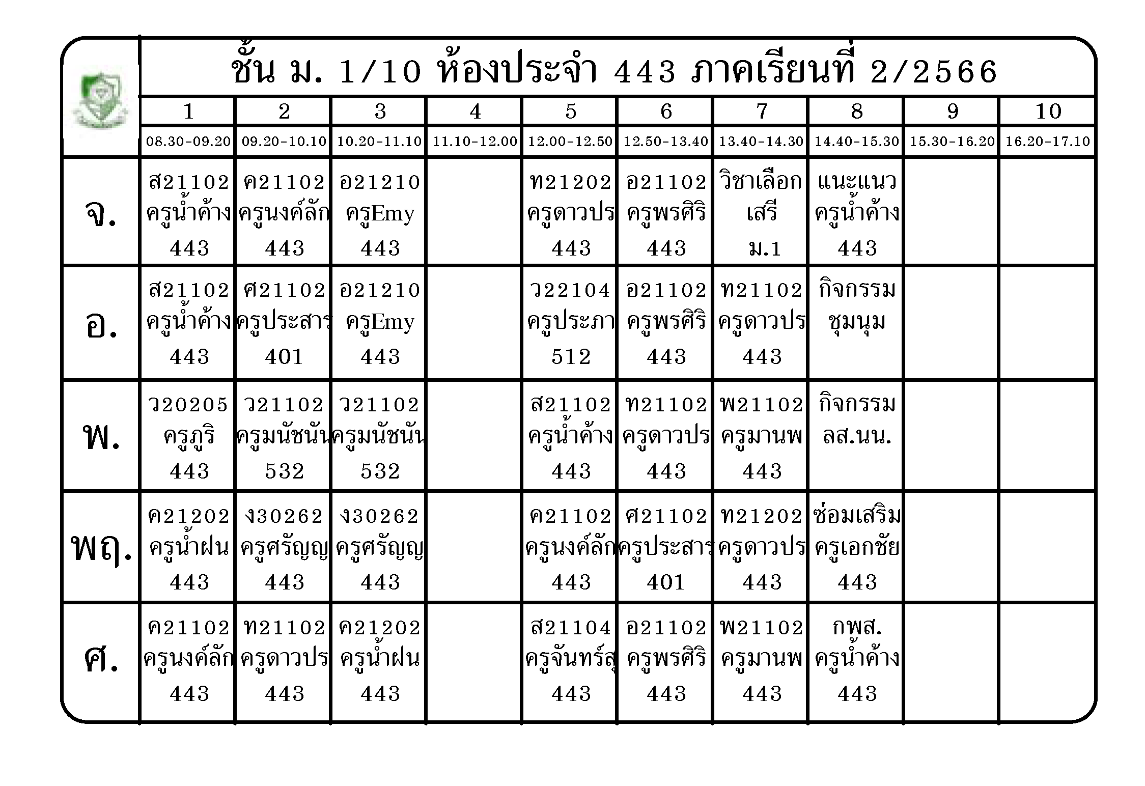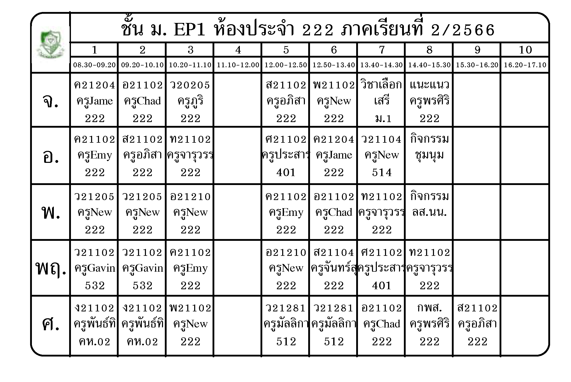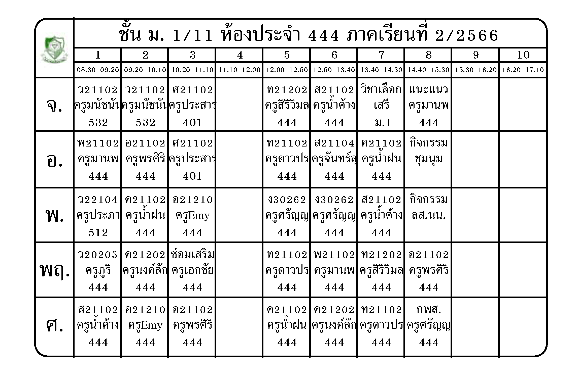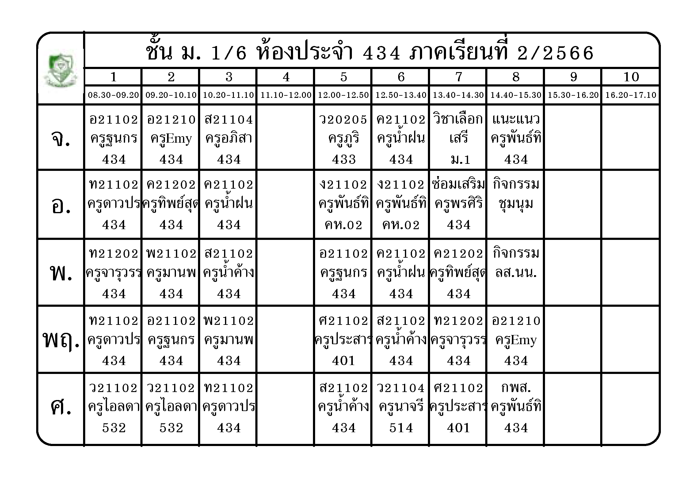 ตารางเรียน นักเรียนชั้น ม.1 ภาคเรียนที่ 2 ปีการศึกษา 2566