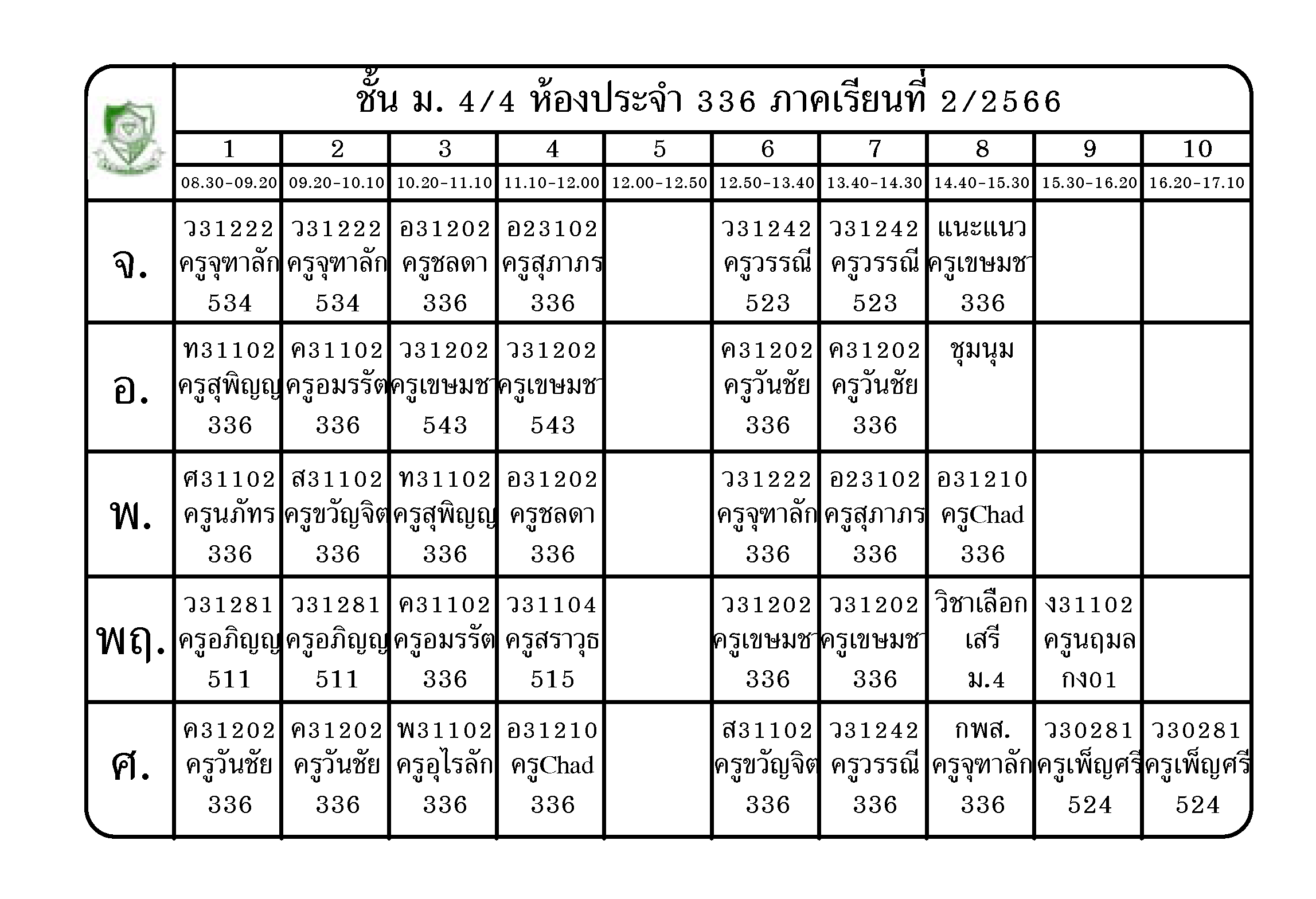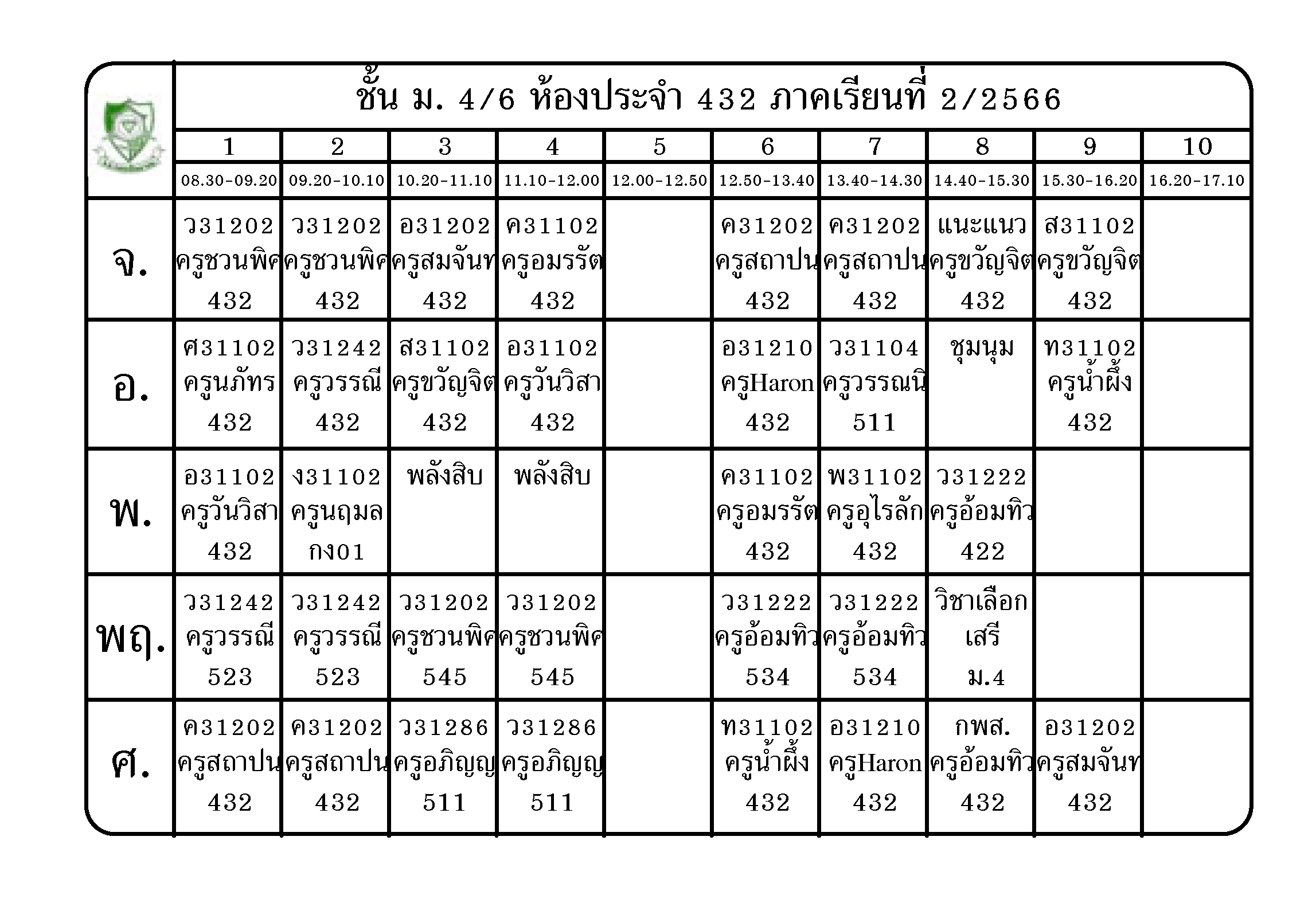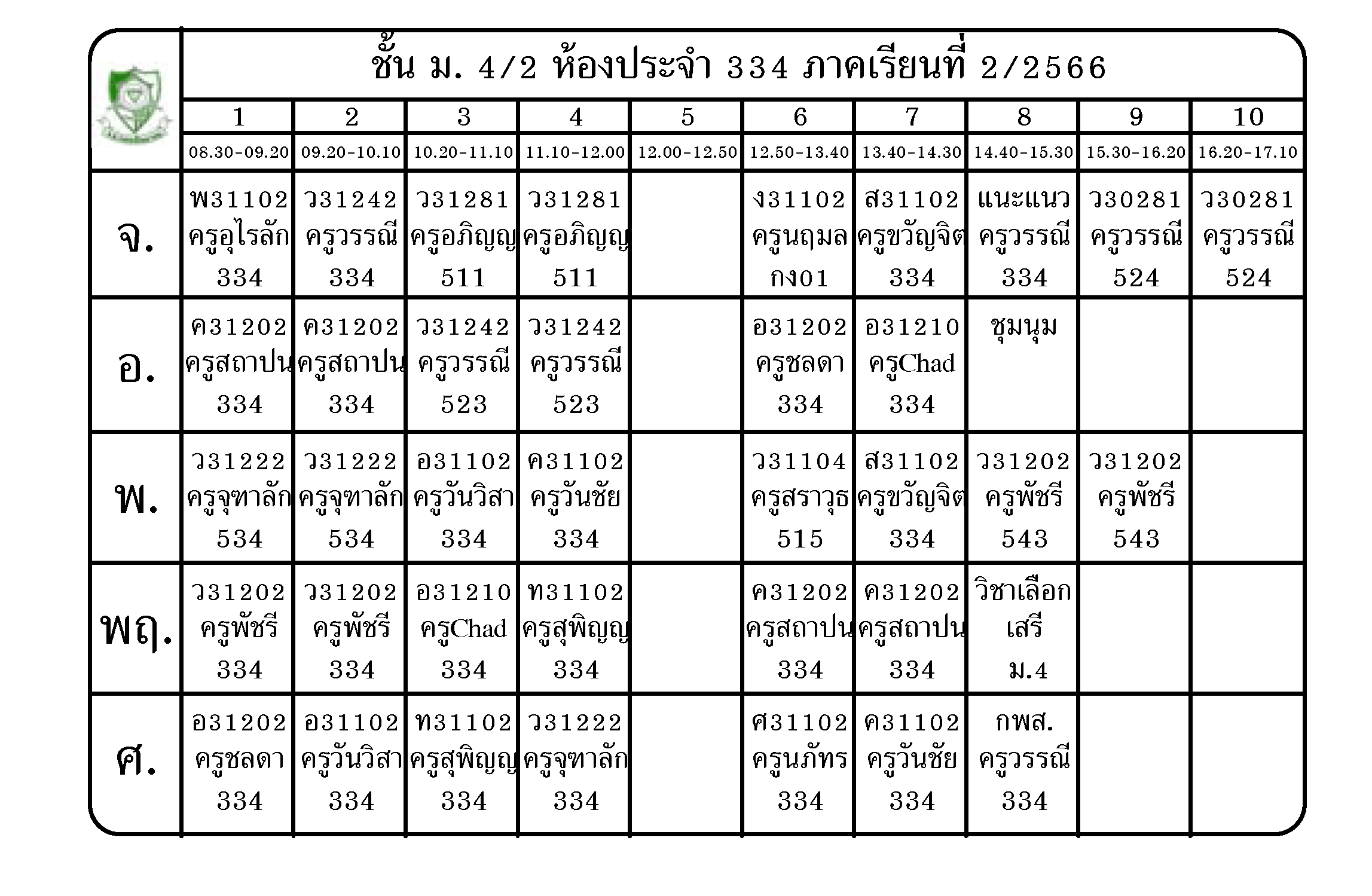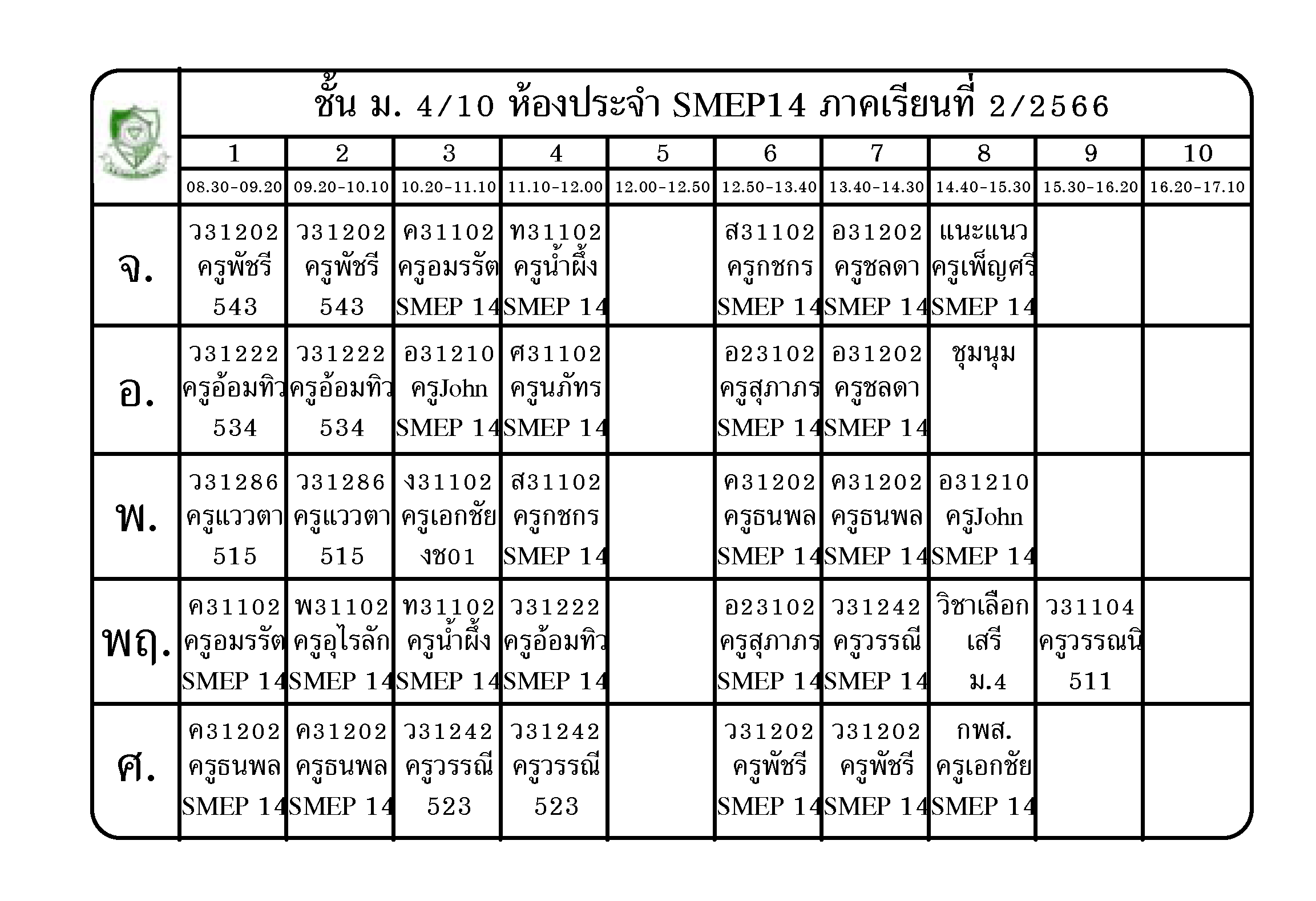 ตารางเรียน นักเรียนชั้น ม.4 ภาคเรียนที่ 2 ปีการศึกษา 2566